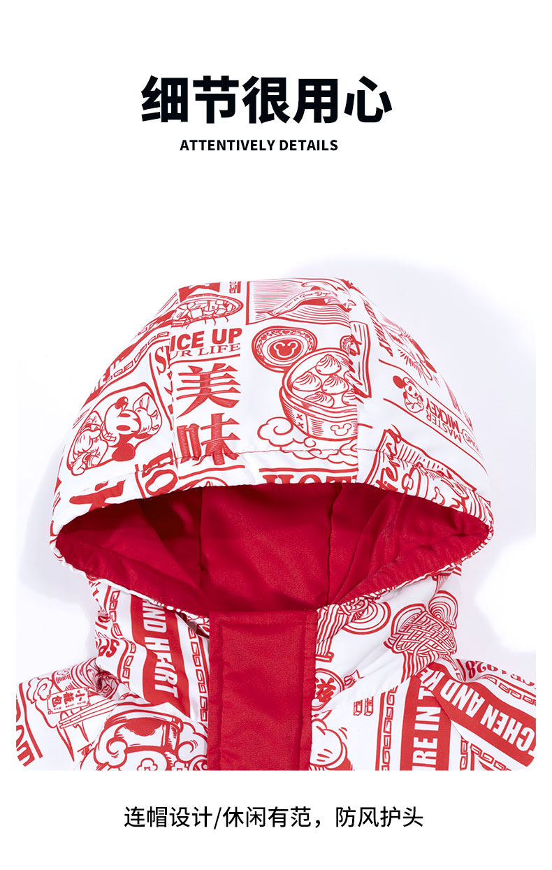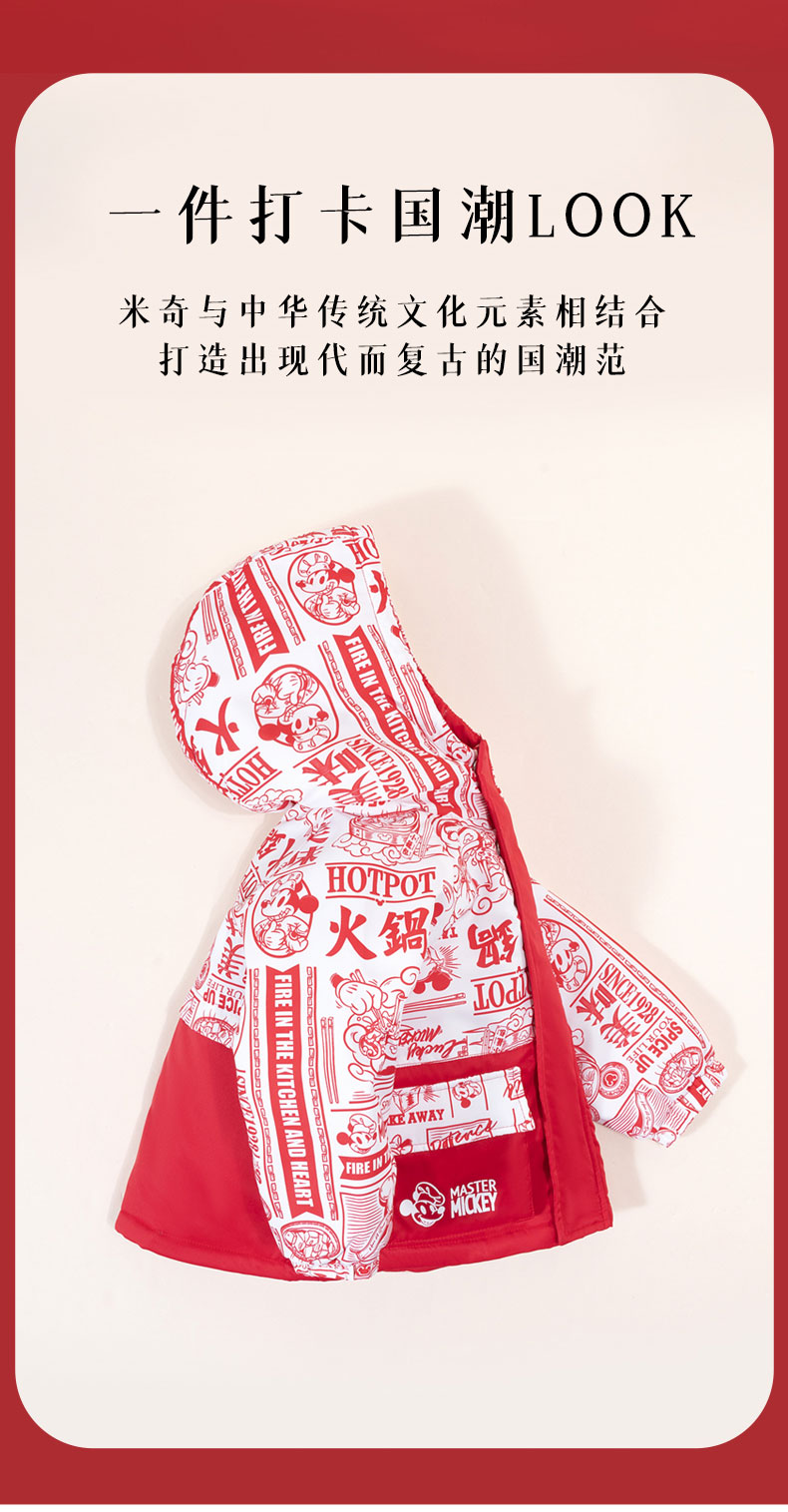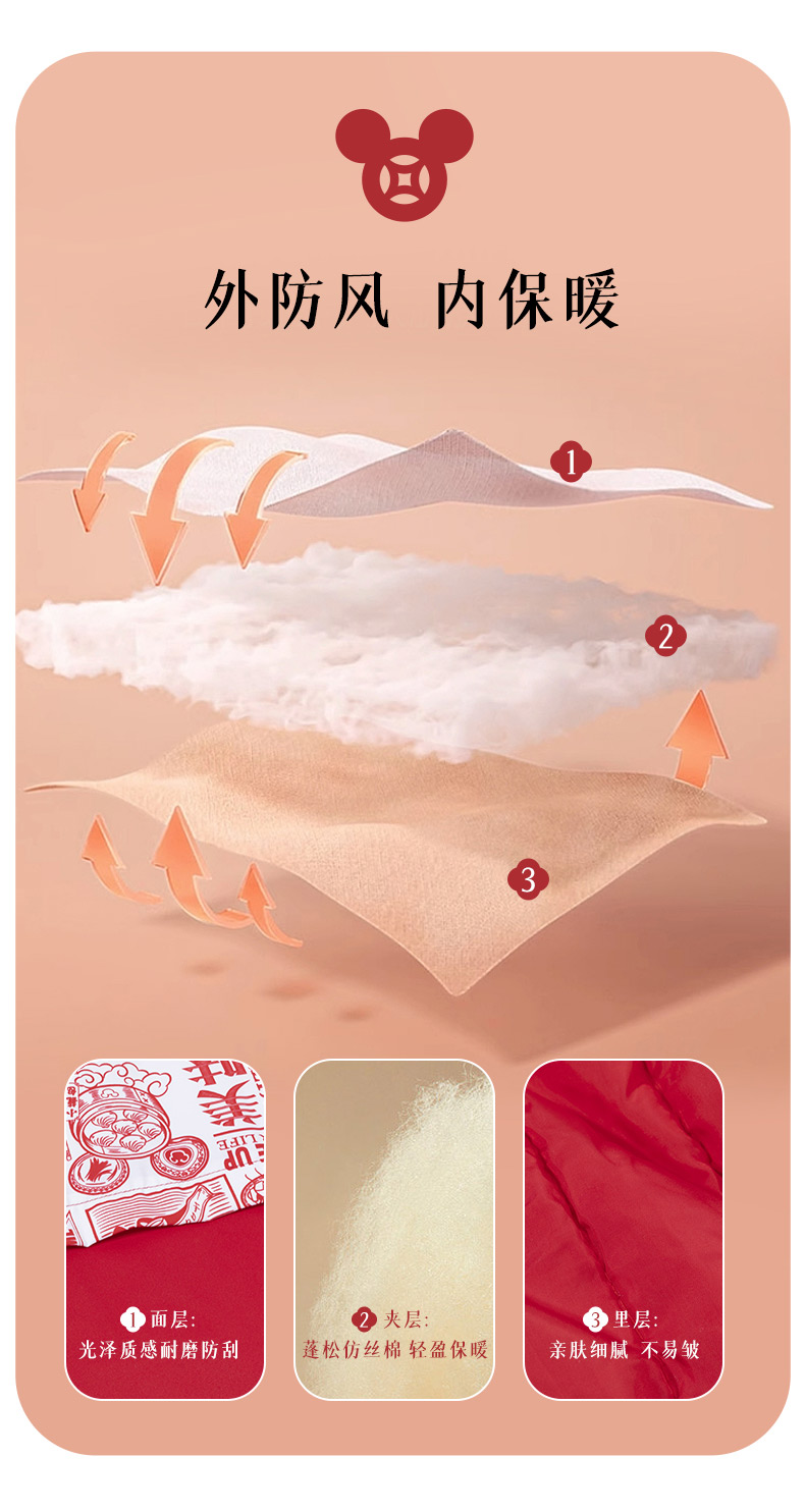 【商场同款】迪士尼冬季新款男童夹棉外套国潮喜庆满印棉服中小童新春拜年服231DS0894