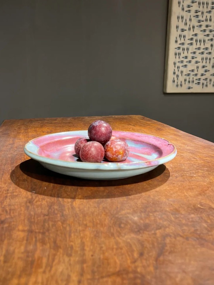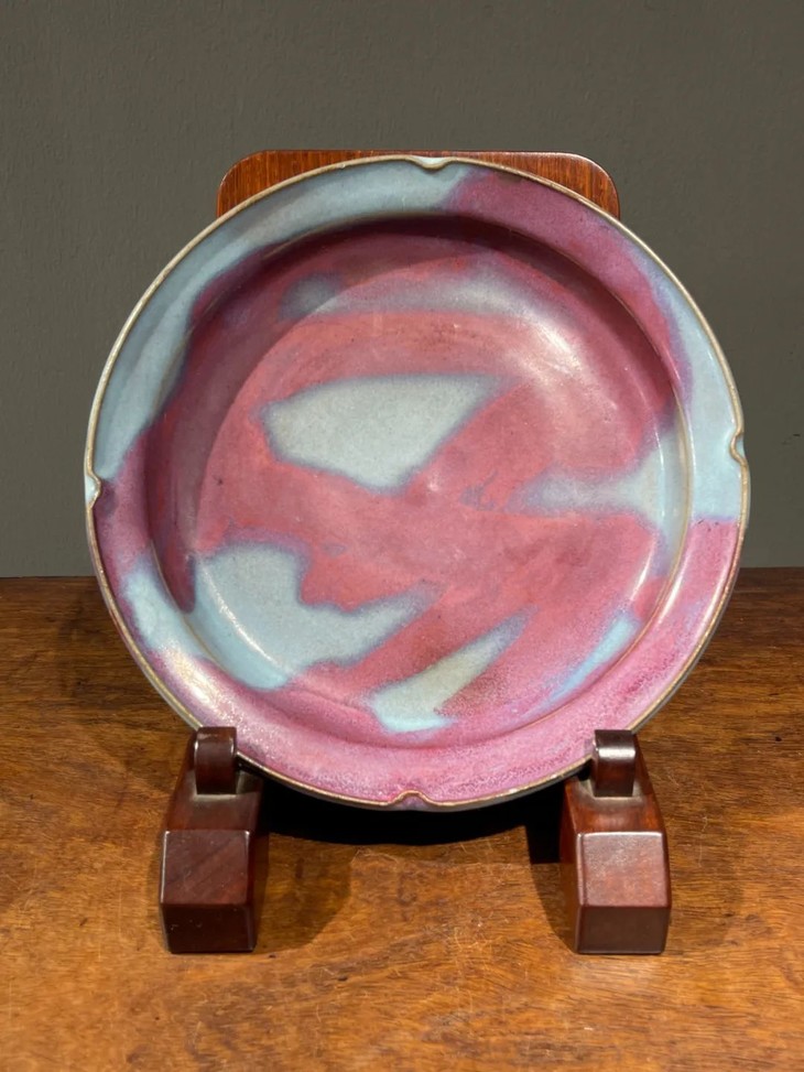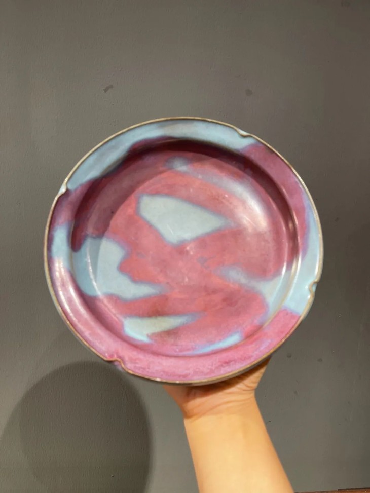 紫斑天青釉钧窑折沿盘,顺丰包邮