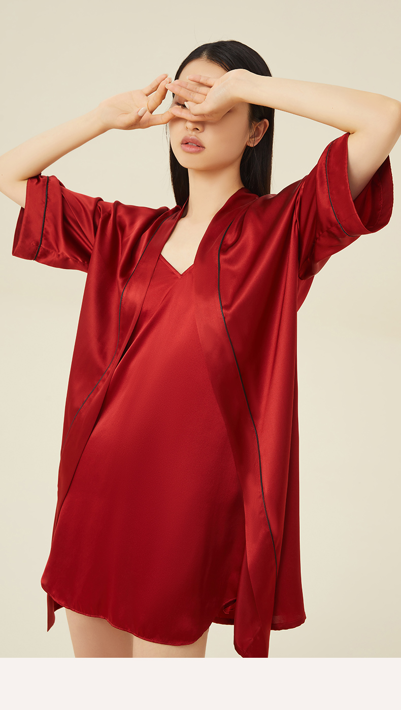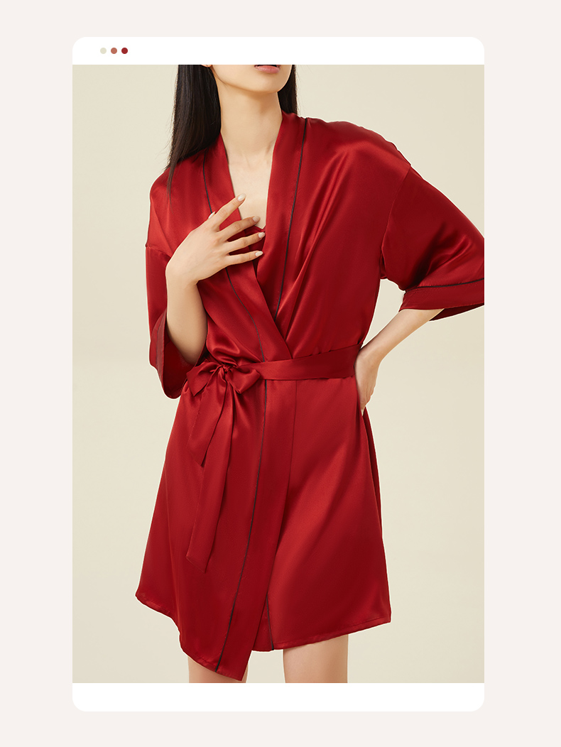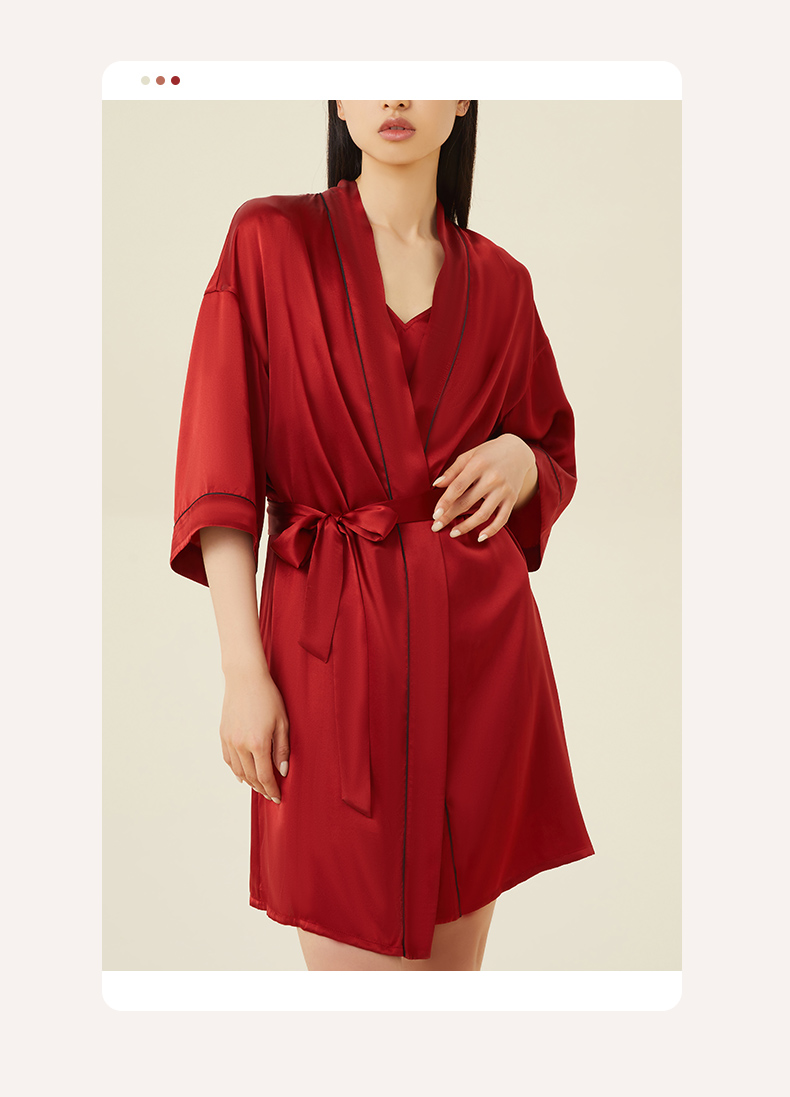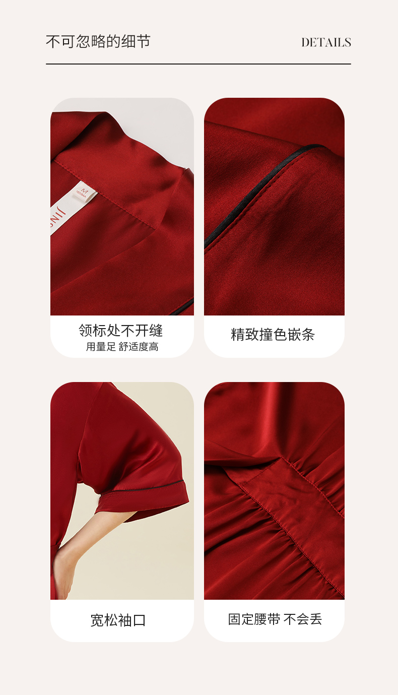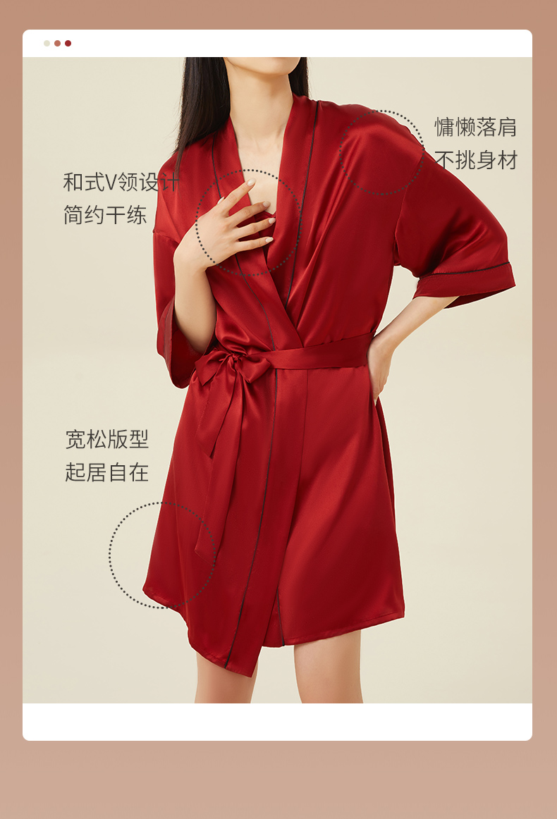 金三塔100%桑蚕丝时尚简约 丝滑 婚庆红色晨袍睡袍女士家居服 YSFCC101+YSFAA317(限价款)