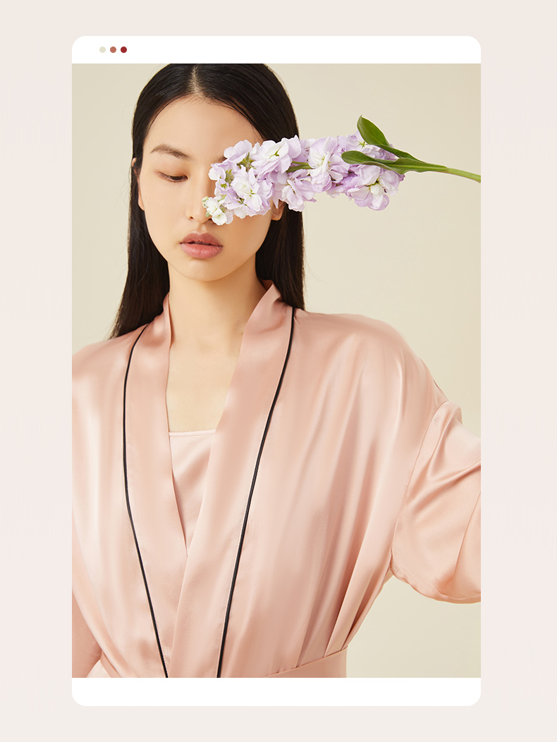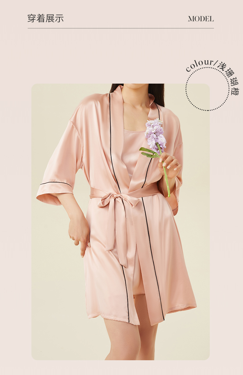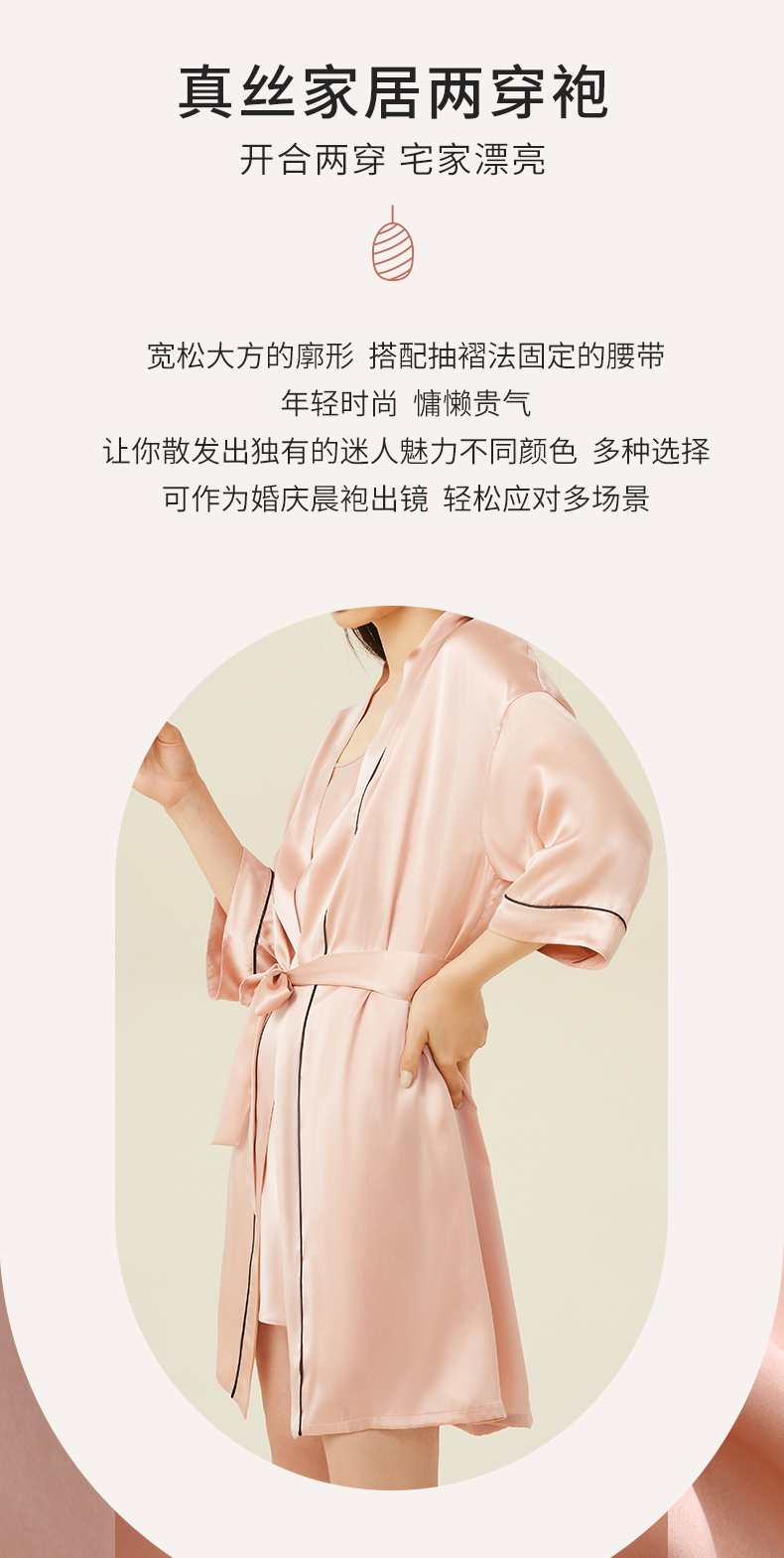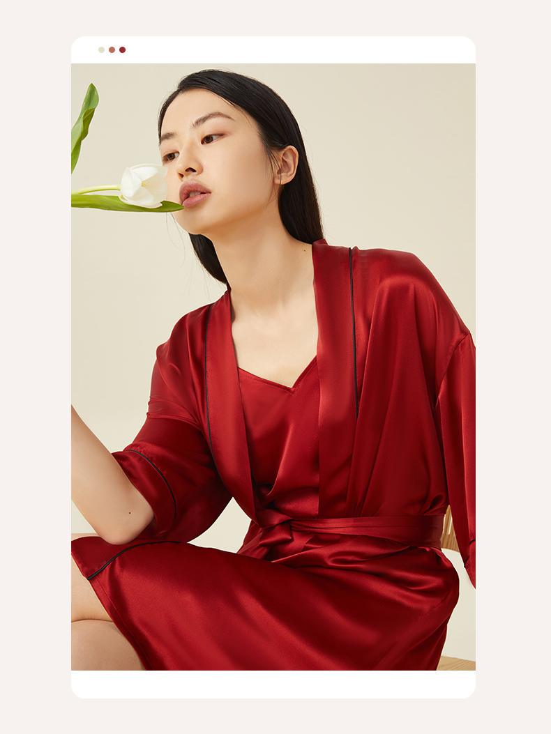 金三塔100%桑蚕丝时尚简约 丝滑 婚庆红色晨袍睡袍女士家居服 YSFCC101+YSFAA317(限价款)