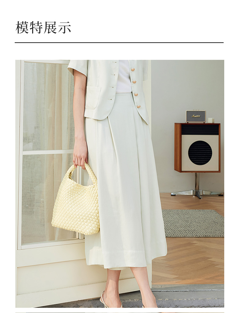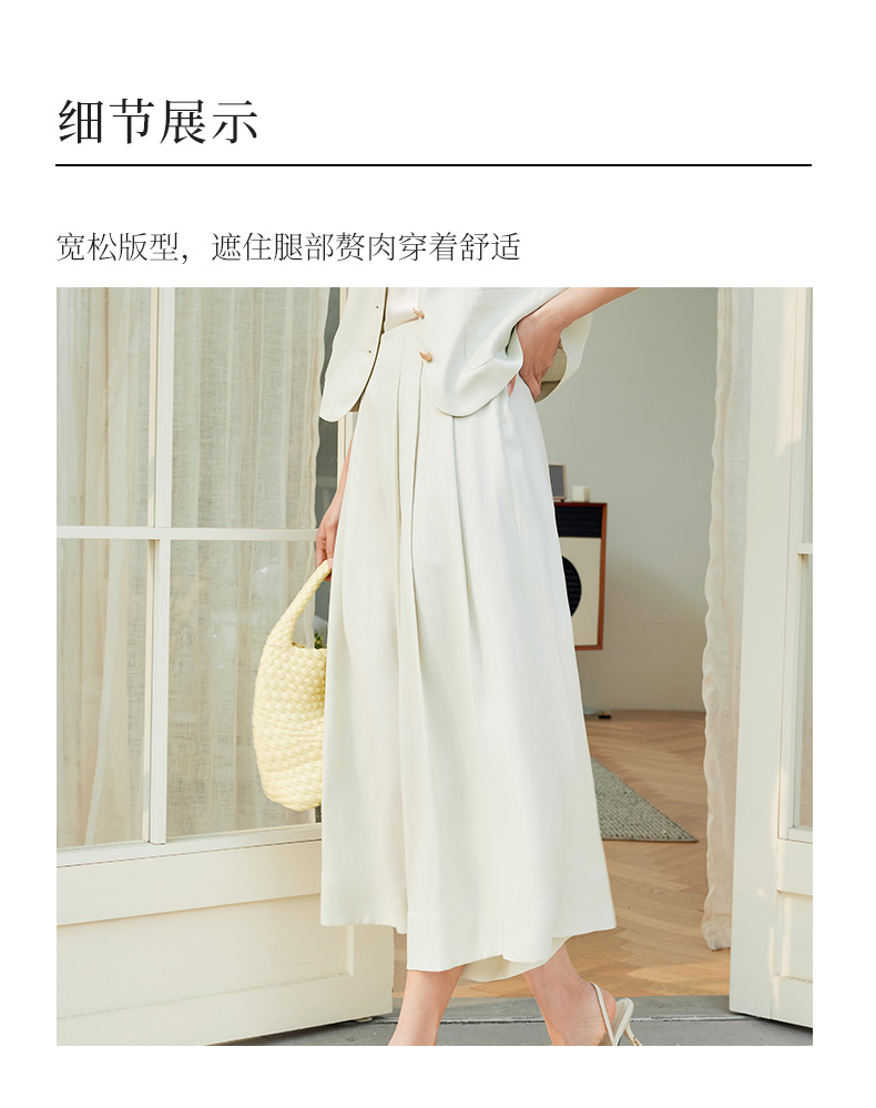 玳莎宽松八分裙裤女2024新款夏季遮跨显瘦休闲裤时尚气质阔腿裤 EB36302