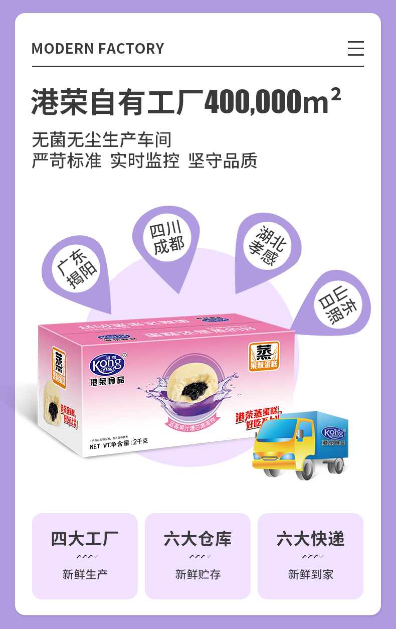 【蓝莓味蒸蛋糕325g】 蓝莓果酱灌心 酸甜可口 港荣蒸蛋糕焕新季49.9任选4件