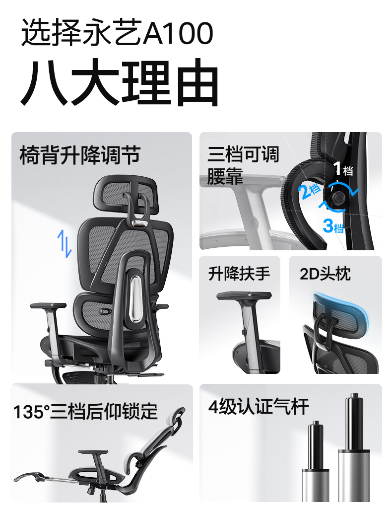 【腰背分区 贴脊舒适】永艺撑腰椅A100 三档后仰 随心切换