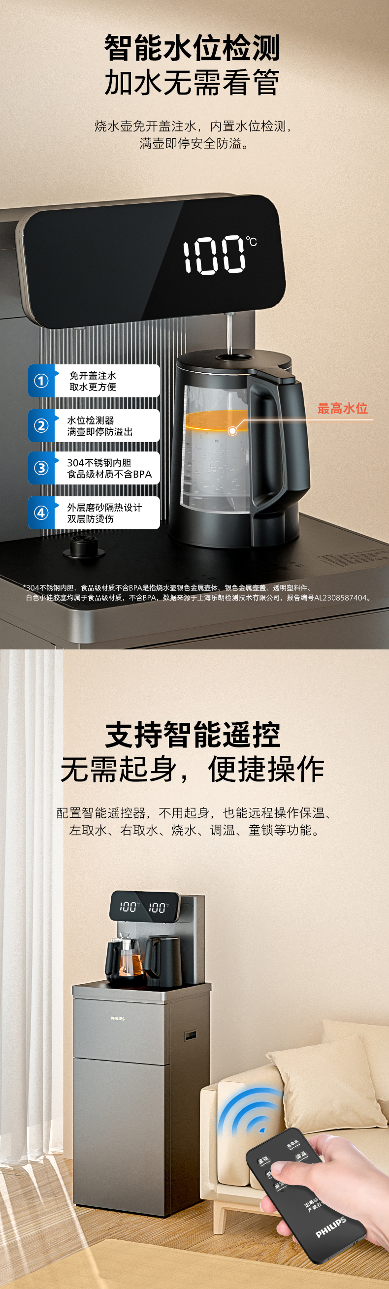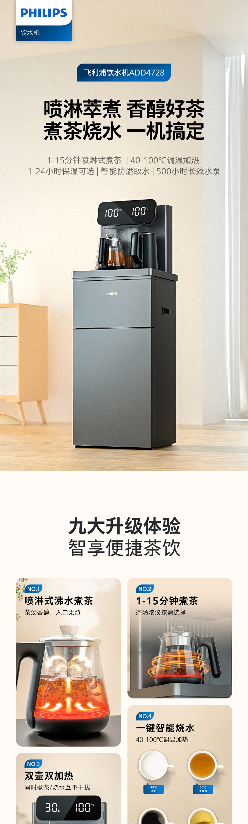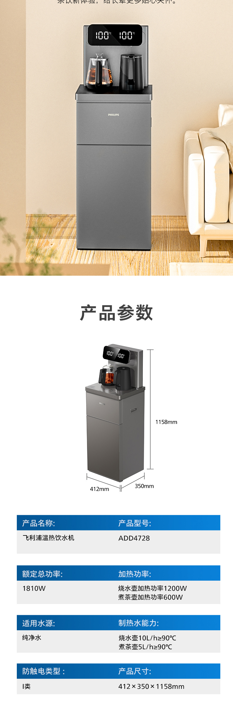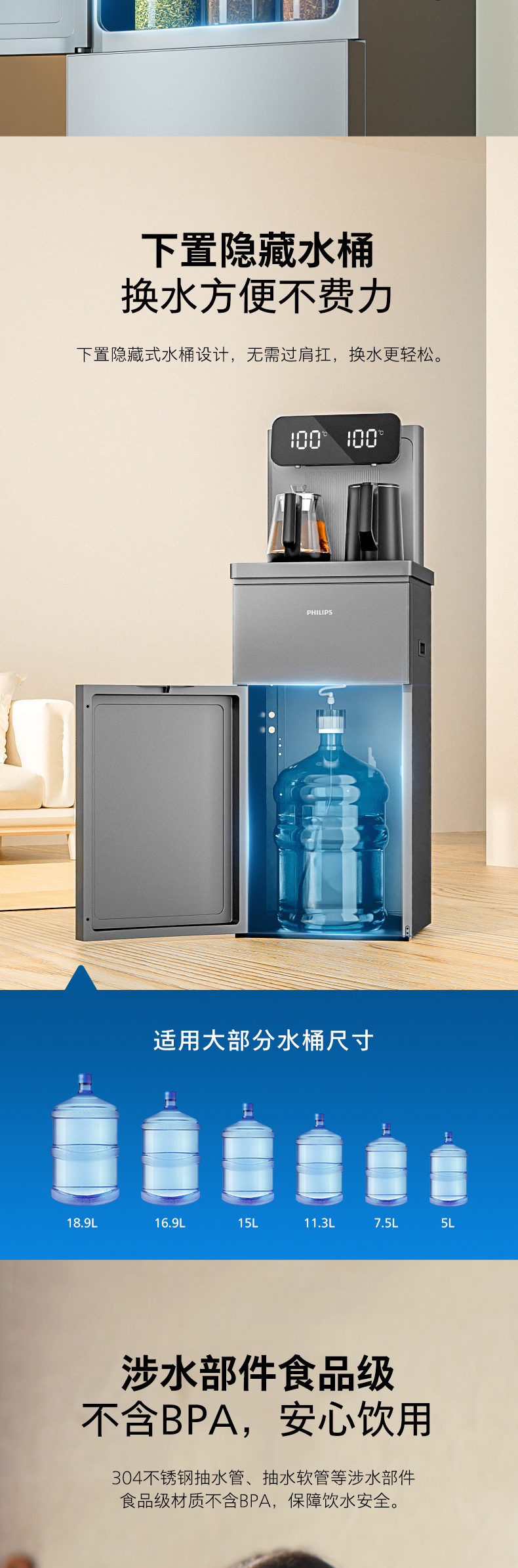 飞利浦家用茶吧机全自动智能饮水机下置水桶客厅高端一体ADD4728