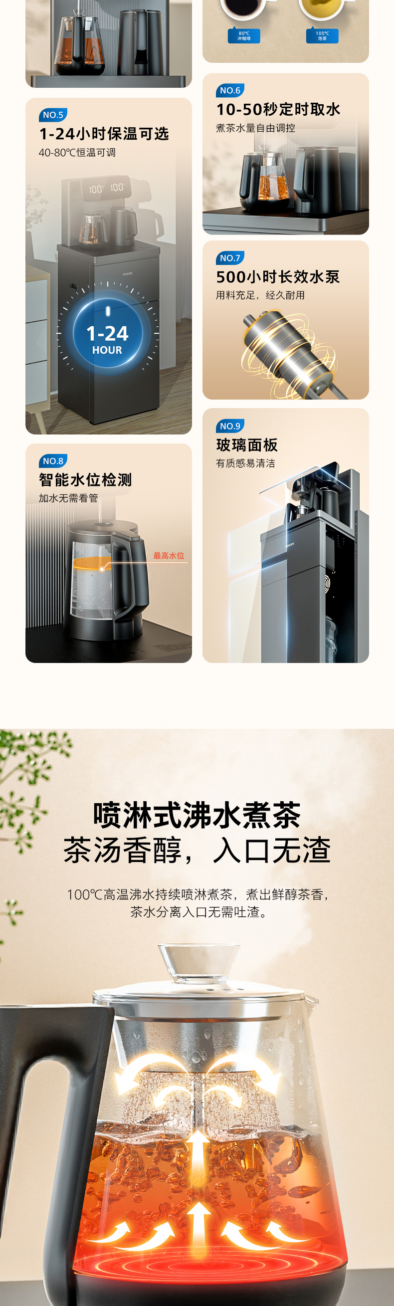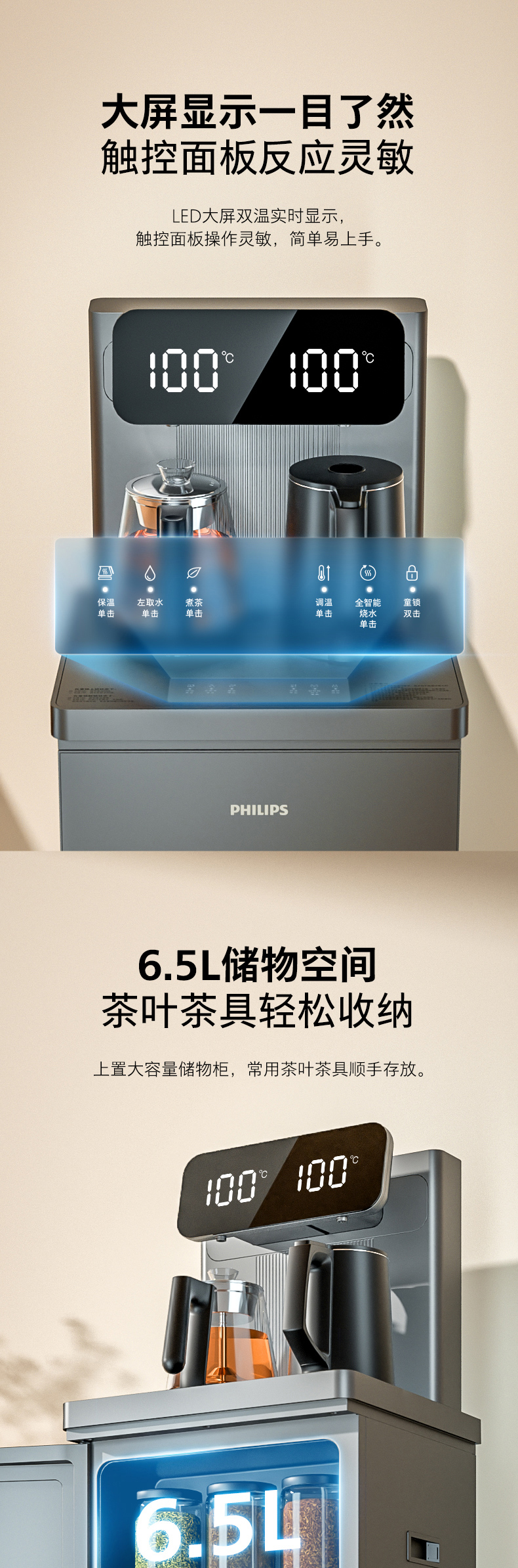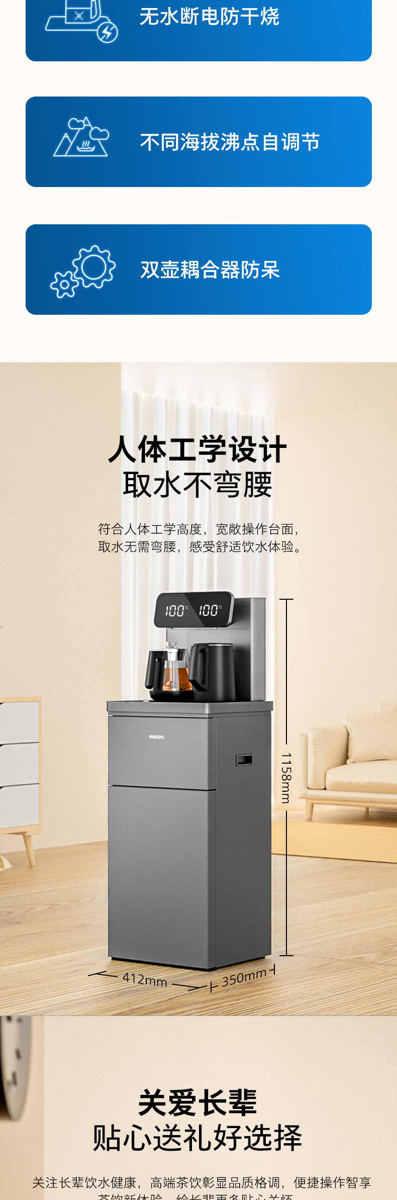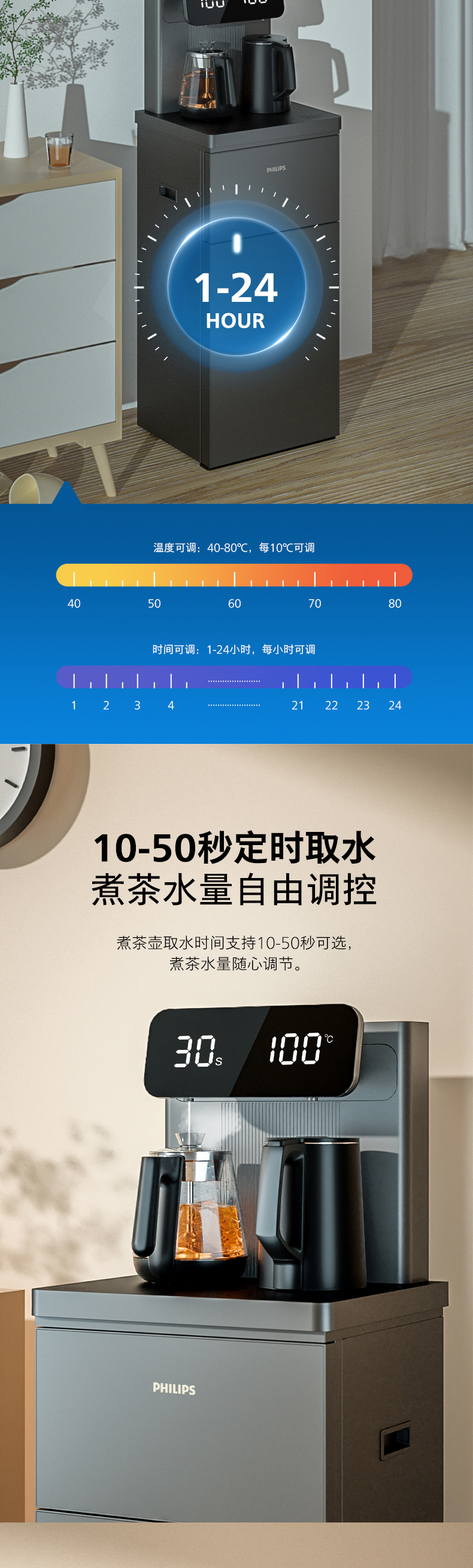 飞利浦家用茶吧机全自动智能饮水机下置水桶客厅高端一体ADD4728