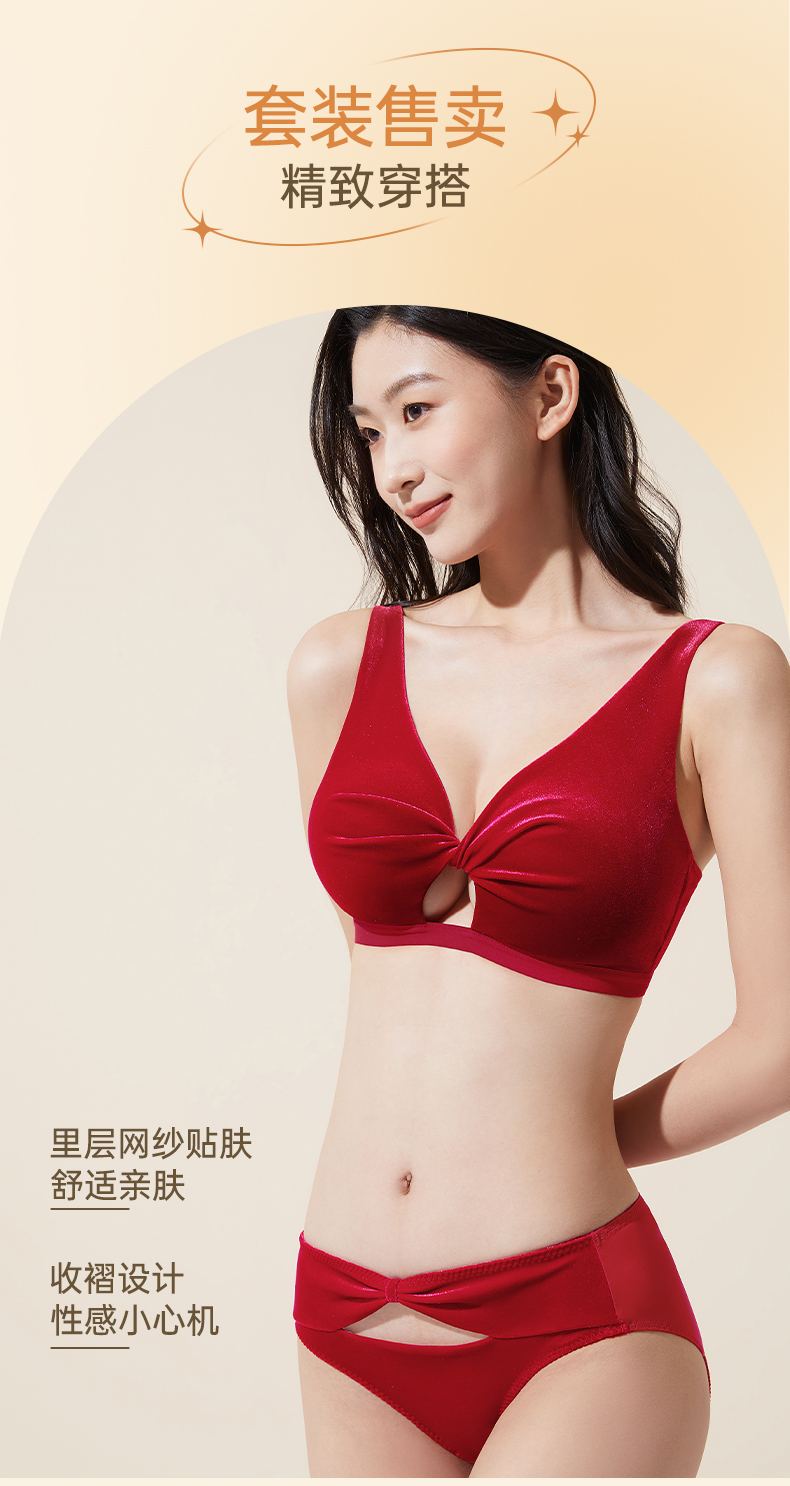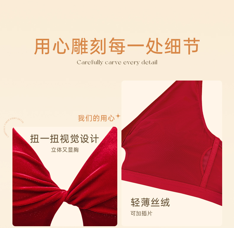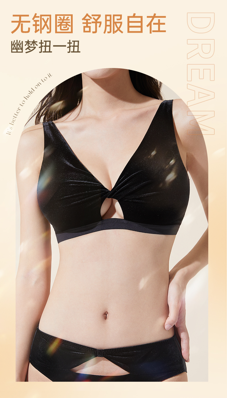 【门店积分兑换】奶糖派大胸显小幽梦丝绒扭一扭三角杯文胸无钢圈复古防凸点内衣女
