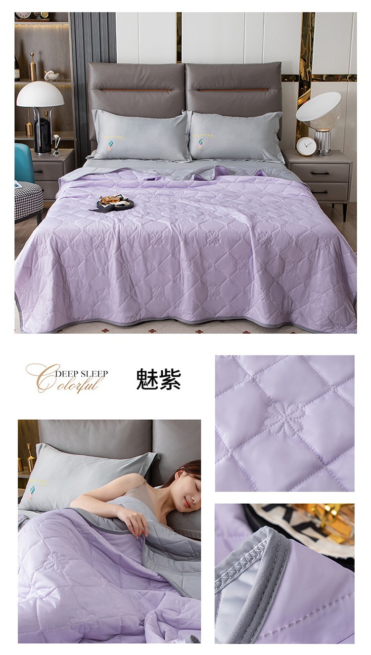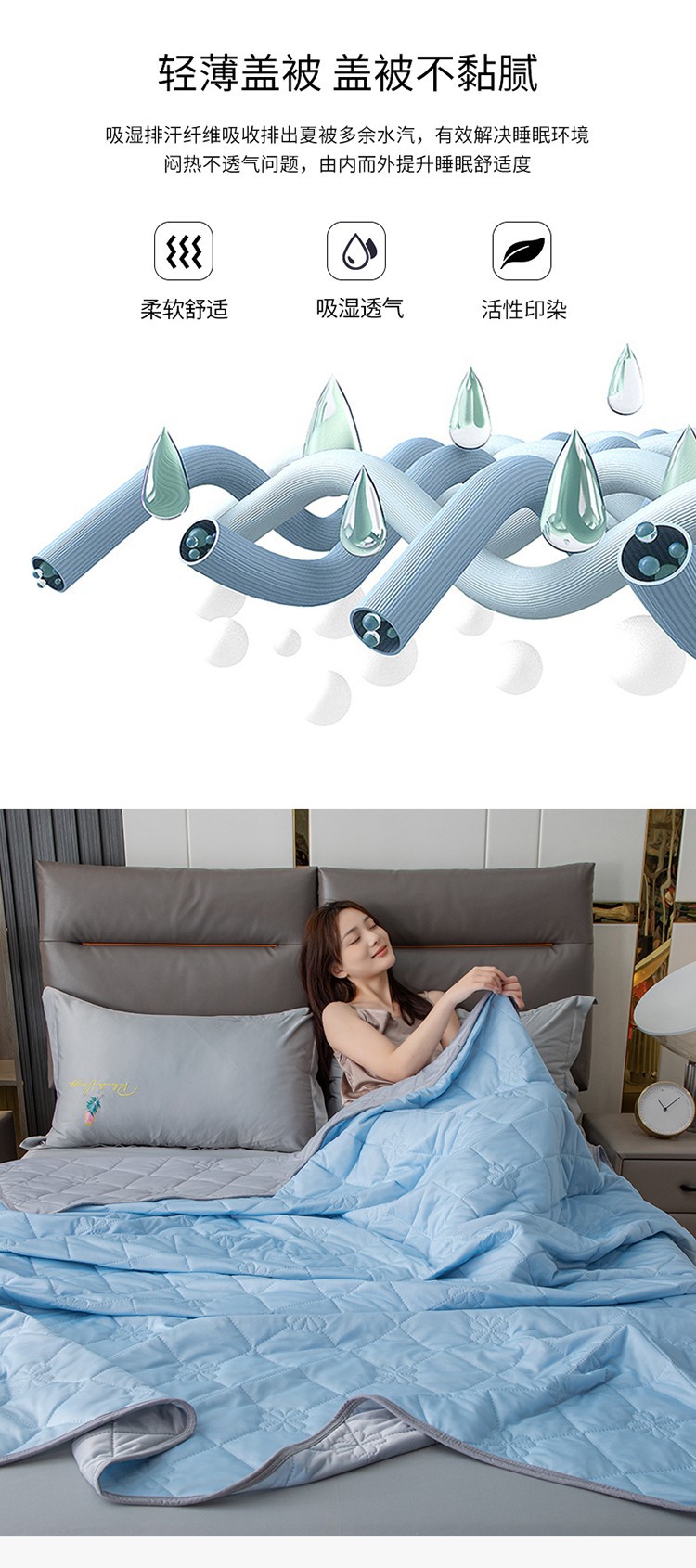 【A类母婴级!冰淇淋凉感丝夏凉被】冰爽丝滑,凉而不冰,感受清凉夏夜,纯色轻薄空调被子可水洗夏被子