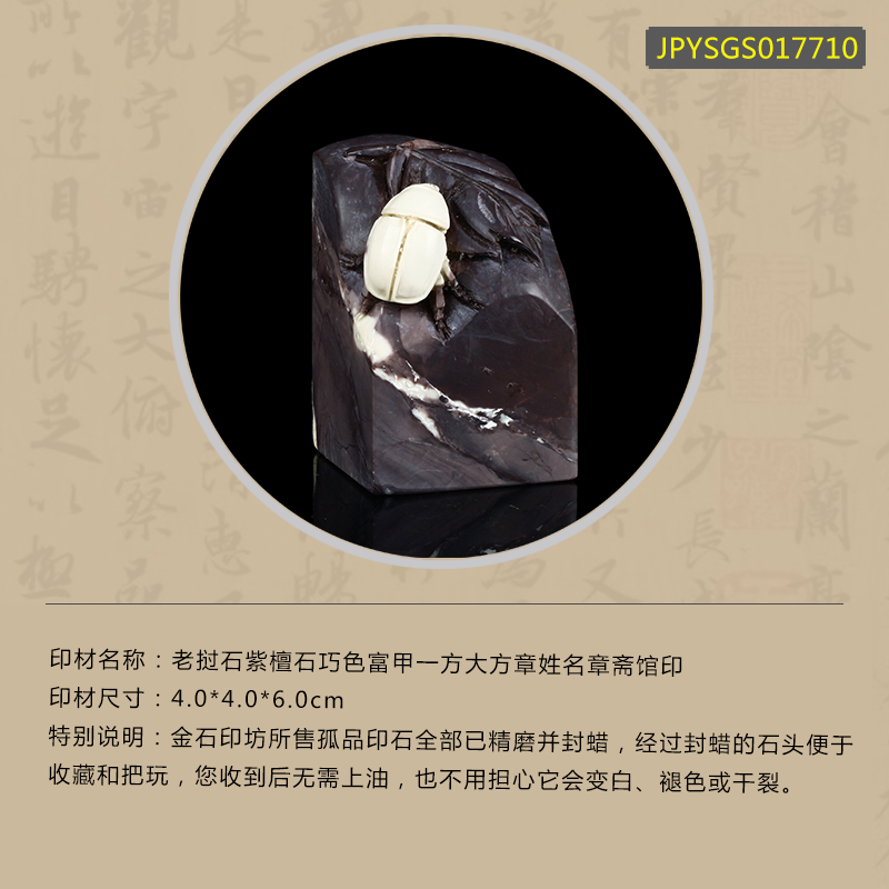 孤品17710老挝石紫檀石巧色富甲一方大方章姓名章斋馆印-4.0*4.0*6.0cm