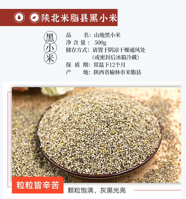 【五谷杂粮】桃花峁陕西米脂山地黑小米500g×4袋陕北特产农家粗粮