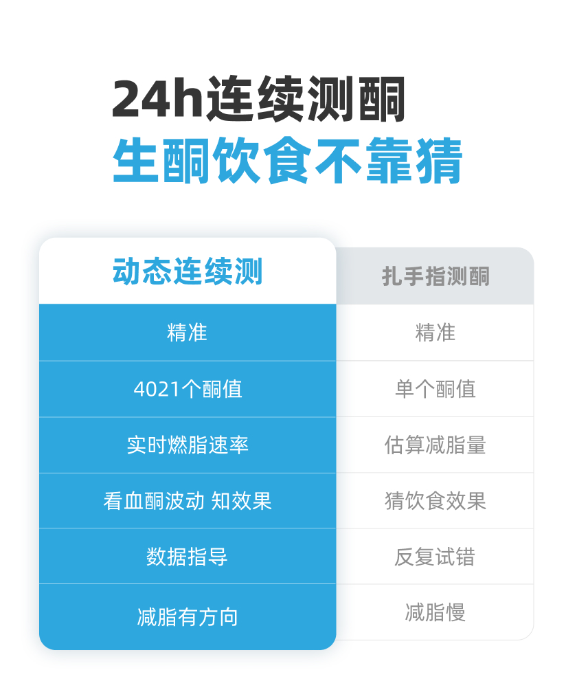【产品定位与用途】本品为非医疗用途的生酮饮食管理辅助工具,适用于健康成年人群在践行低碳生酮饮食、健身期间,动态监测体内酮体水平变化。通过实时反馈的酮体数据,帮助用户了解饮食结构(碳水、脂肪摄入)、运动计划对酮体状态的影响,科学调整生活方式,助力达成个人生酮目标。