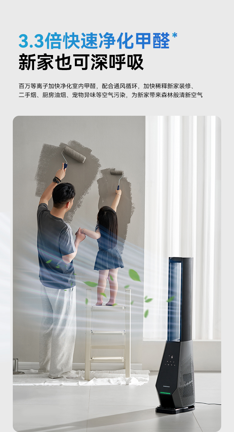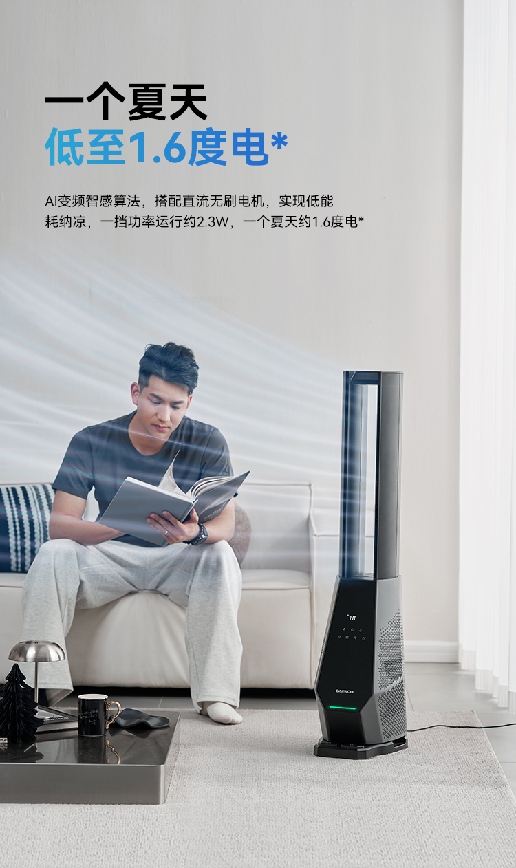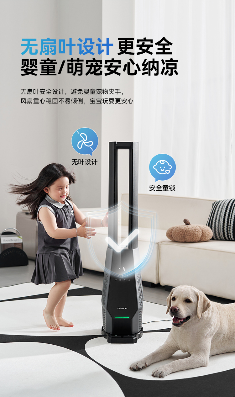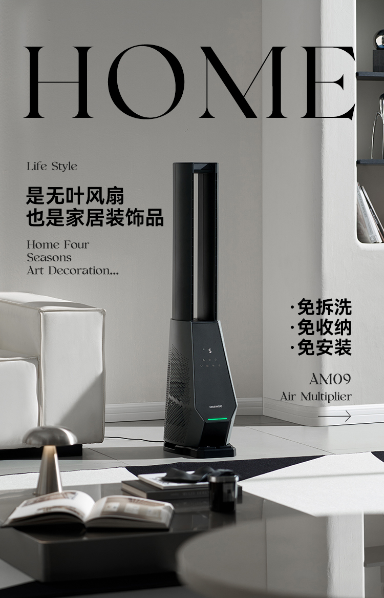 [屁侠推荐.pippa]科技纳凉 风感自然 大宇双气流无叶风扇 专利双气流涡轮技术 四重过滤 除醛净味 左右摇头 出风大 远距广角送风 低分贝AM09