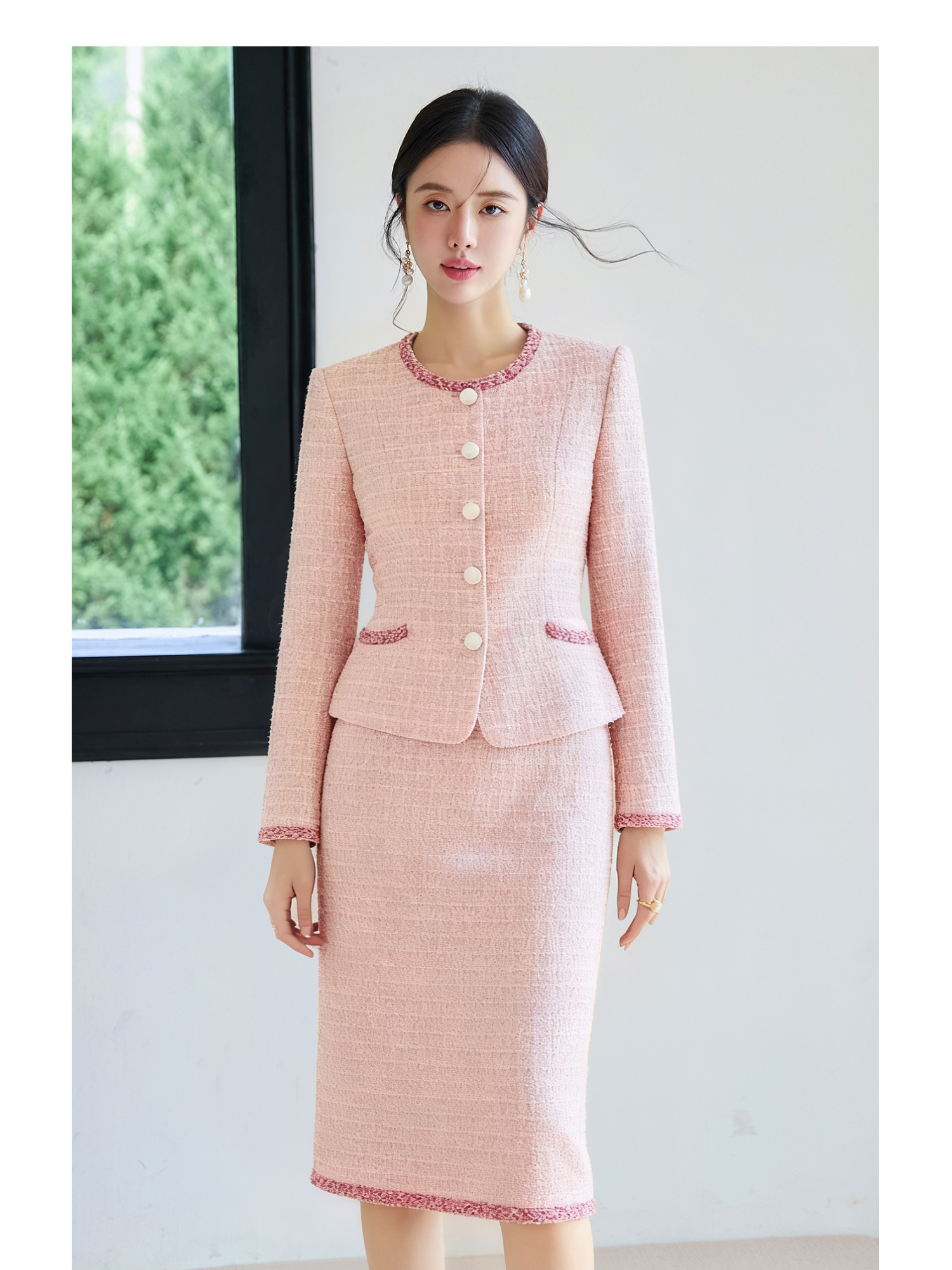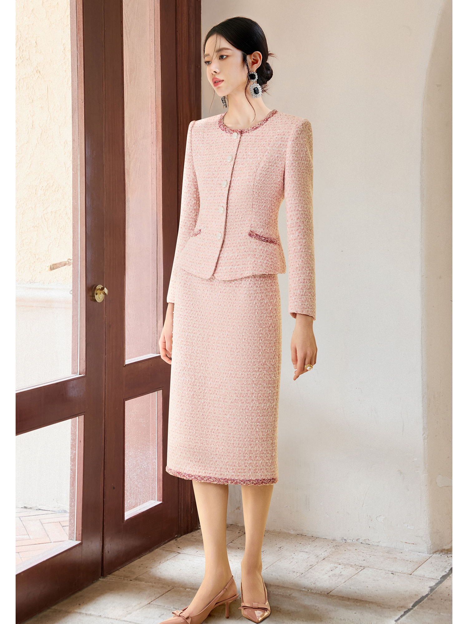 【雾粉凝光】小香风套装女2025秋冬粗花呢西装外套富家千金风穿搭
