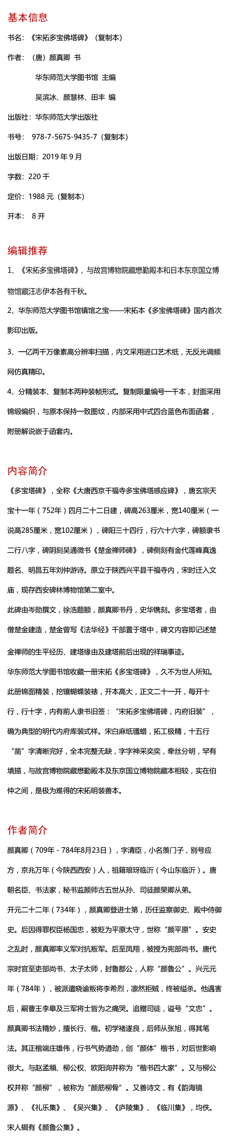 宋拓多宝佛塔碑 复制本 书法珍品 无反光调频网仿真精印 华东师范大学图书馆镇馆之宝