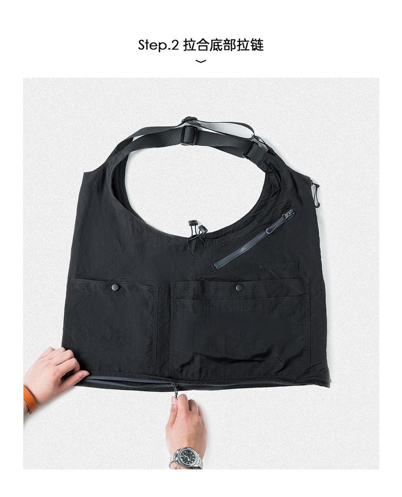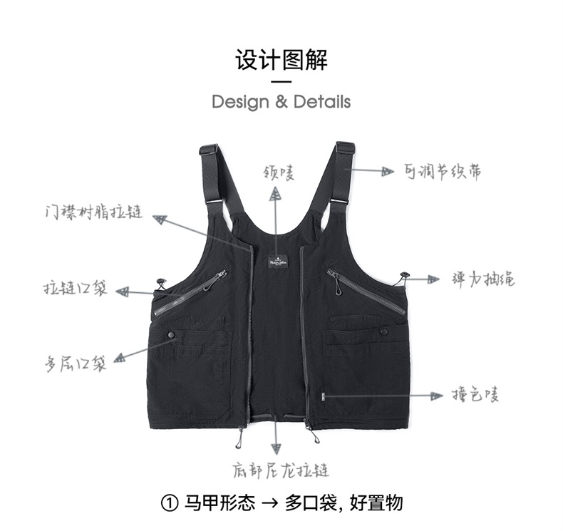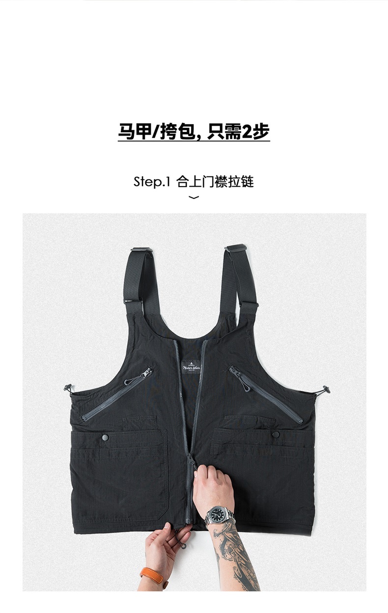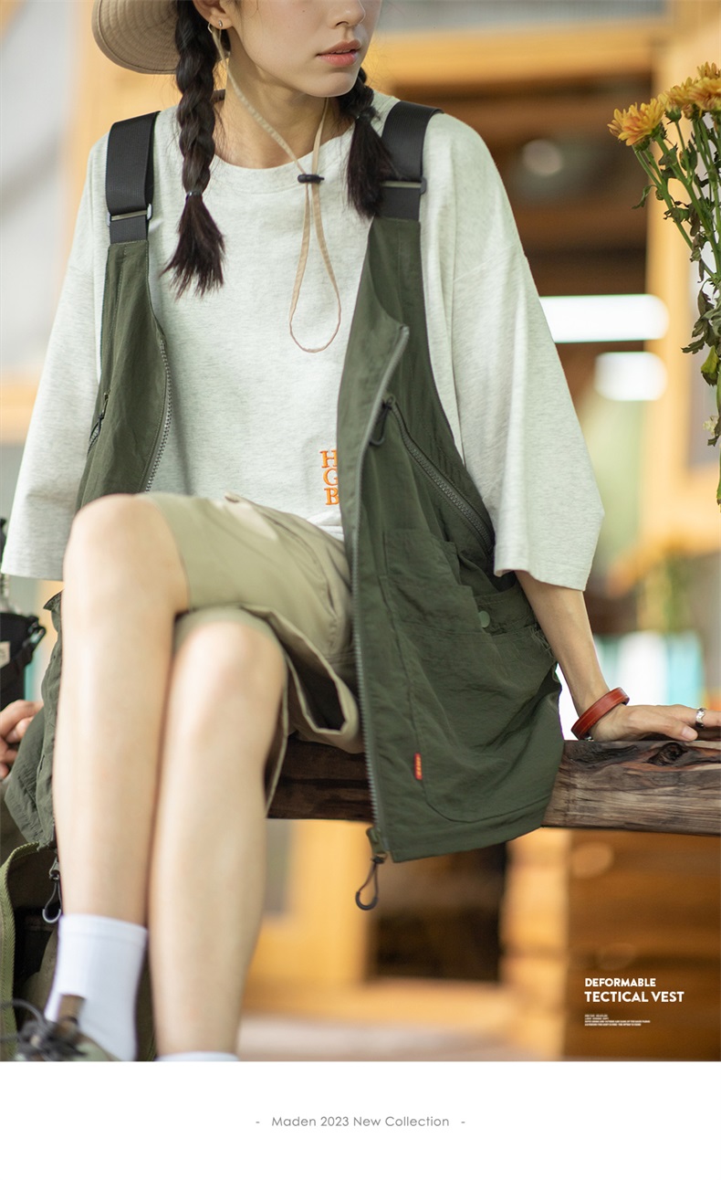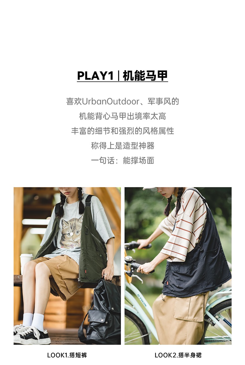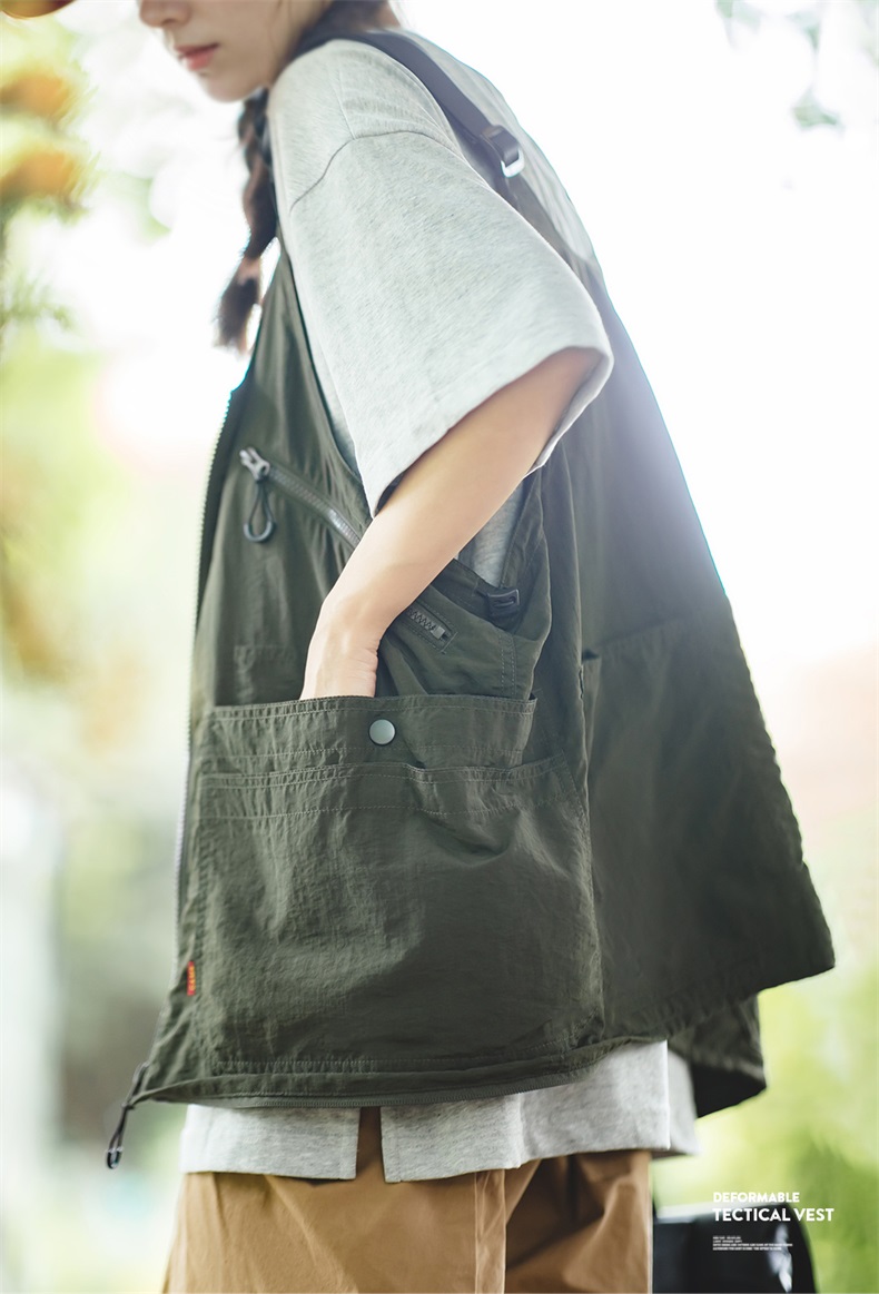 马登日系复古多口袋工装尼龙马甲背心户外机能两用挎包外套女