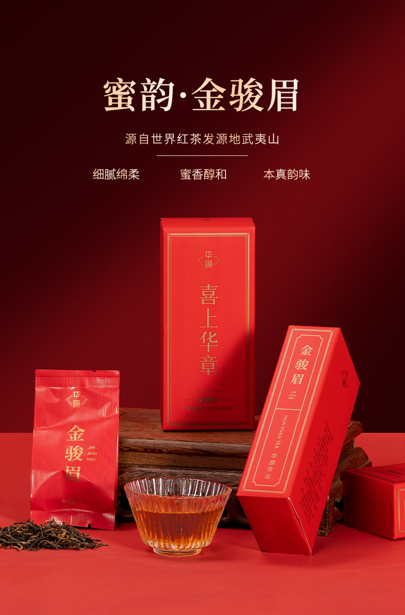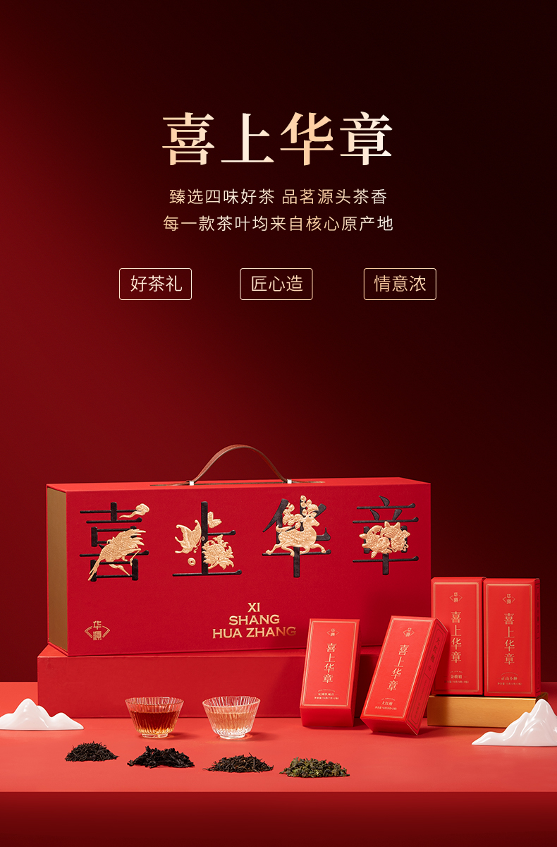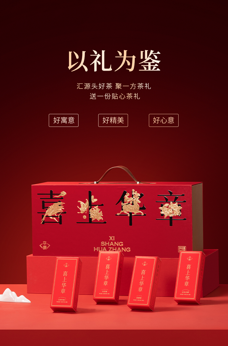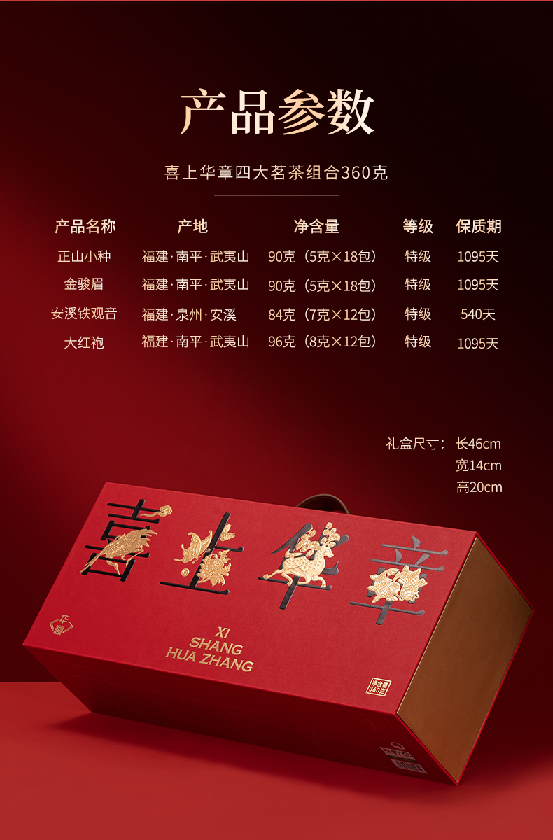 【年货茶礼】茶叶 金骏眉 正山小种 大红袍 铁观音 四大茗茶组合 茶饮 喜上华章 年货茶礼 华源 360g