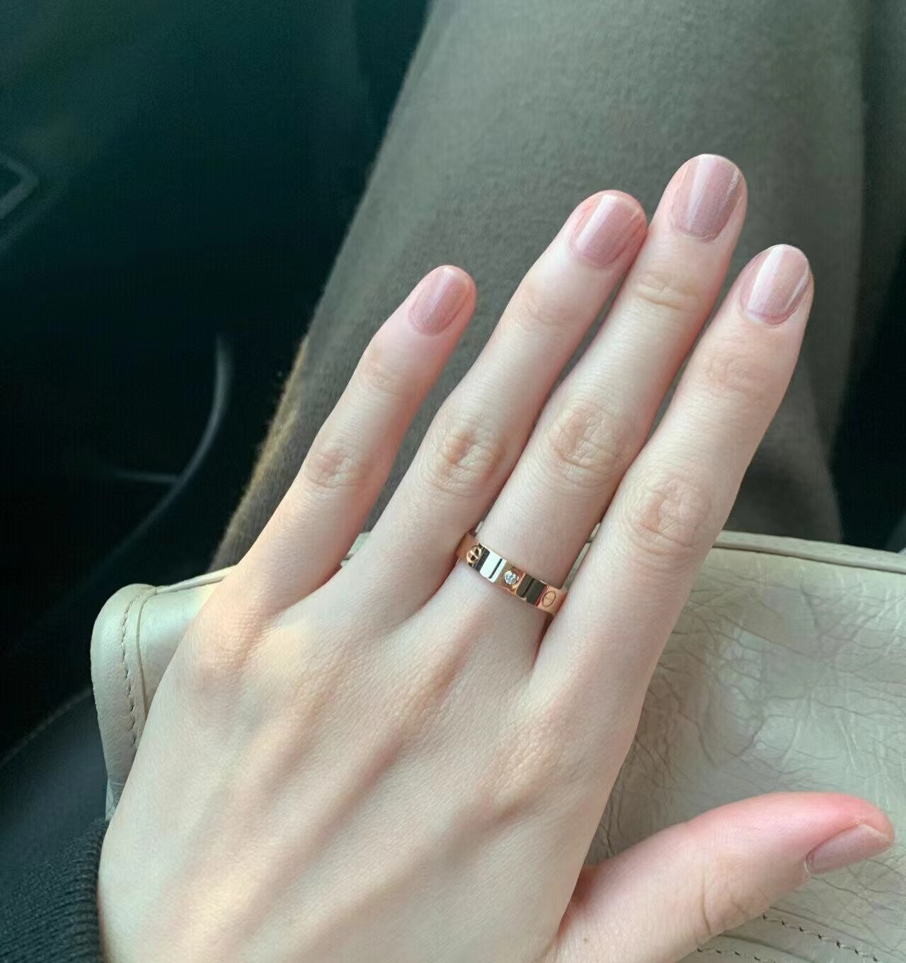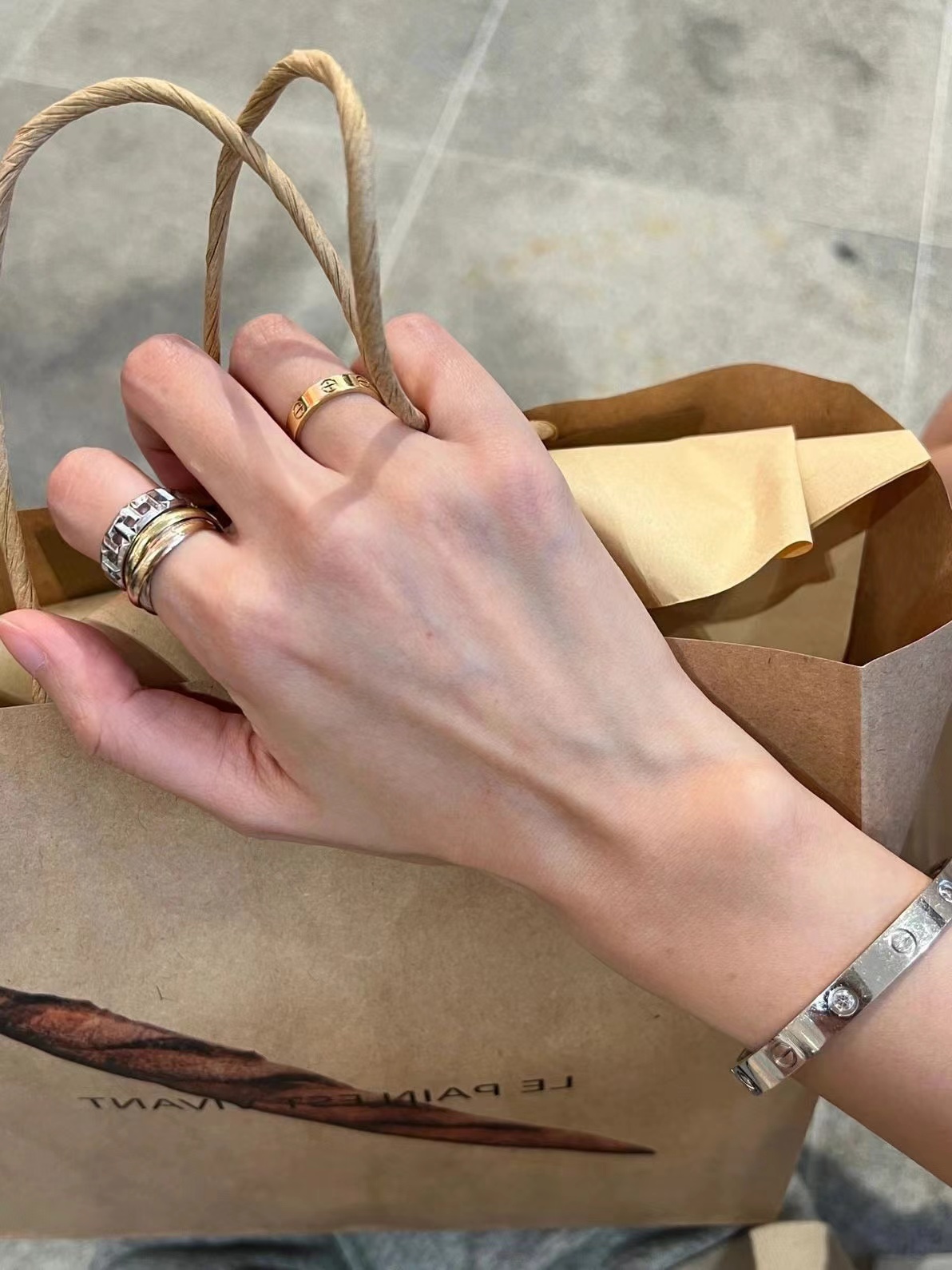 卡D亚戒指系列,精工细节,内圈带钢印字母,钛钢加厚电镀,曲面贴合手指,内里logo 侧边love标志,细节炒多,保证收到会惊艳!