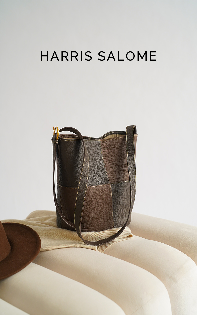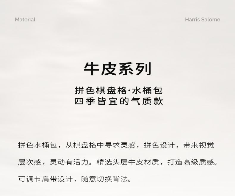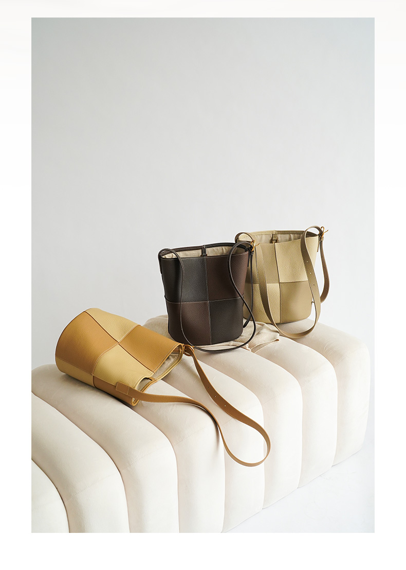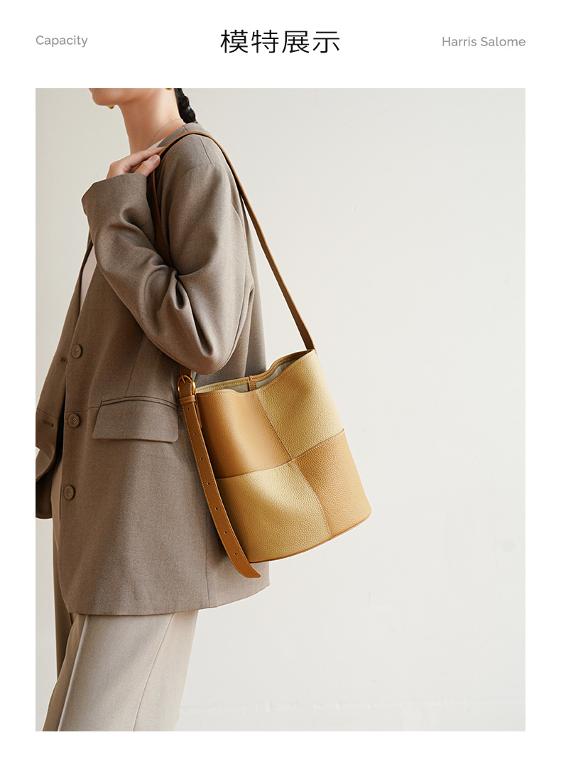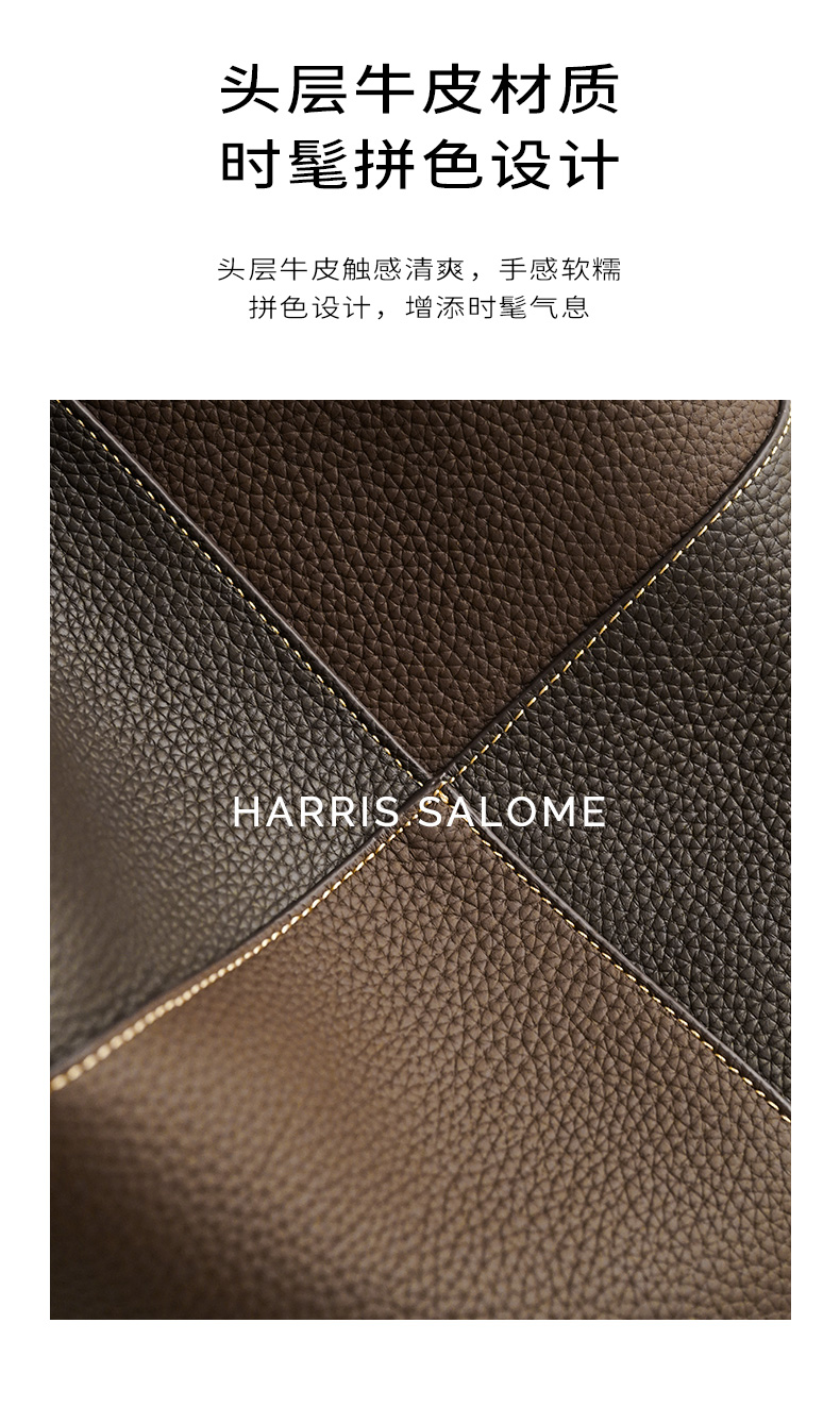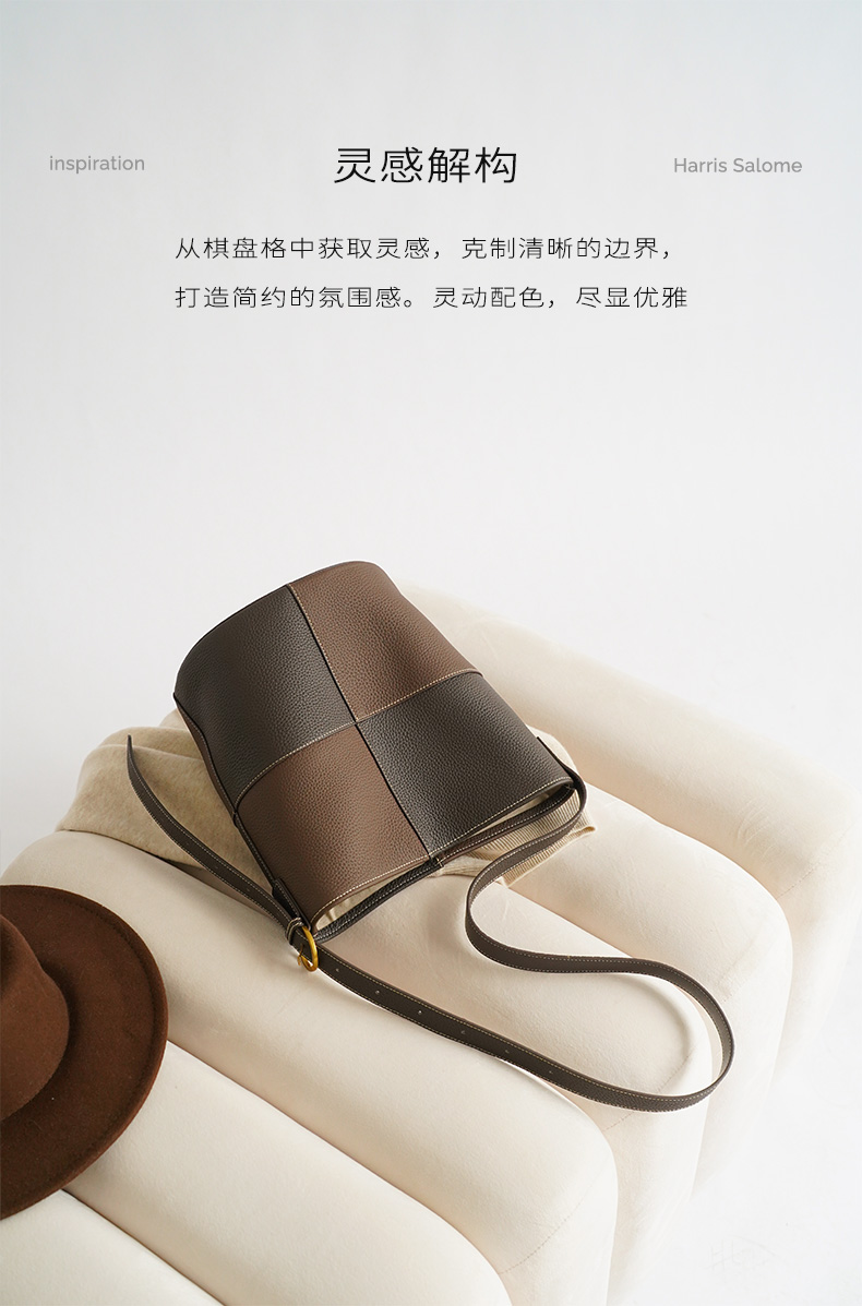 【大容量简约大气】HARRIS SALOME 头层牛皮拼色棋盘格水桶包9102