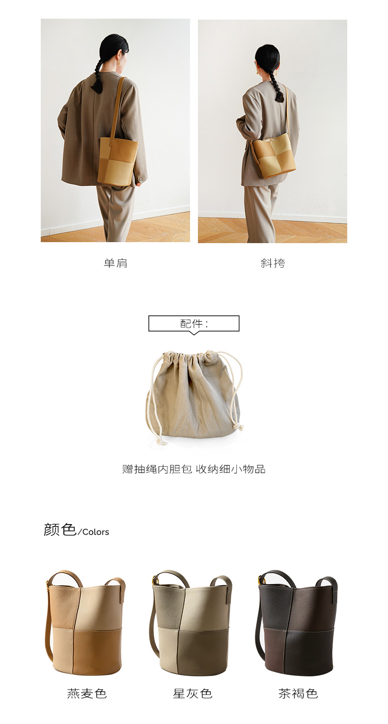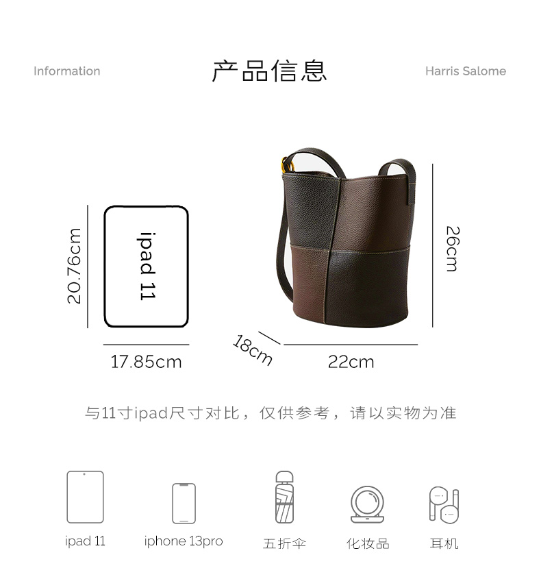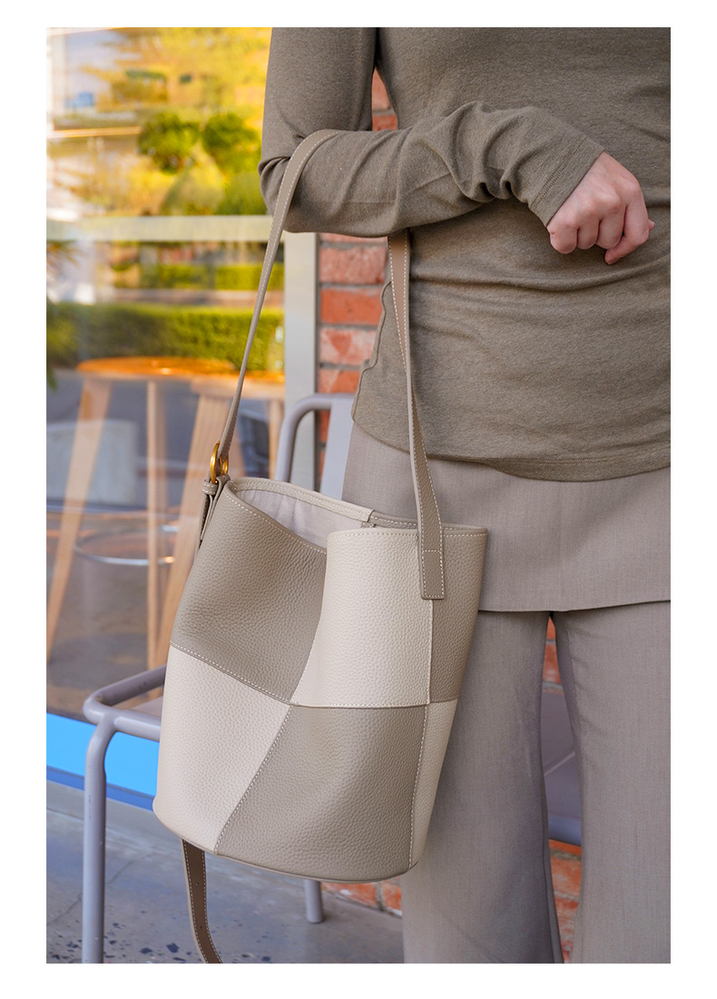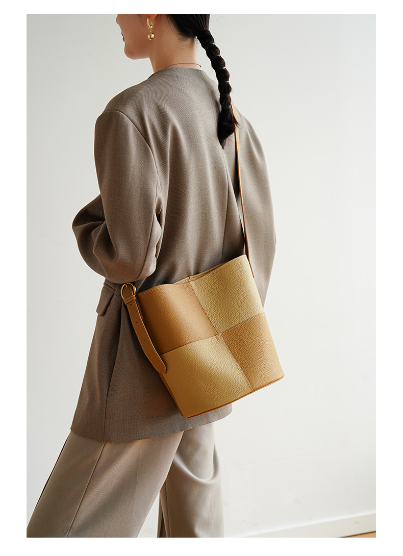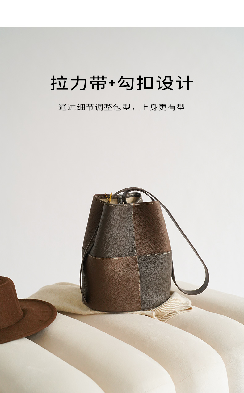 【大容量简约大气】HARRIS SALOME 头层牛皮拼色棋盘格水桶包9102