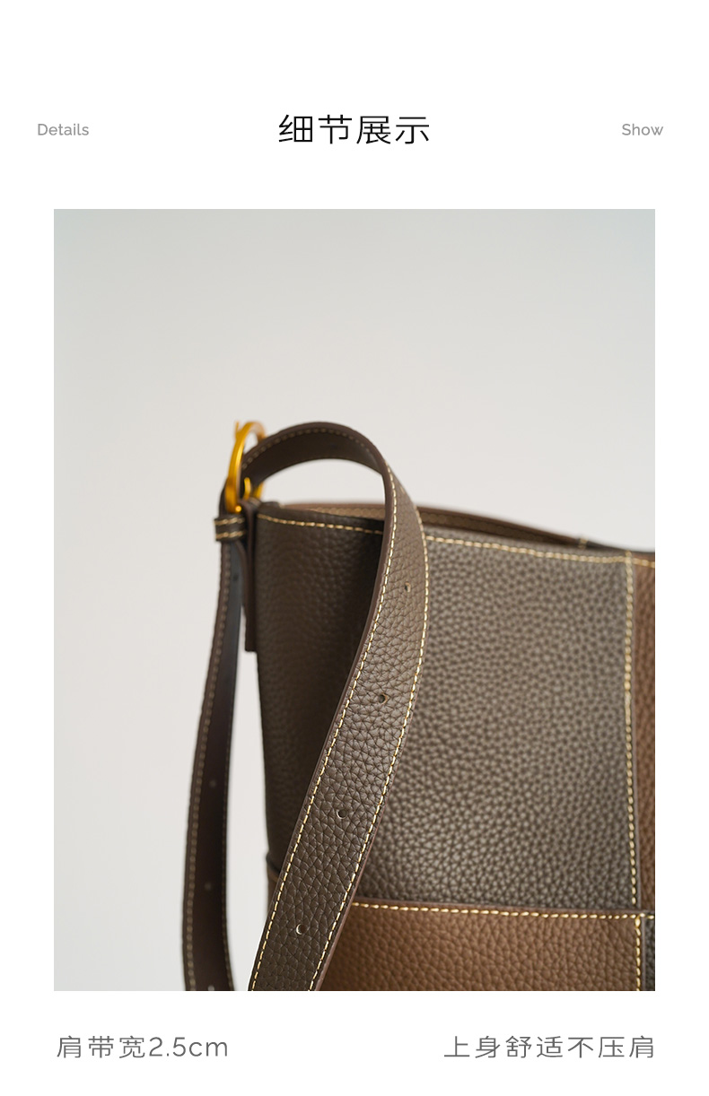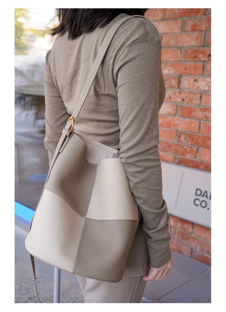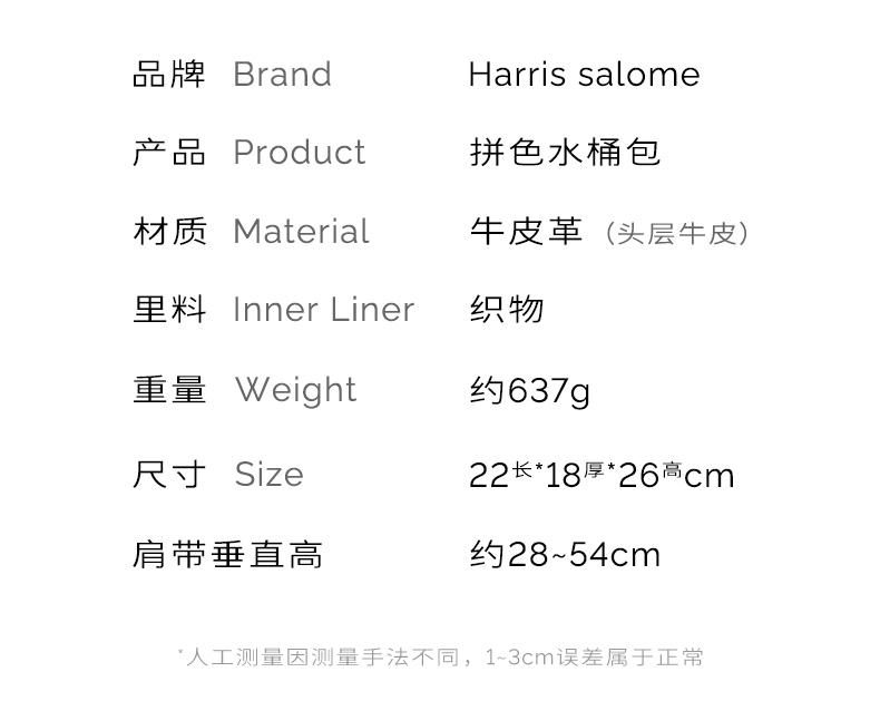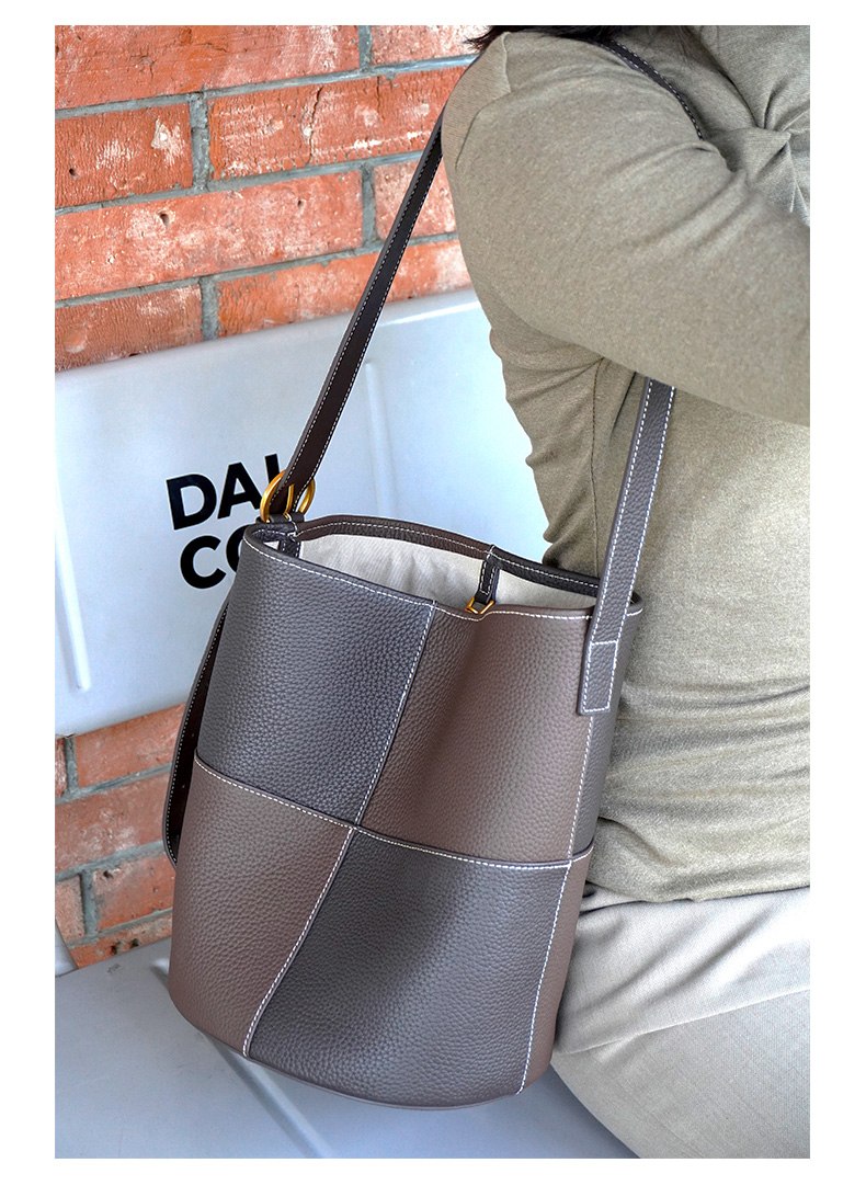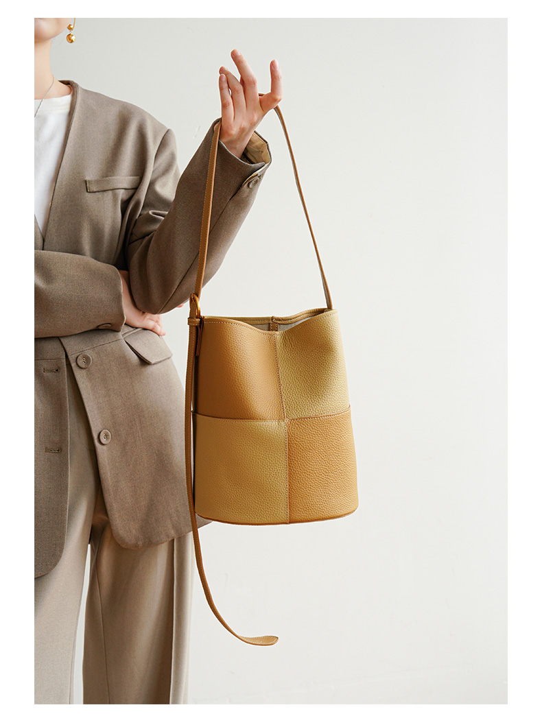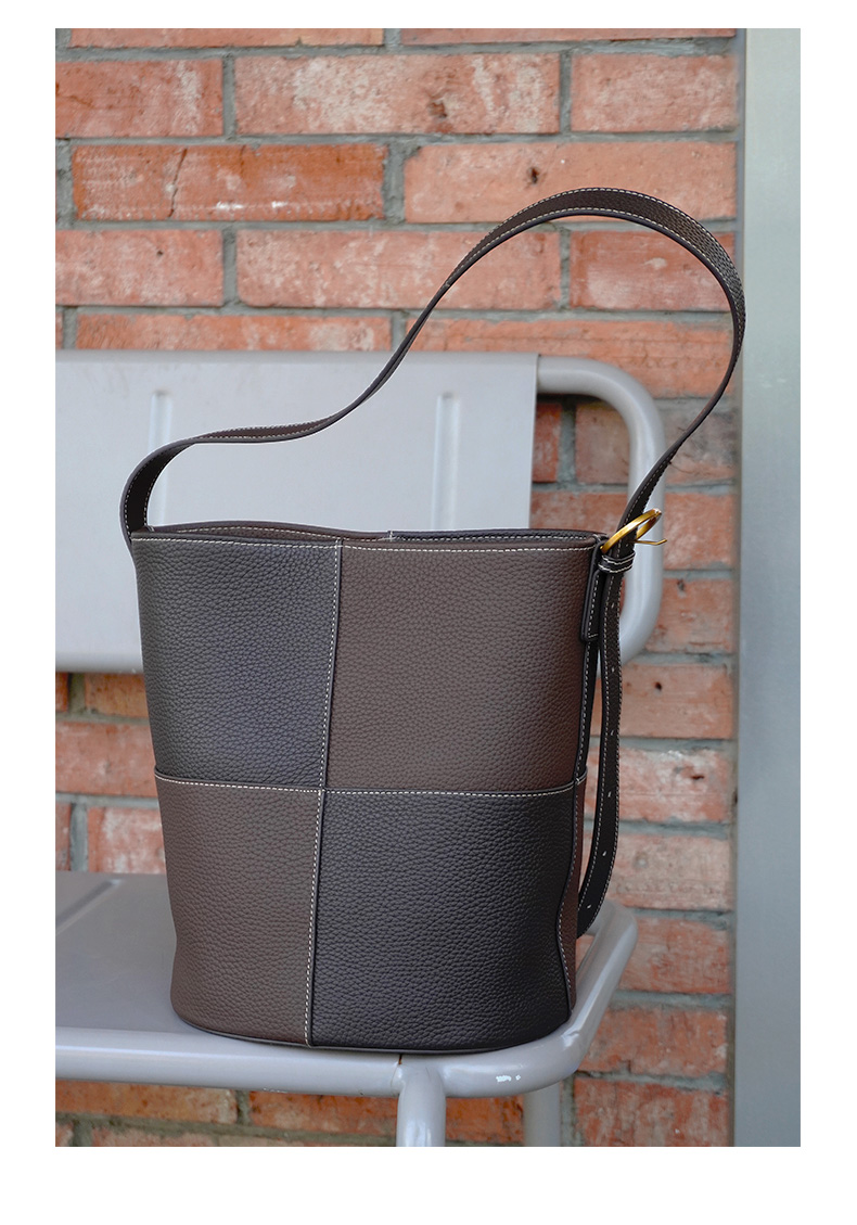 【大容量简约大气】HARRIS SALOME 头层牛皮拼色棋盘格水桶包9102