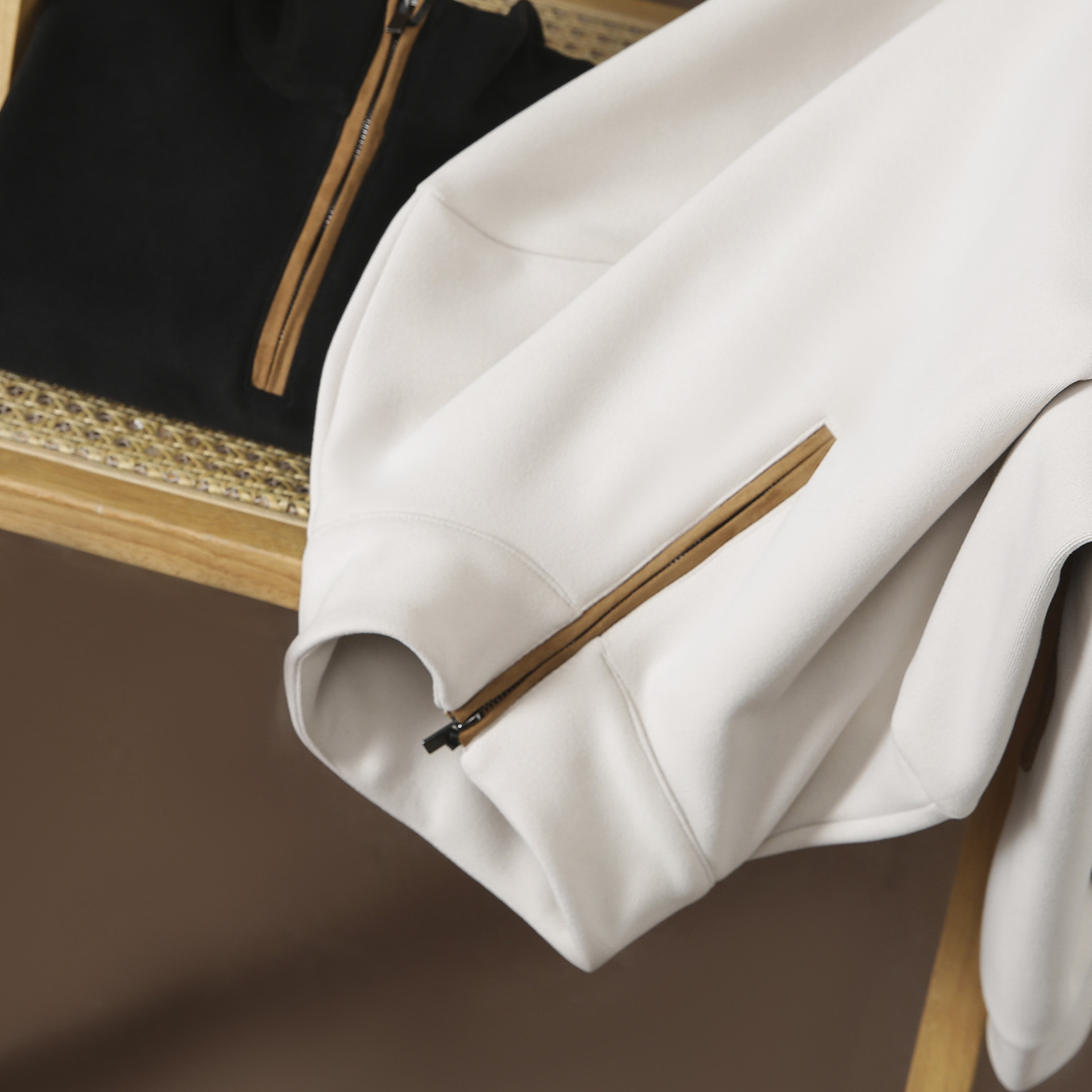 袖子上有撞色补丁设计
