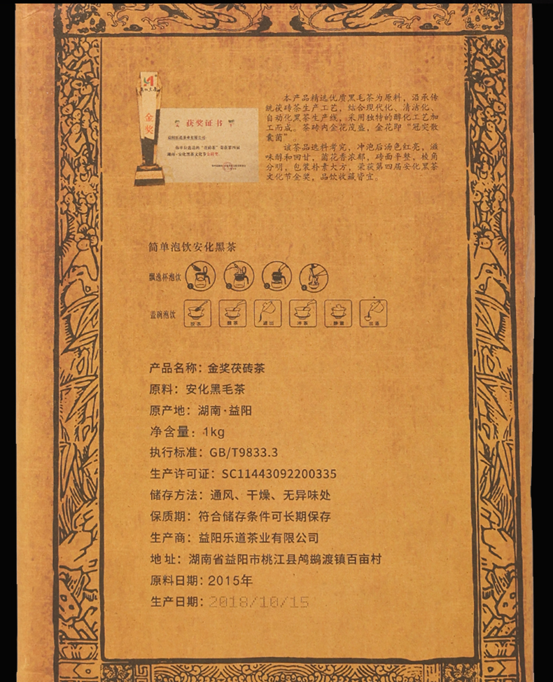 【品名】湖南乐道茶业 安华黑茶 金奖茯砖/老友金花黑茶 茶香浓郁 香浓回甘 【规格】 金奖茯砖1000g*1(赠礼袋+茶针+茶袋) 老友金花黑茶200g*1 【产地】国内 【发货包装】独立包装 【发货地】湖南、河南随机发 【发货快递】圆通、中通随机发 【补邮费地区】新疆、西藏+15元 内蒙古、甘肃、青海、宁夏、海南+10元 【发货时效】48-72小时,周末节假日顺延 |