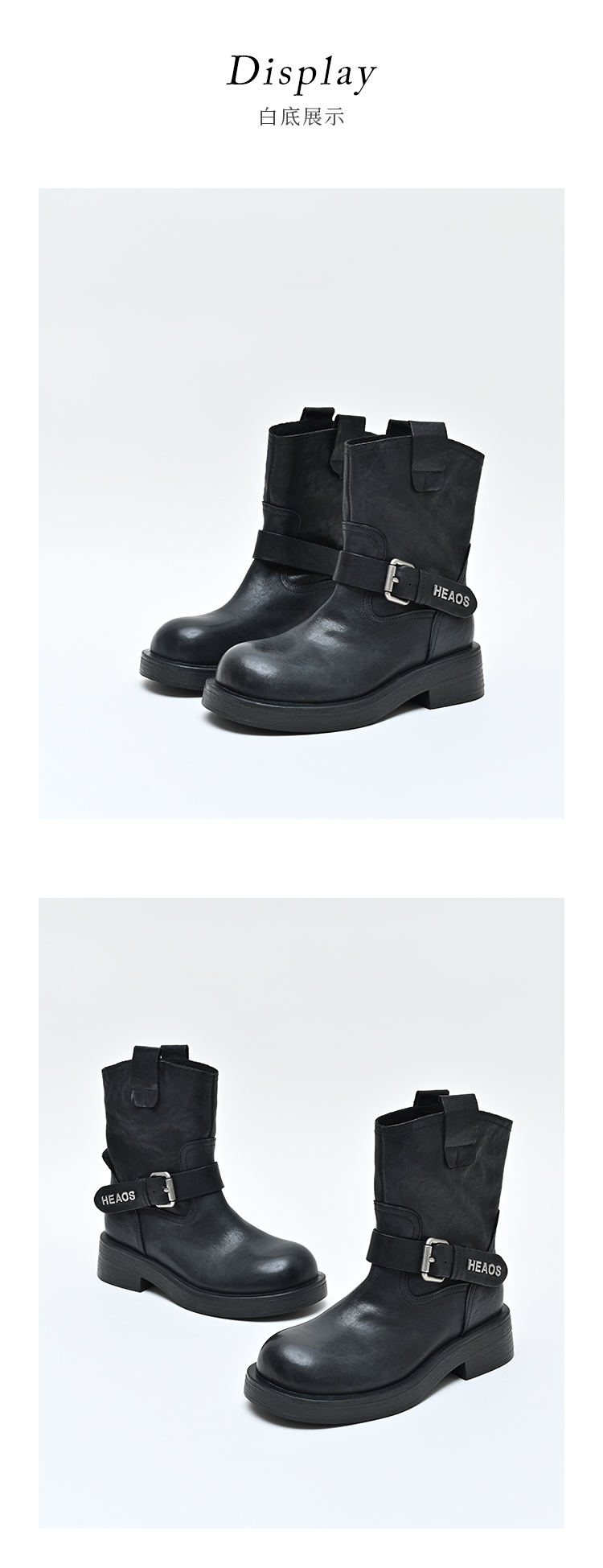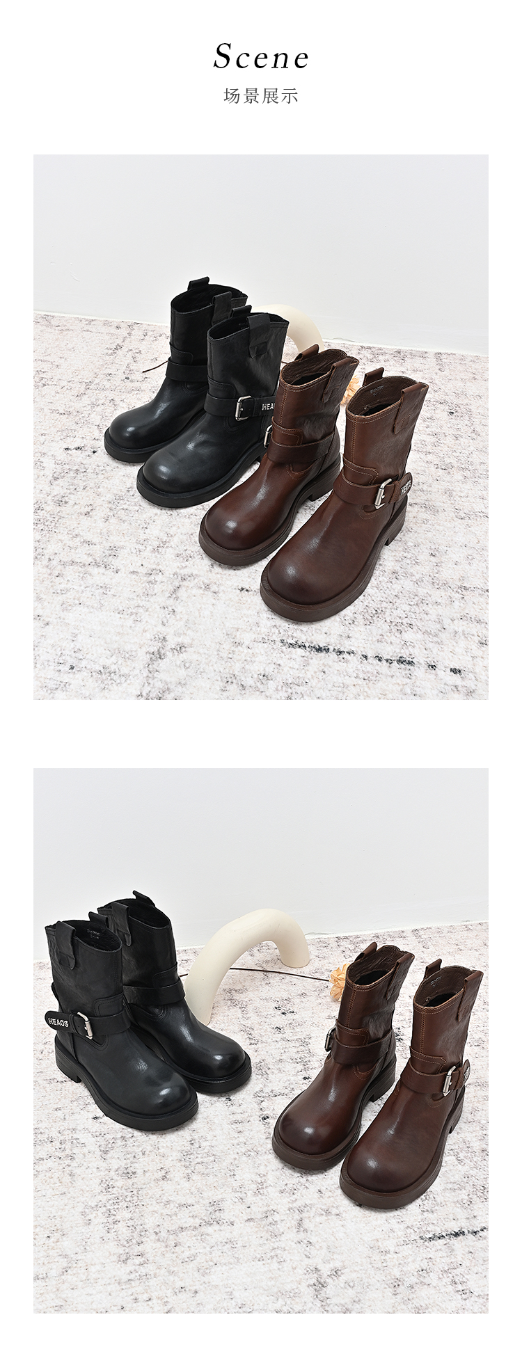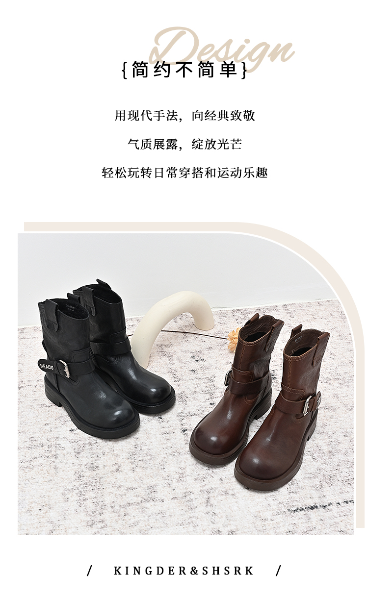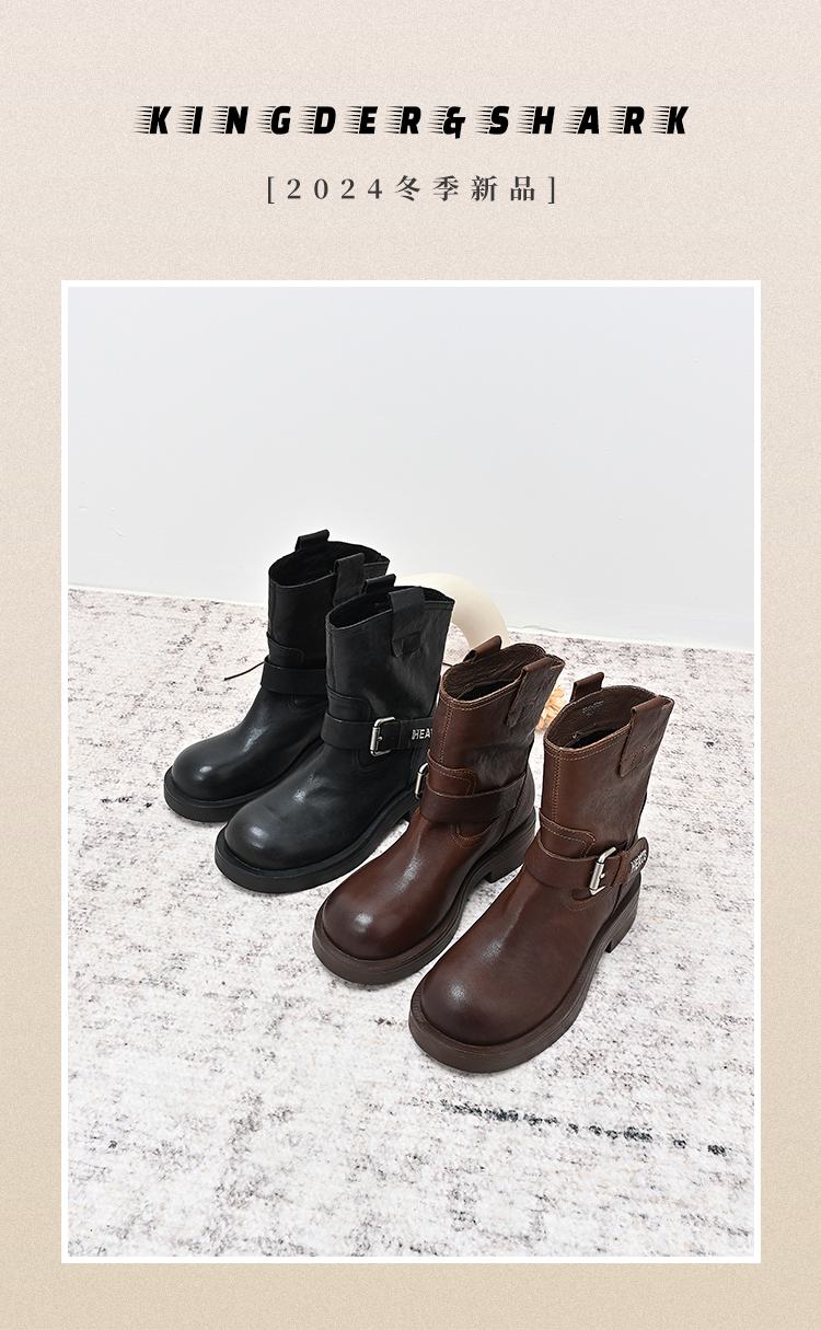 经典鲨2024年冬季新款百搭圆头平底单里潮酷时尚短筒靴子女KW185-D58021