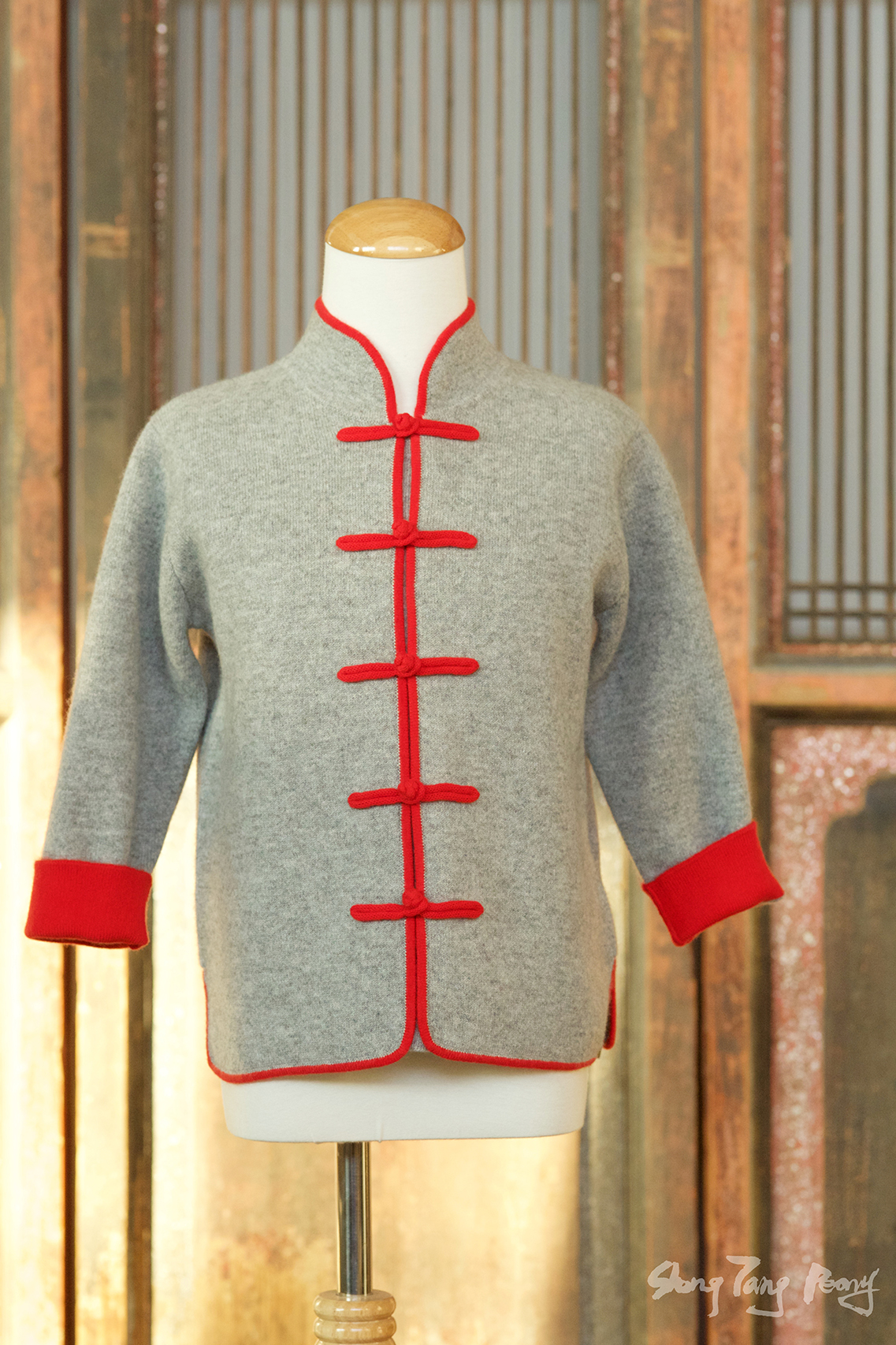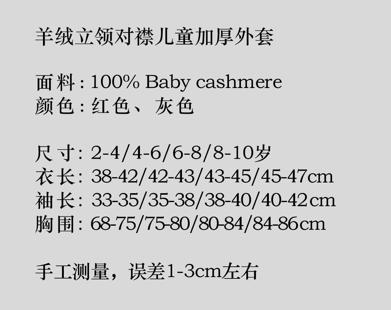盛唐牡丹| 羊绒立领对襟儿童加厚外套(4-6岁)-红灰可选