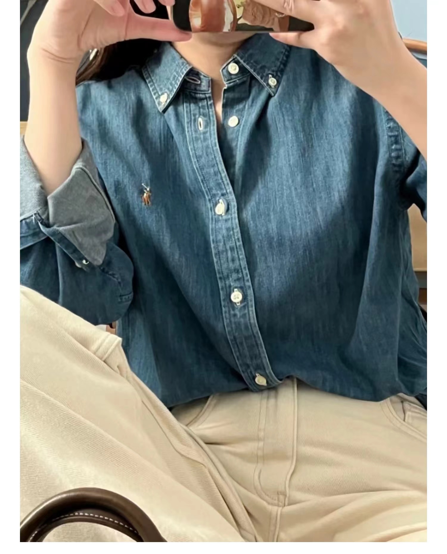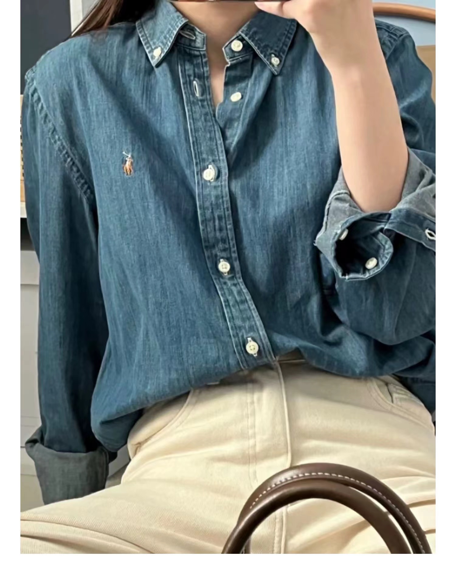 牛仔衬衫春季新款刺绣男女同款棉质长袖衬衣彩马标!这款运动衬衫采用轻盈的棉质牛仔布制成,舒适jin典,无论盛装打扮还是日常穿着都可轻松驾驭,彩色标志性刺绣小马标位于胸前左侧,纽扣尖领·纽扣式门襟·长袖,纽扣筒形袖口,料子很扎实 剪裁也有设计感,现在这个乱穿衣的季节,一件好看百搭的衬衫当然必不可少jin典复古老钱风 City boy Girl 人手一件~