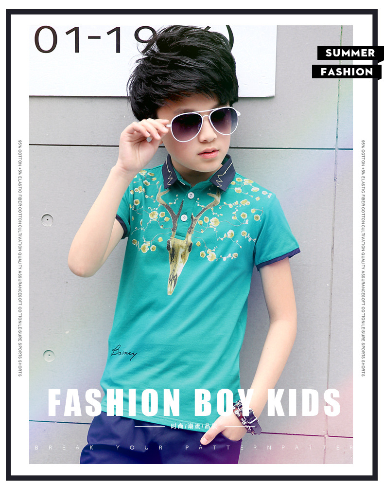 【套装】童装男童新款韩版夏款宝宝衣服两件套中大童纯棉鹿头套装