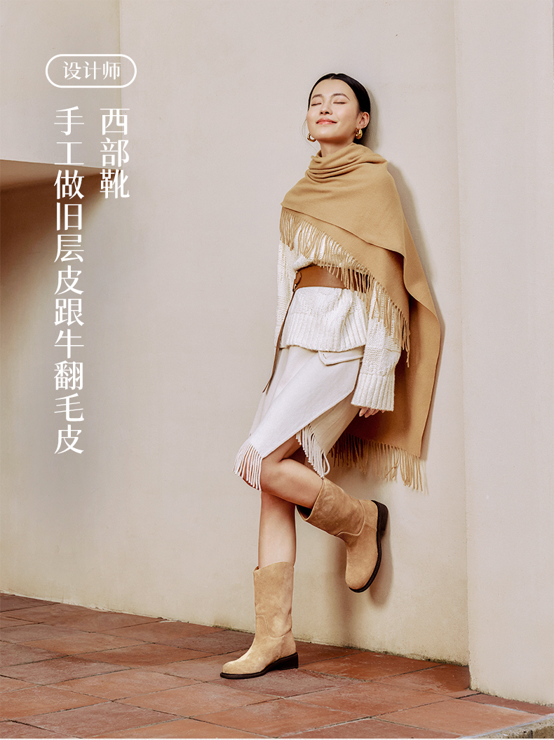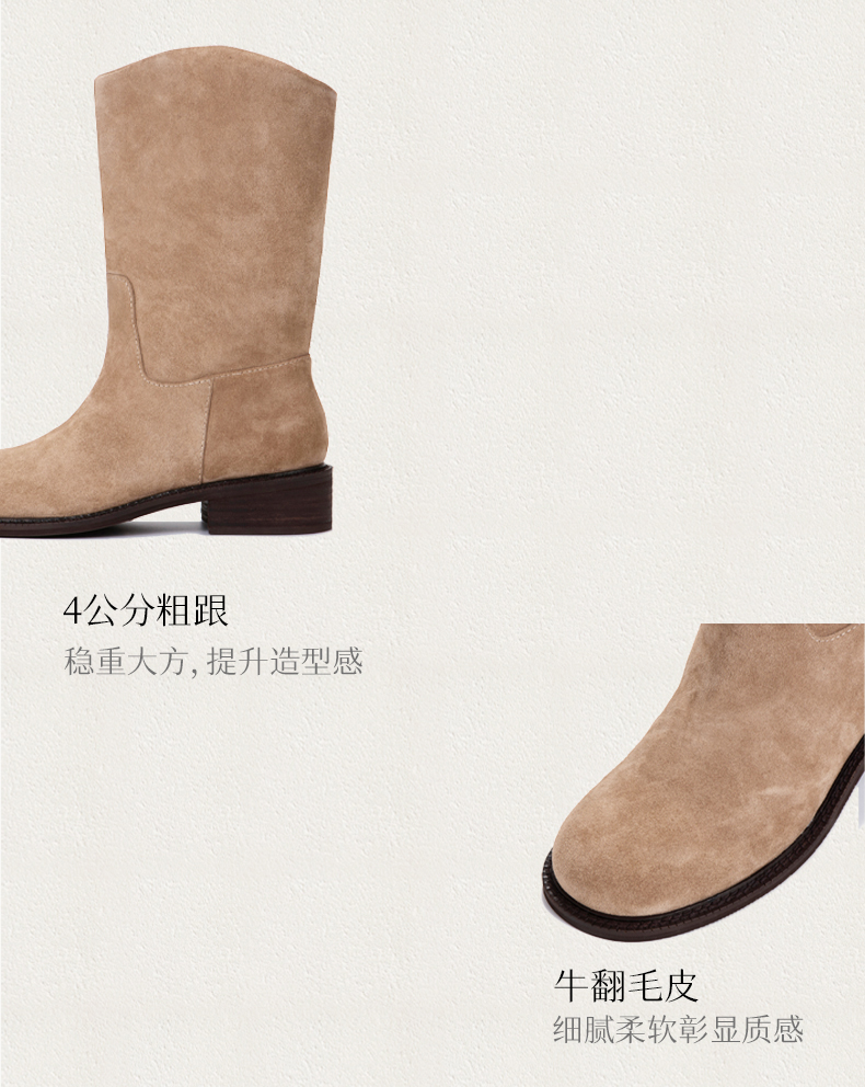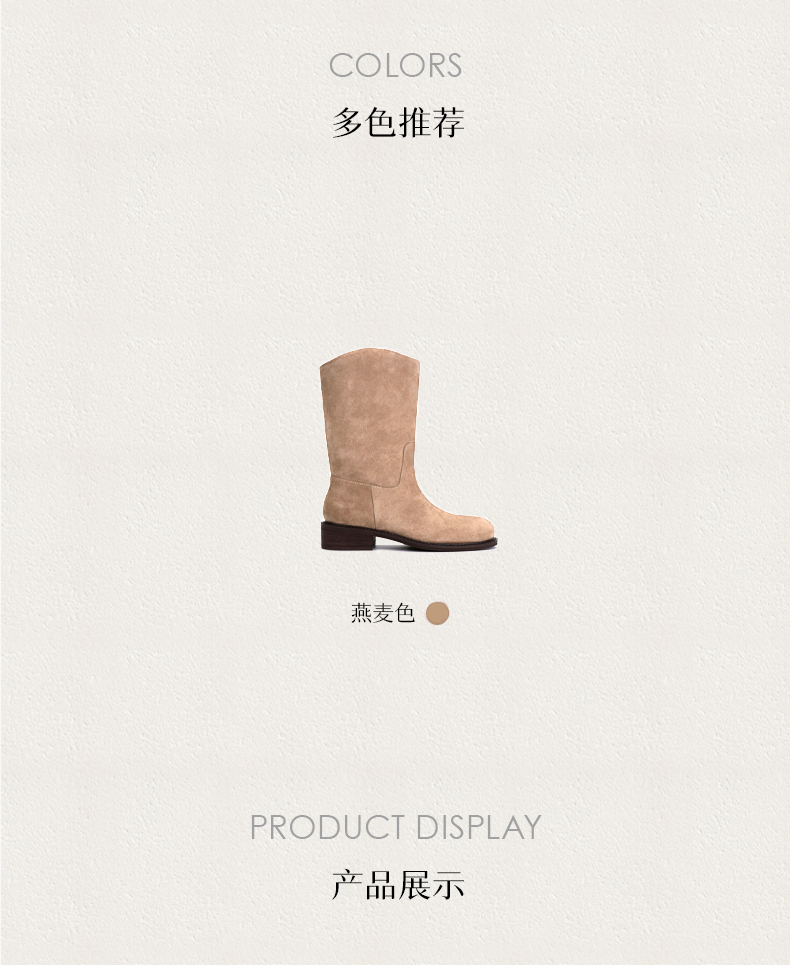 heelz设计师手工鞋履 |手工做旧层皮跟牛翻毛皮 西部靴 4 公分