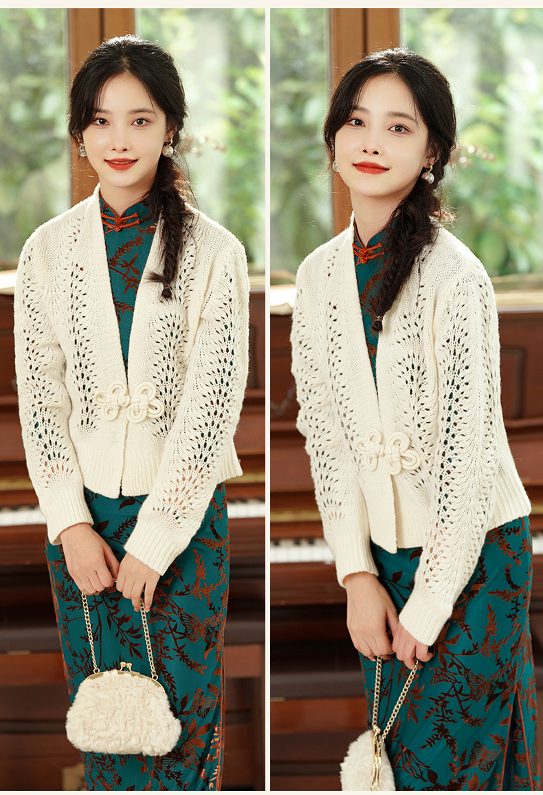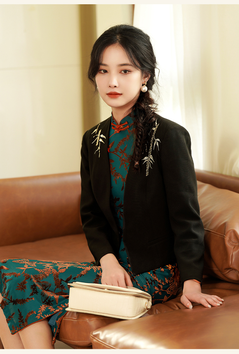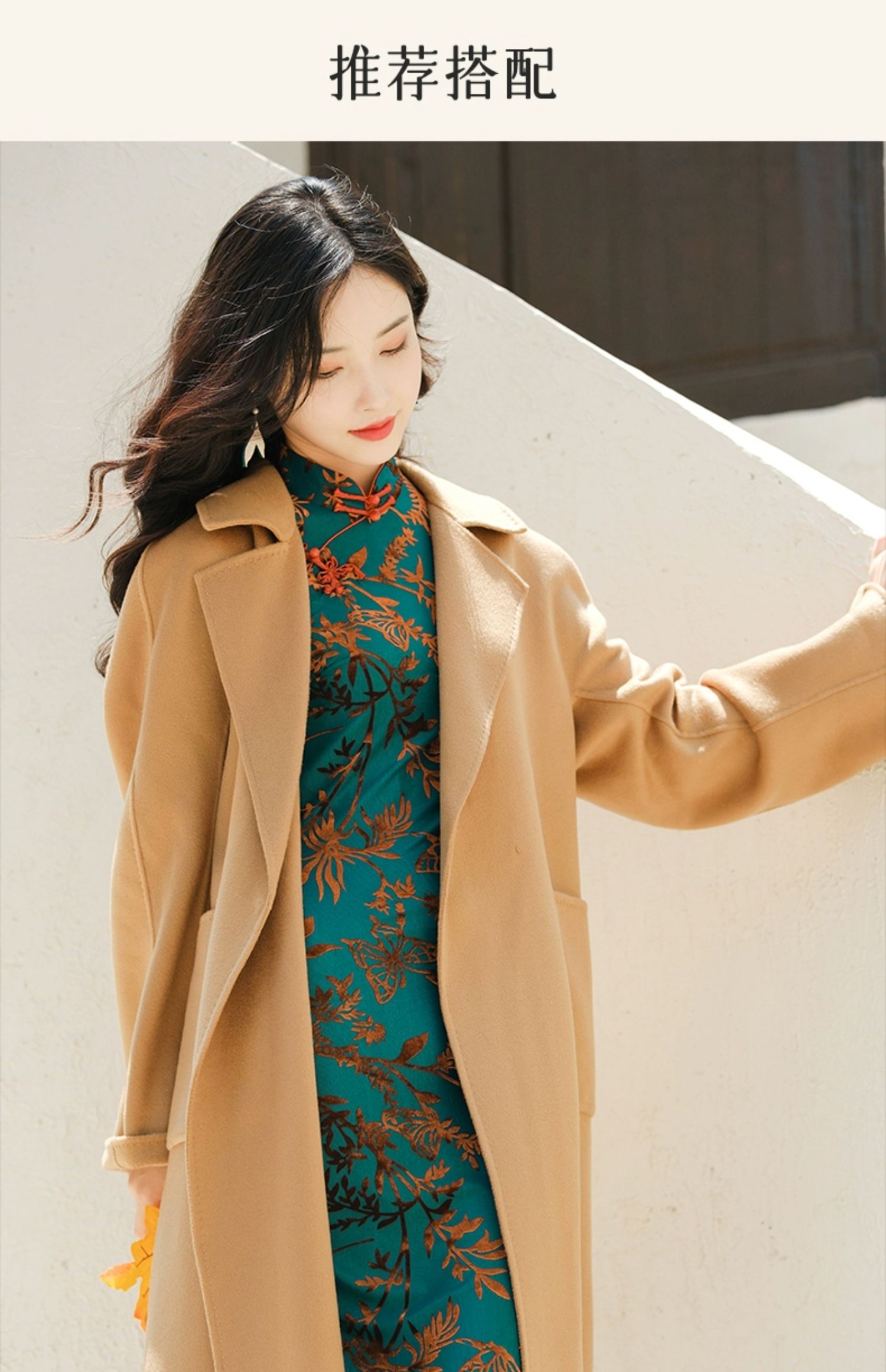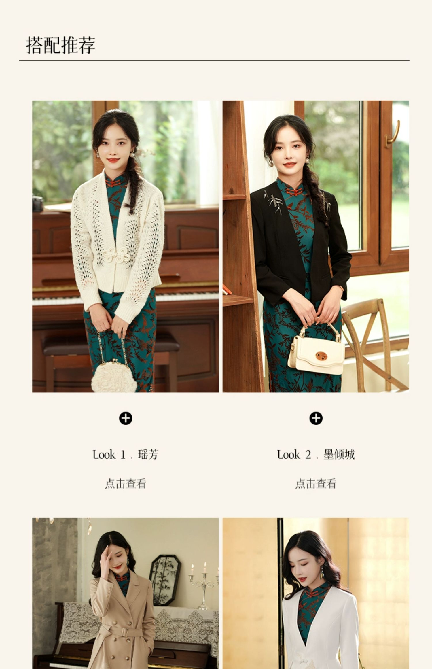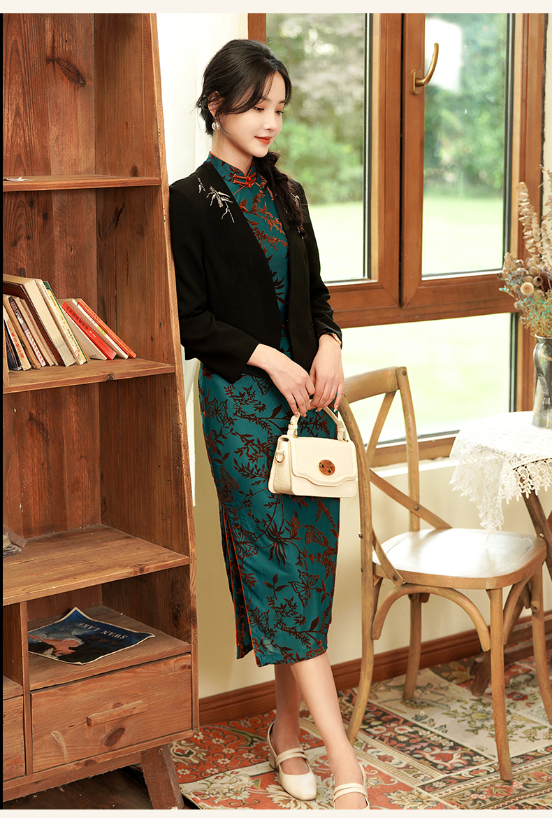 逸红颜蝶语扇2025年秋季新款弹力烂花丝绒旗袍改良版连衣裙女日常