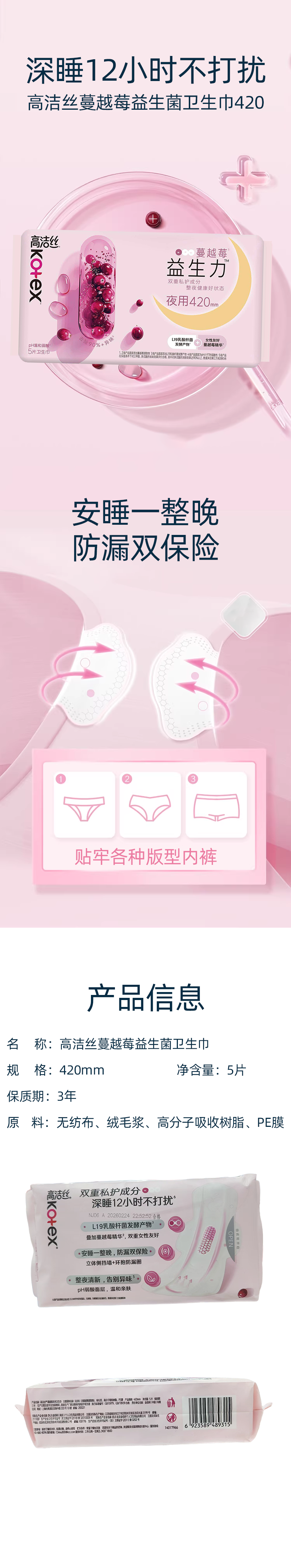 高洁丝蔓越莓益生菌卫生巾420(5片)【21004024】