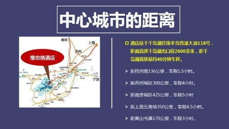 维也纳国际酒店(千岛湖店),是深圳维也纳酒店管理集团旗下加盟连锁酒店之一,是一家准五星级国际酒店。酒店地理位置优越——位于千岛湖杭新景高速入口,青溪新城青溪大道118号(珍珠半岛广场、水之灵演艺中心对面)。