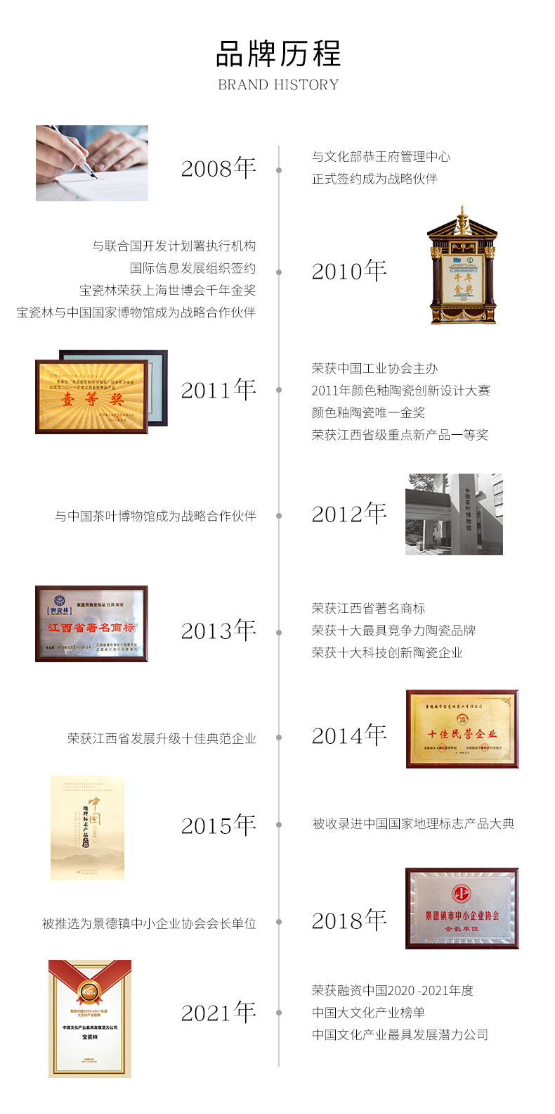 宝瓷林,2008年创立,是一家将传统清宫官窑制瓷技艺,移植于当代家居日用瓷品上的景德镇陶瓷骨干企业,是当下唯一一家代表“千年瓷都-景德镇”走向全球的陶瓷连锁品牌,被誉为陶瓷界的“国酒茅台”。