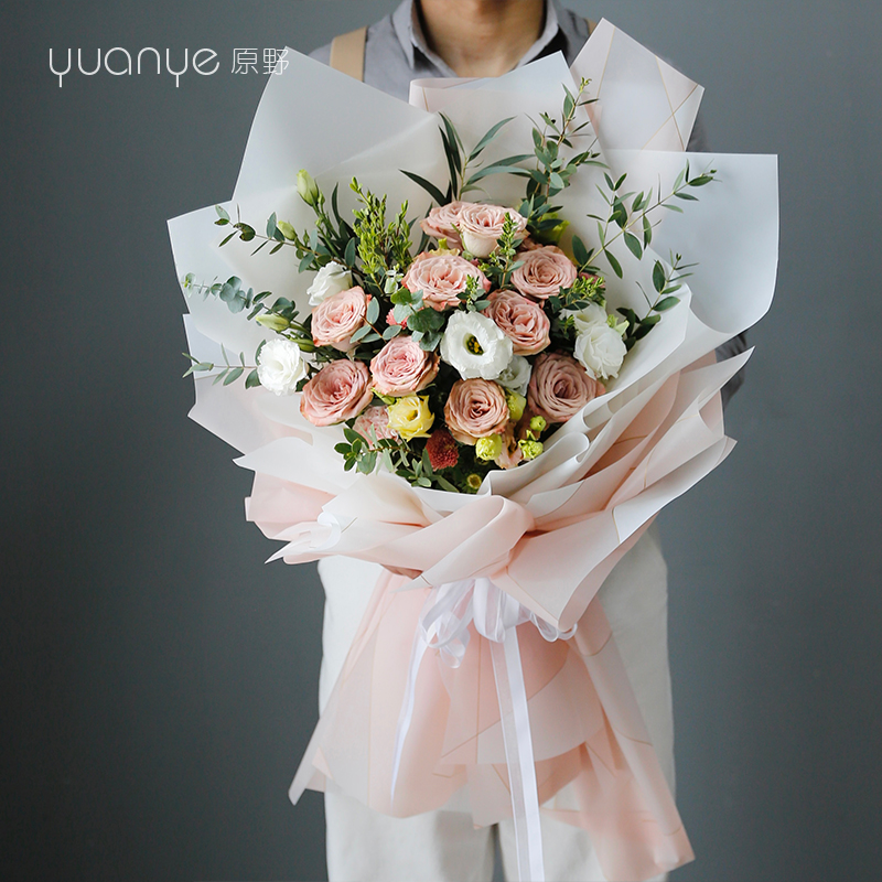 11朵卡布奇诺玫瑰桔梗韩式花束