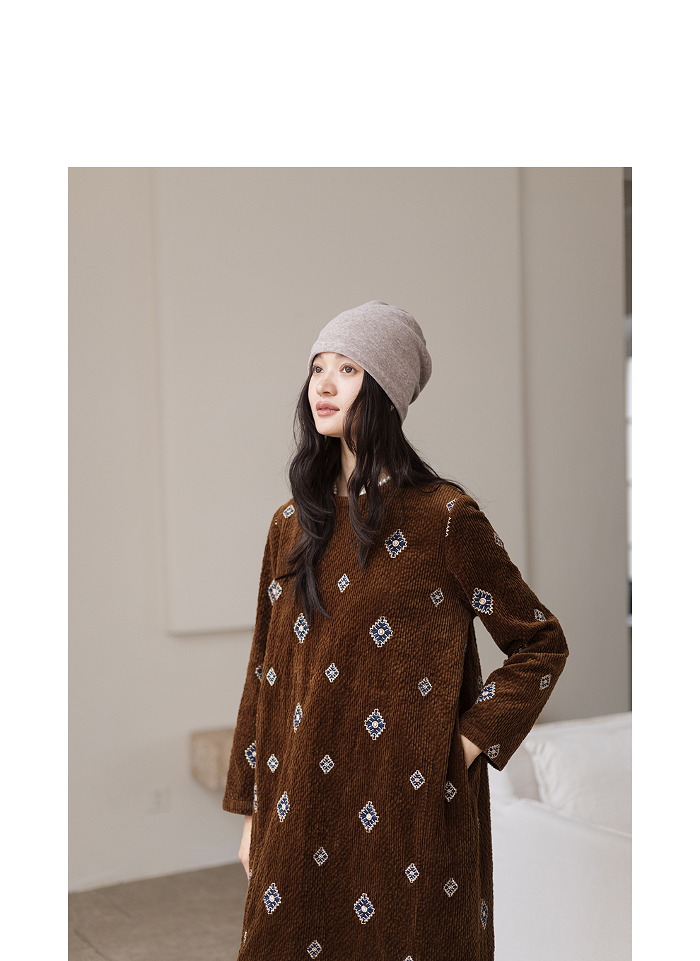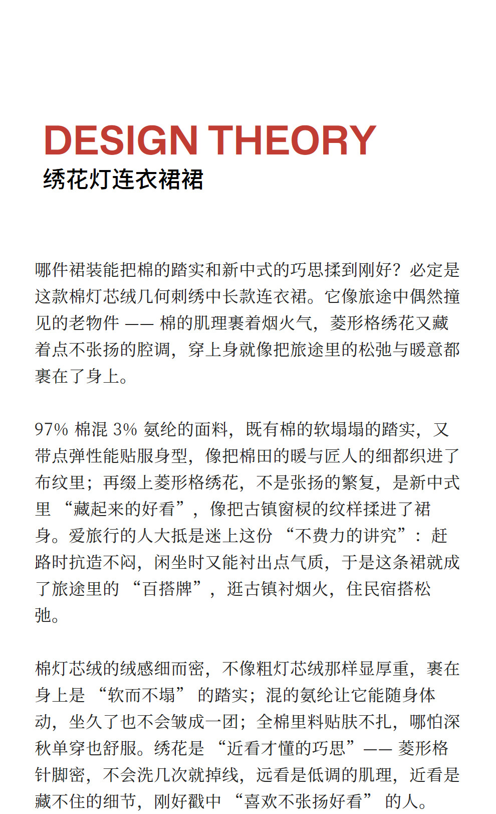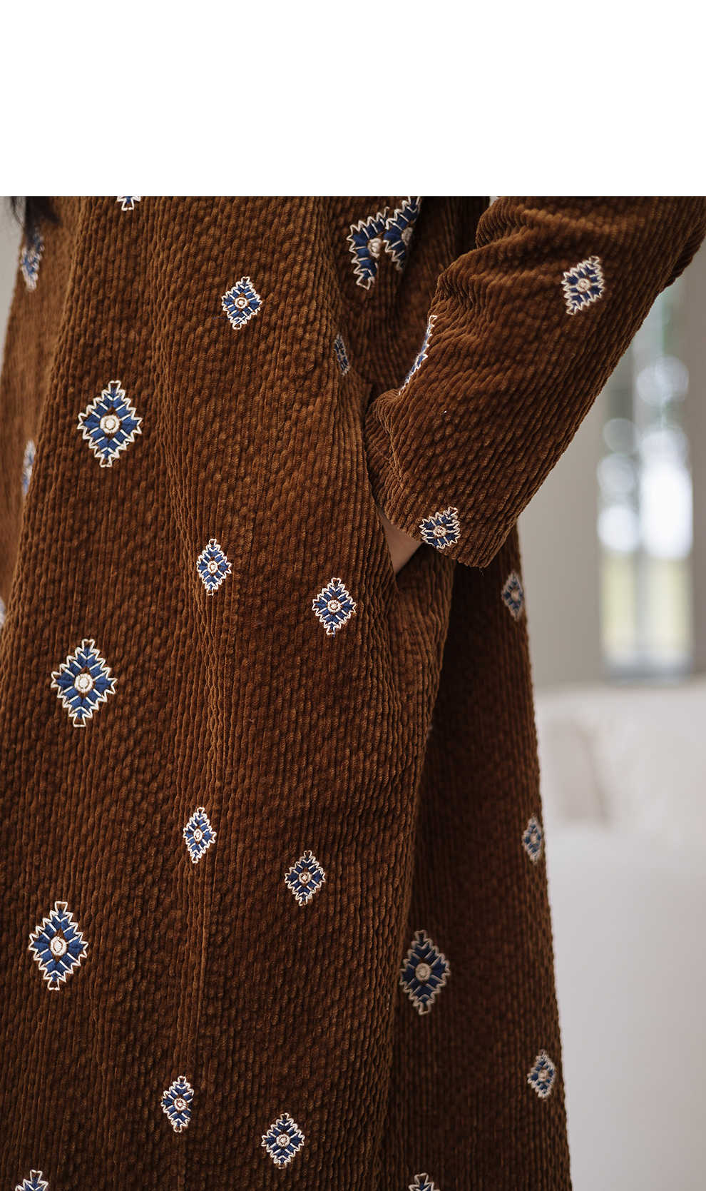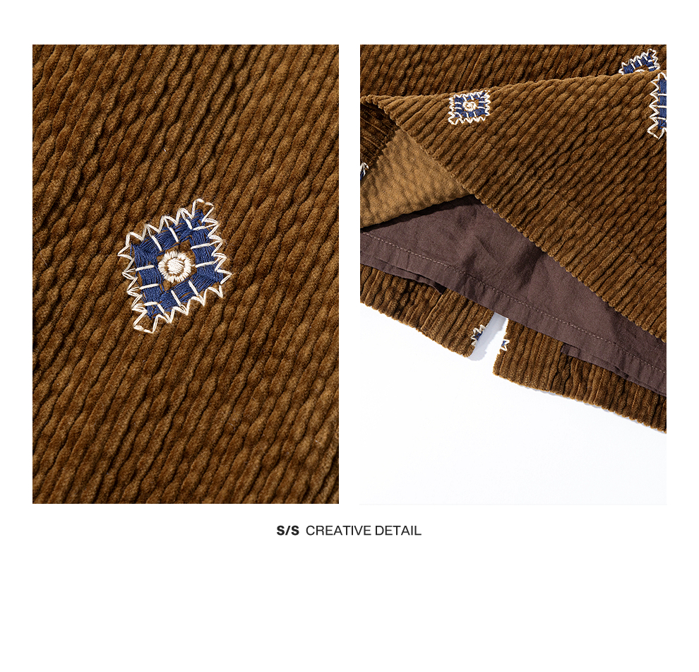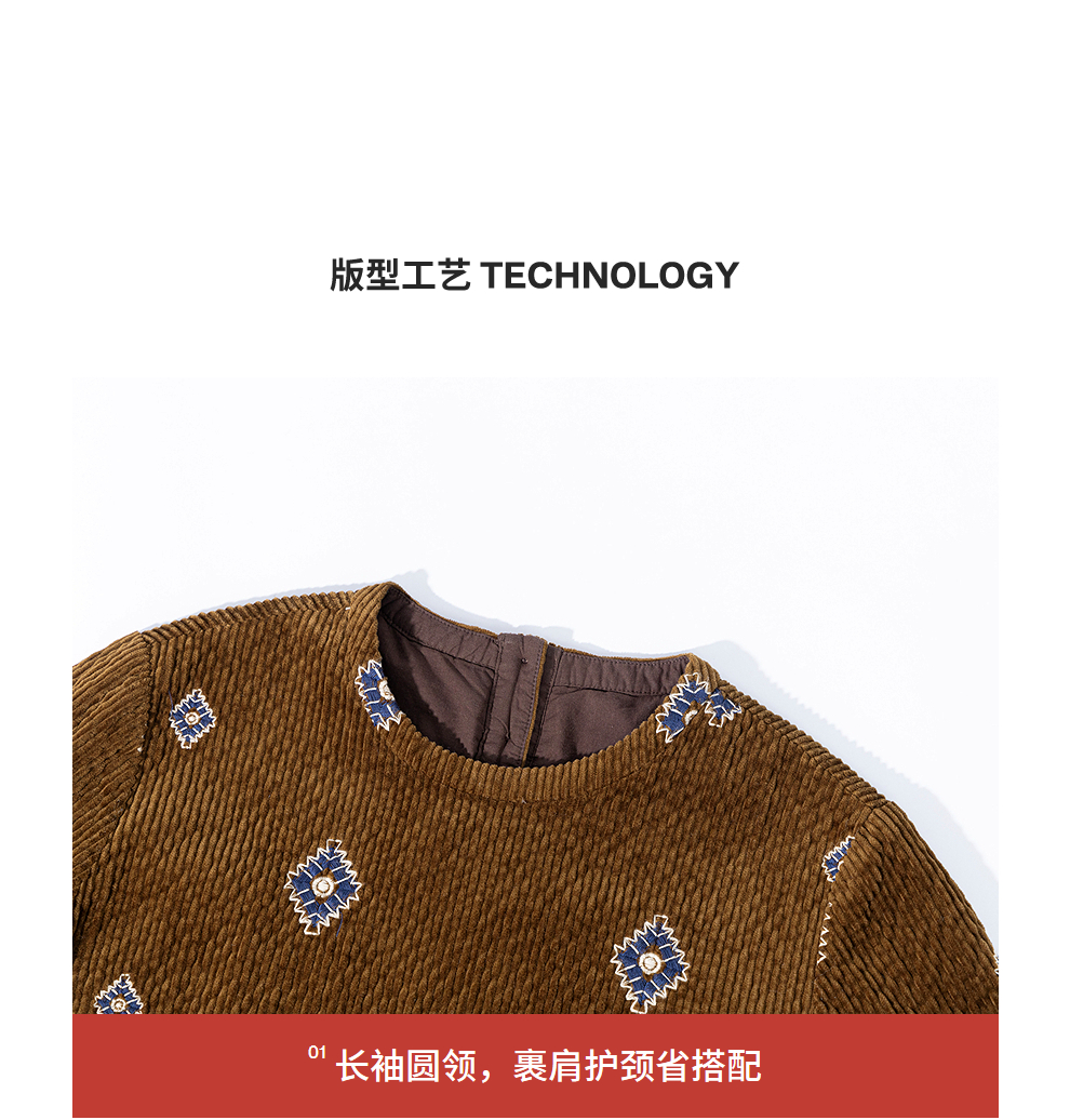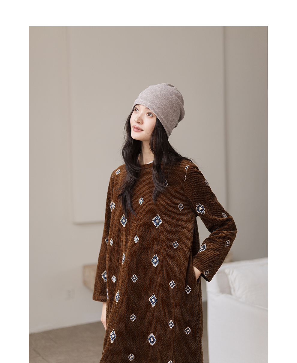绽放855朵/绣花灯连衣裙·棉灯芯绒几何刺绣藏肉显瘦裙子女中长款