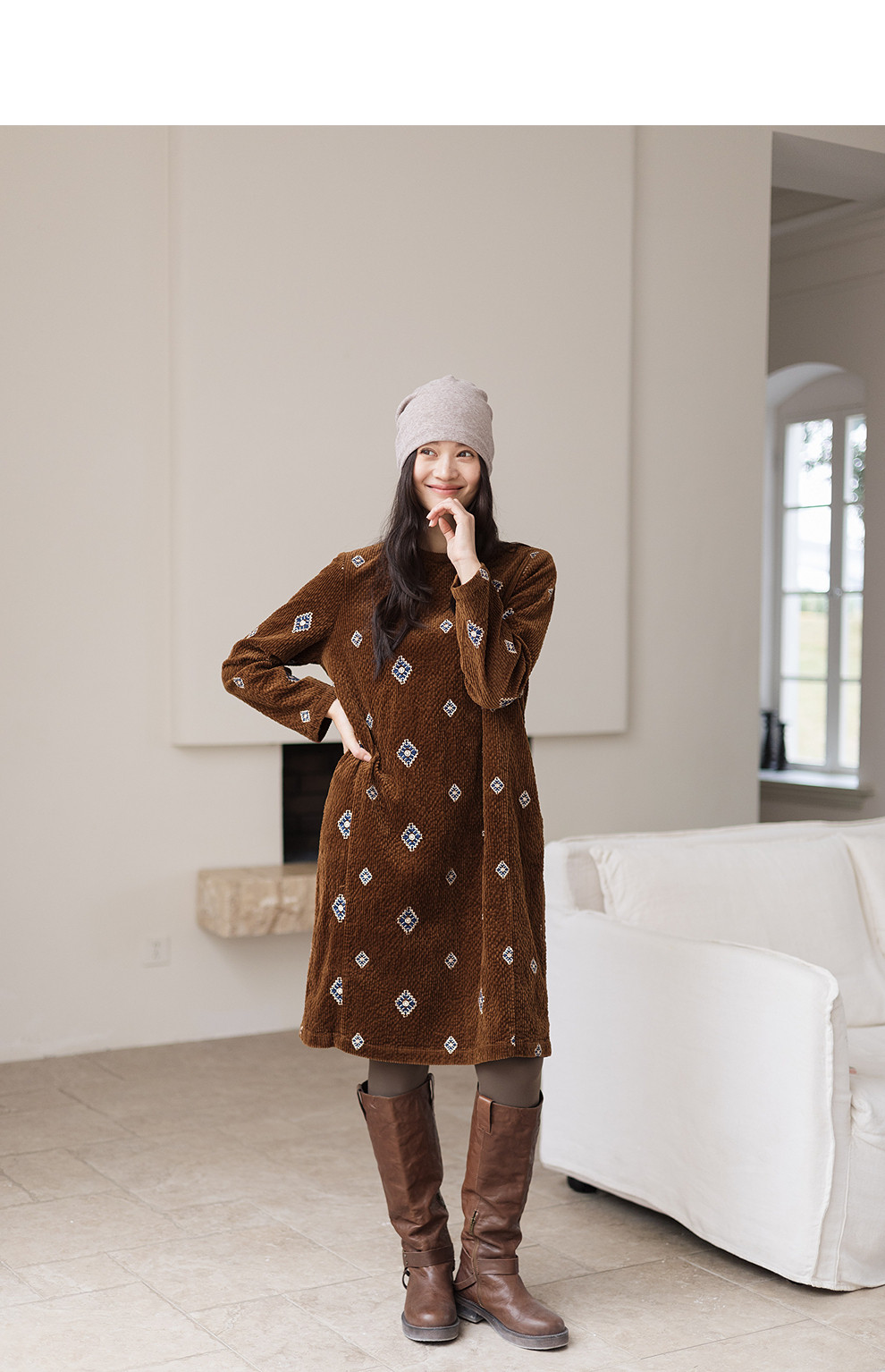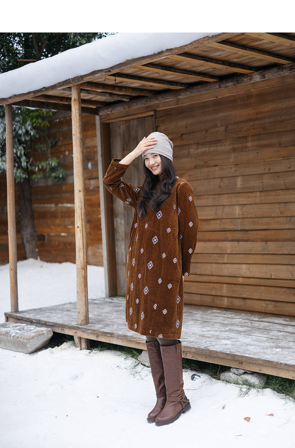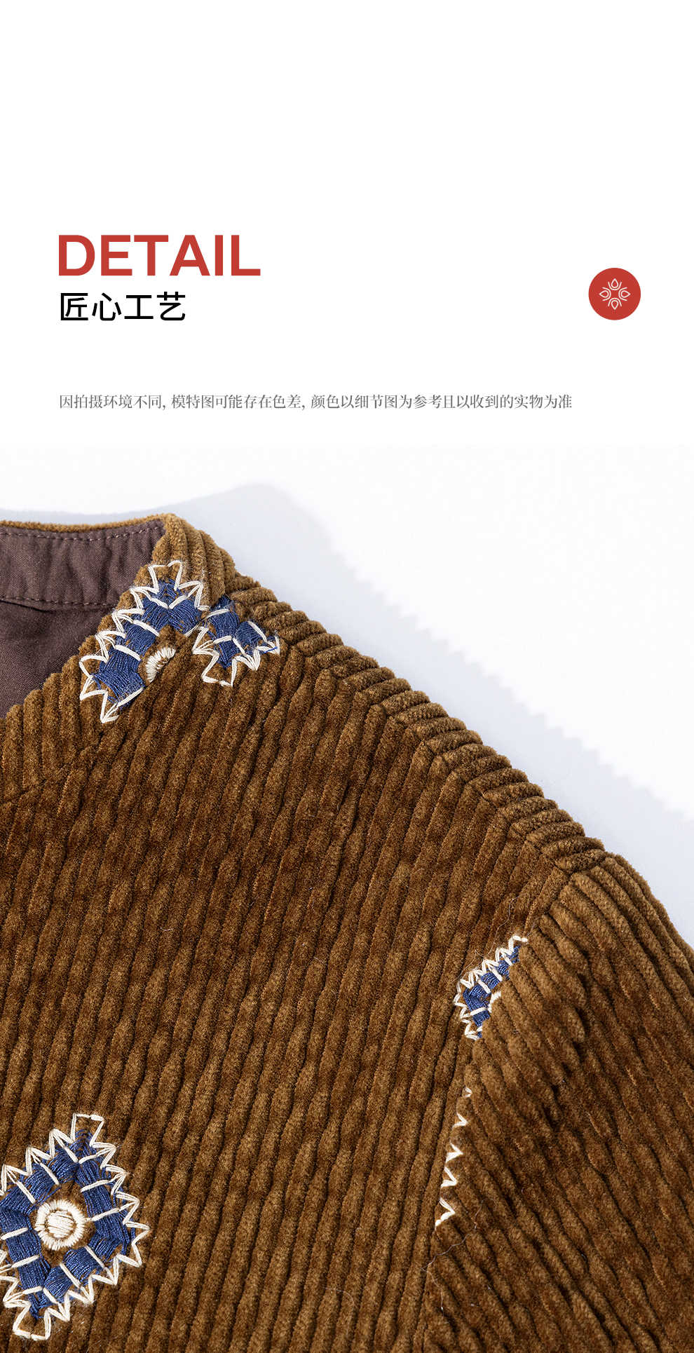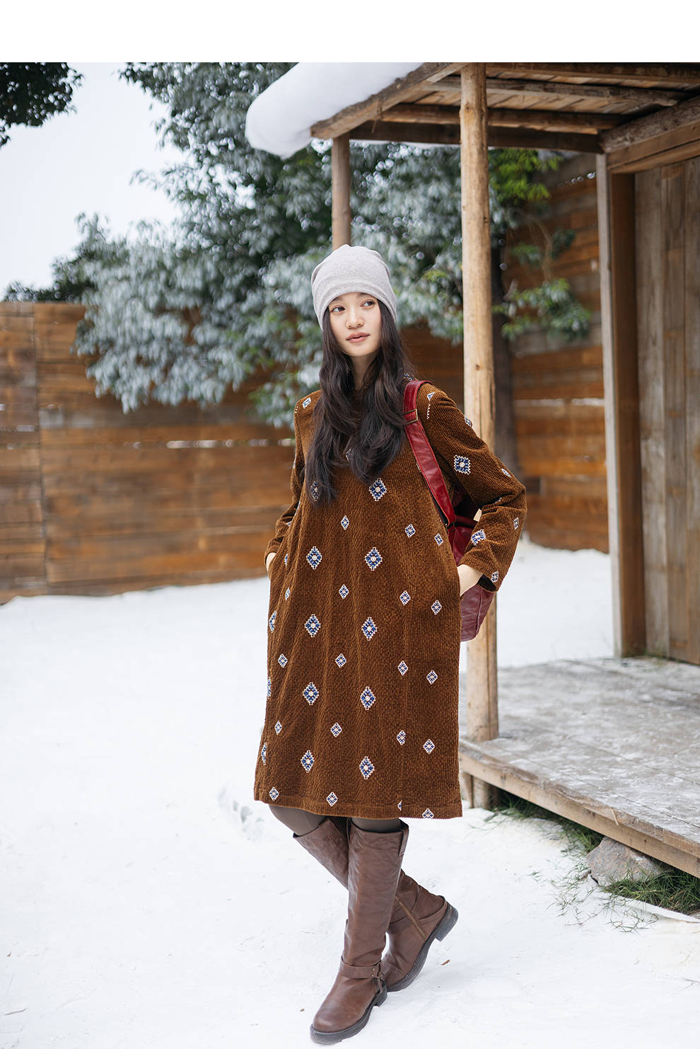 绽放855朵/绣花灯连衣裙·棉灯芯绒几何刺绣藏肉显瘦裙子女中长款