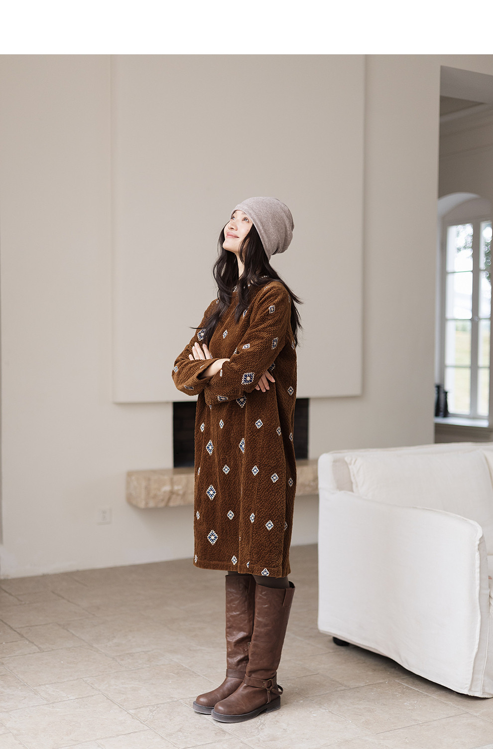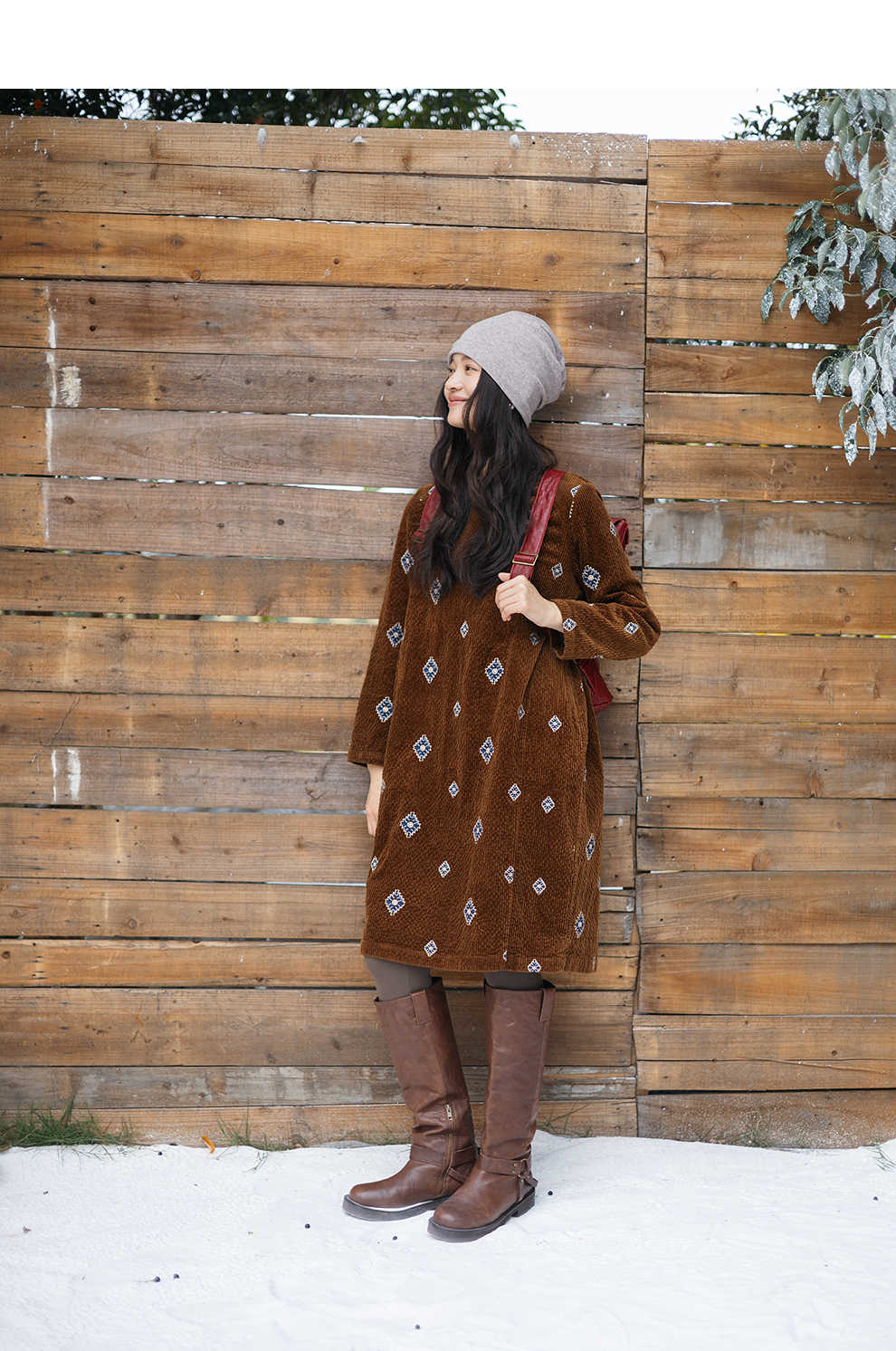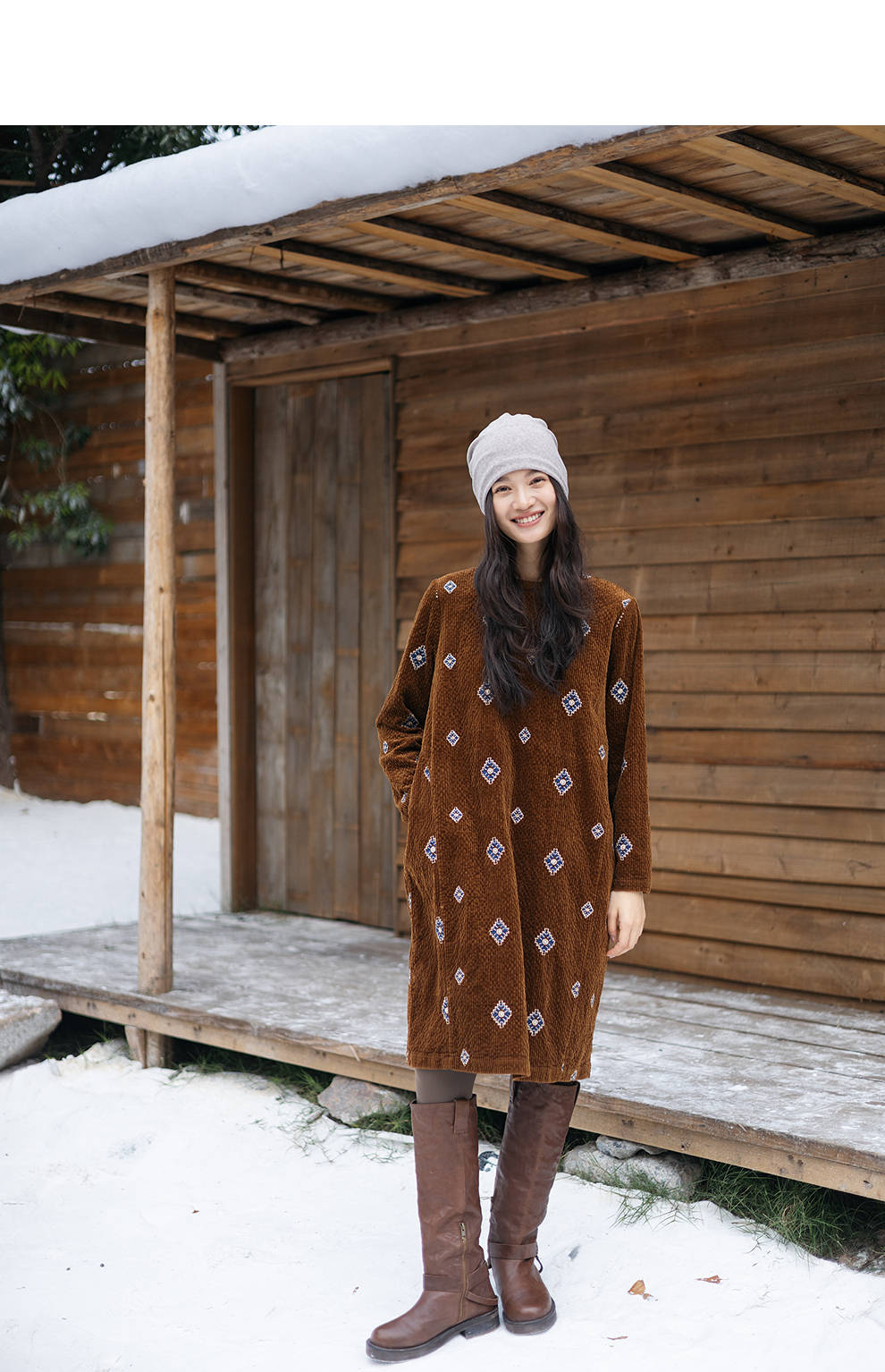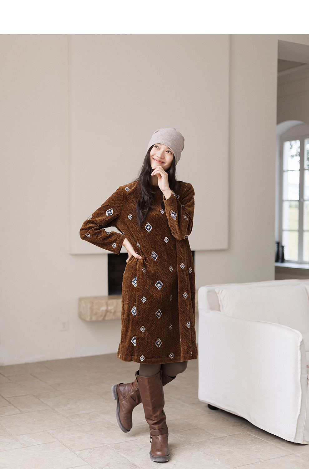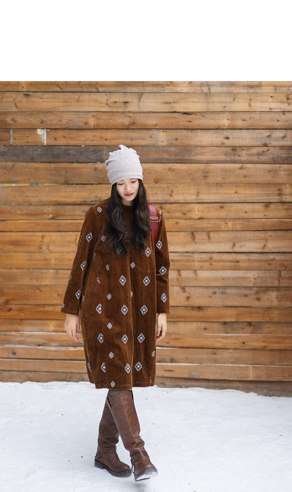 绽放855朵/绣花灯连衣裙·棉灯芯绒几何刺绣藏肉显瘦裙子女中长款