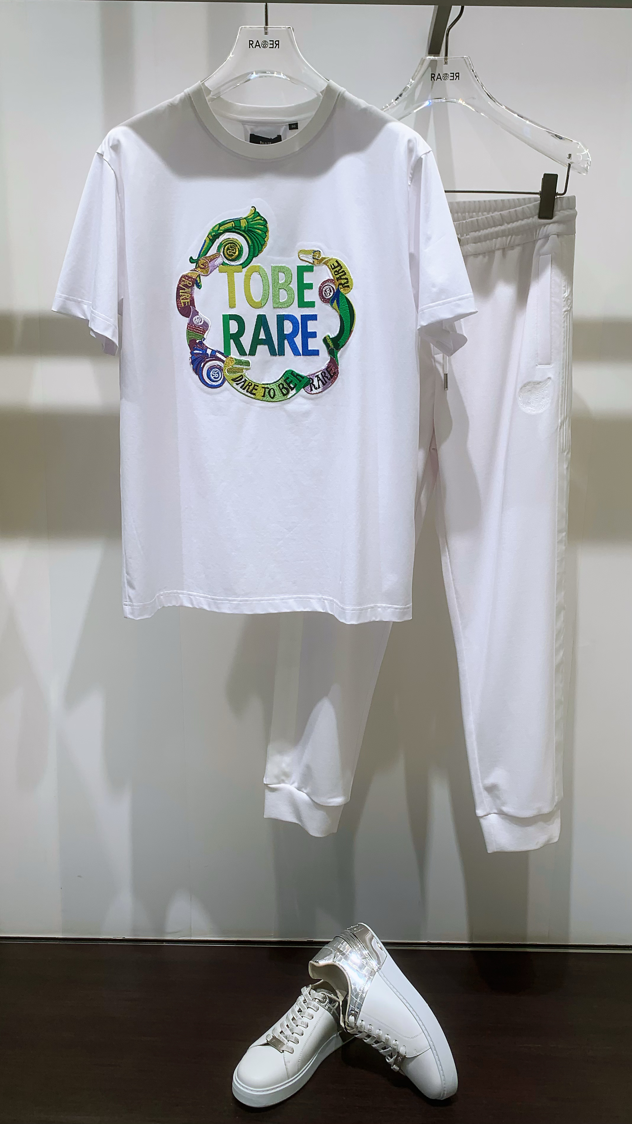【1F】RARE威雅 | 22春夏 新款白色多彩刺绣slogan图案短袖T恤 男士短袖T恤