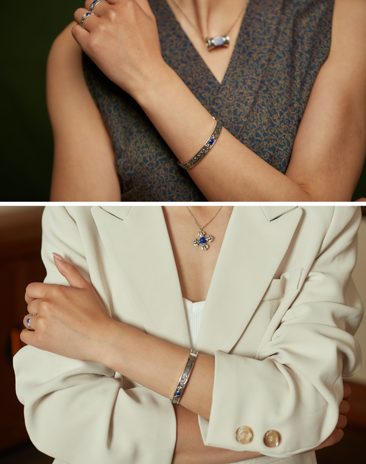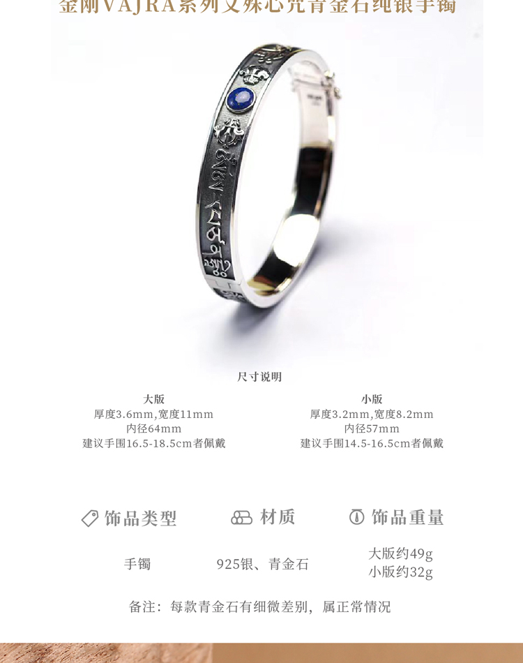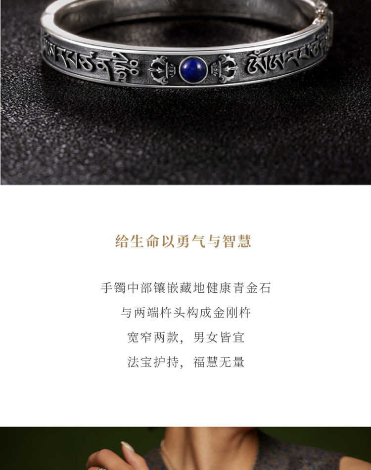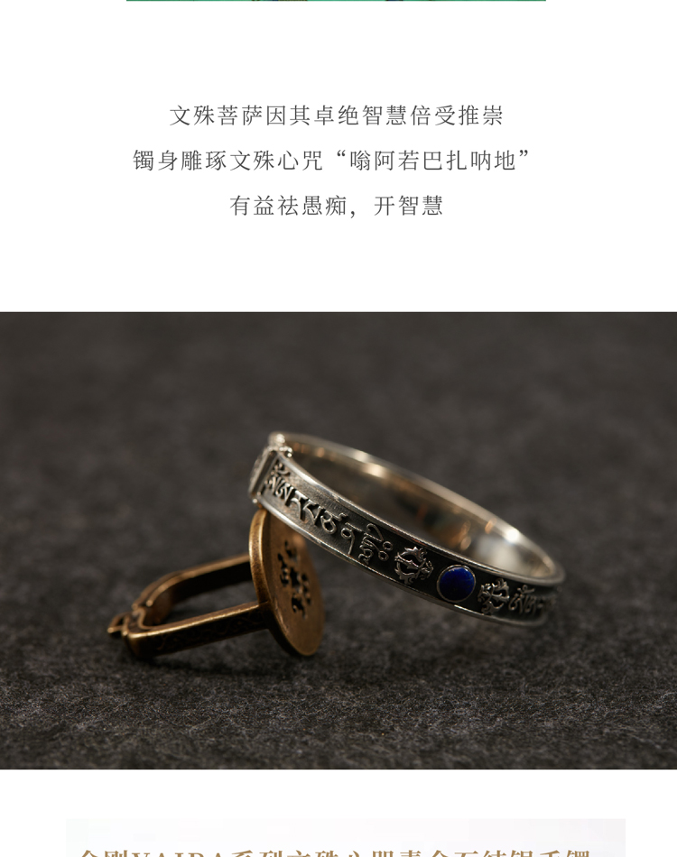 醍醐 金刚VAJRA系列 文殊心咒青金石银手镯 原创设计 2款可选