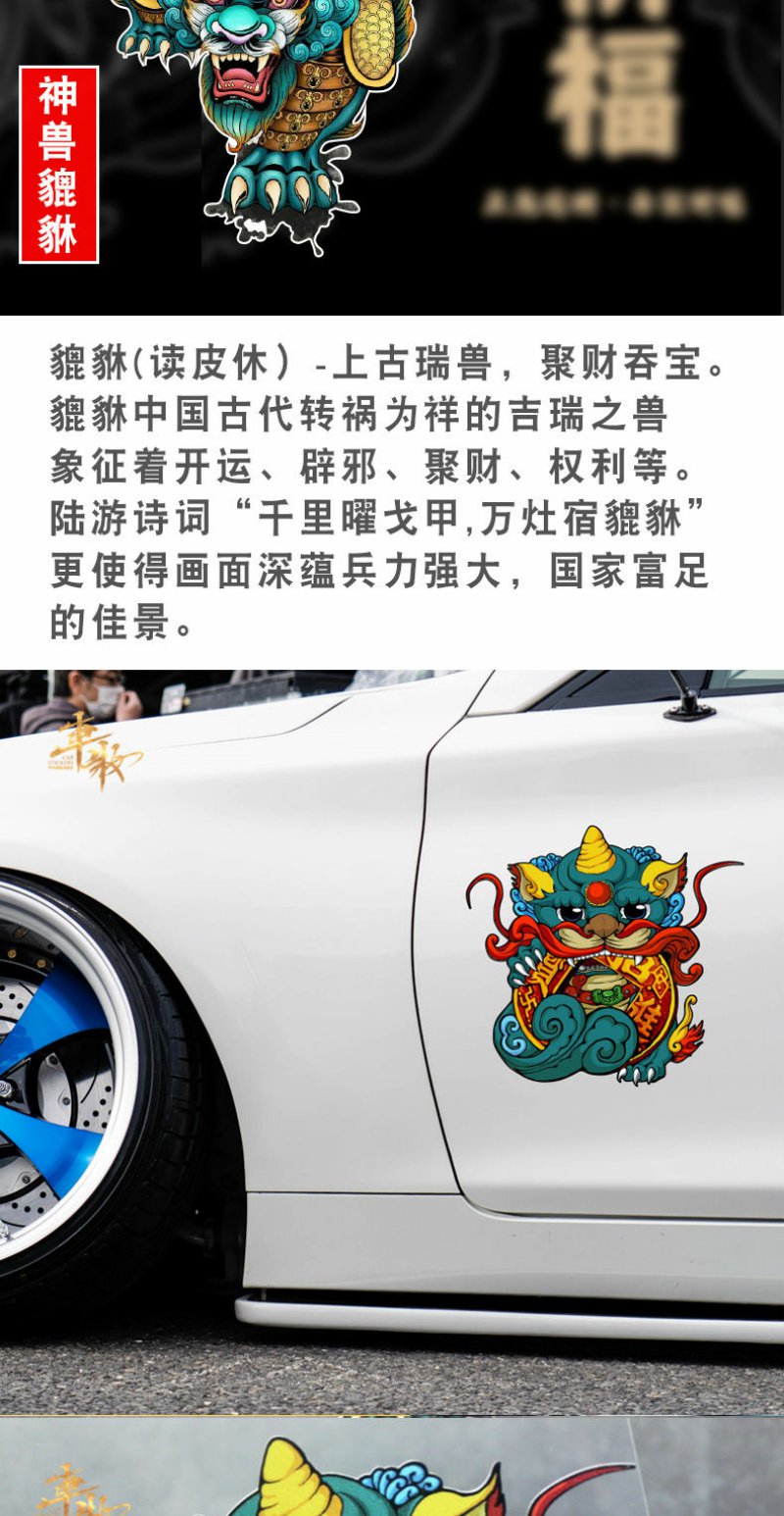 国潮个性创意车贴平安符遮盖保险杠划痕电动车摩托车车门贴后窗贴