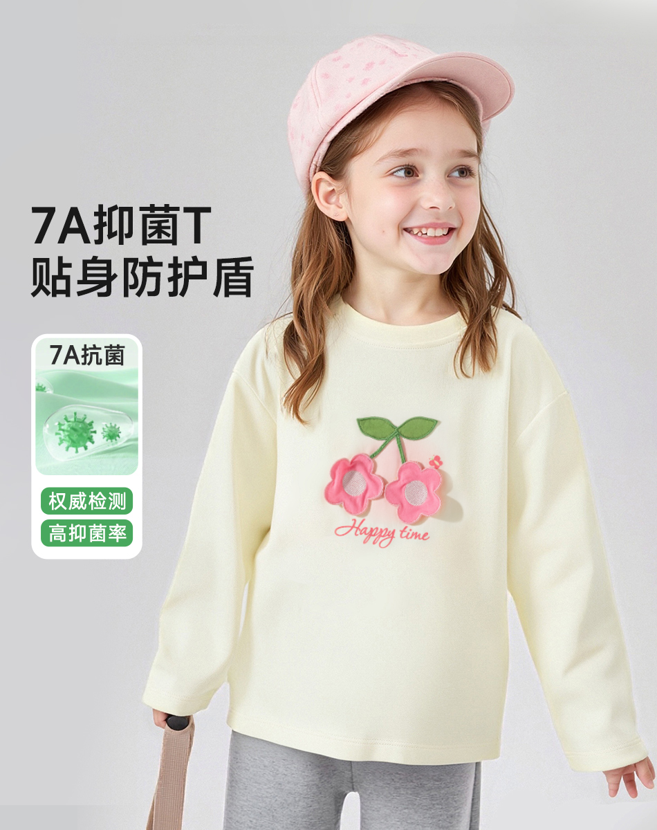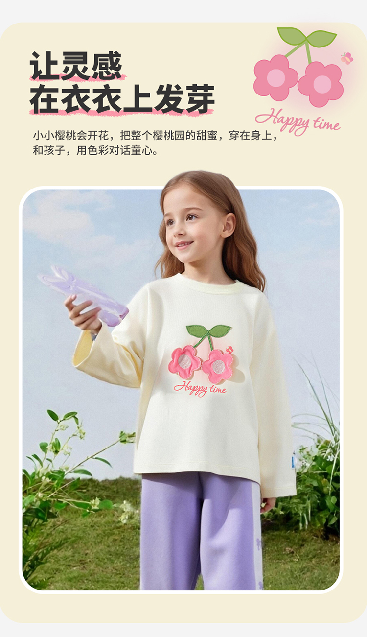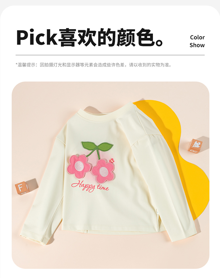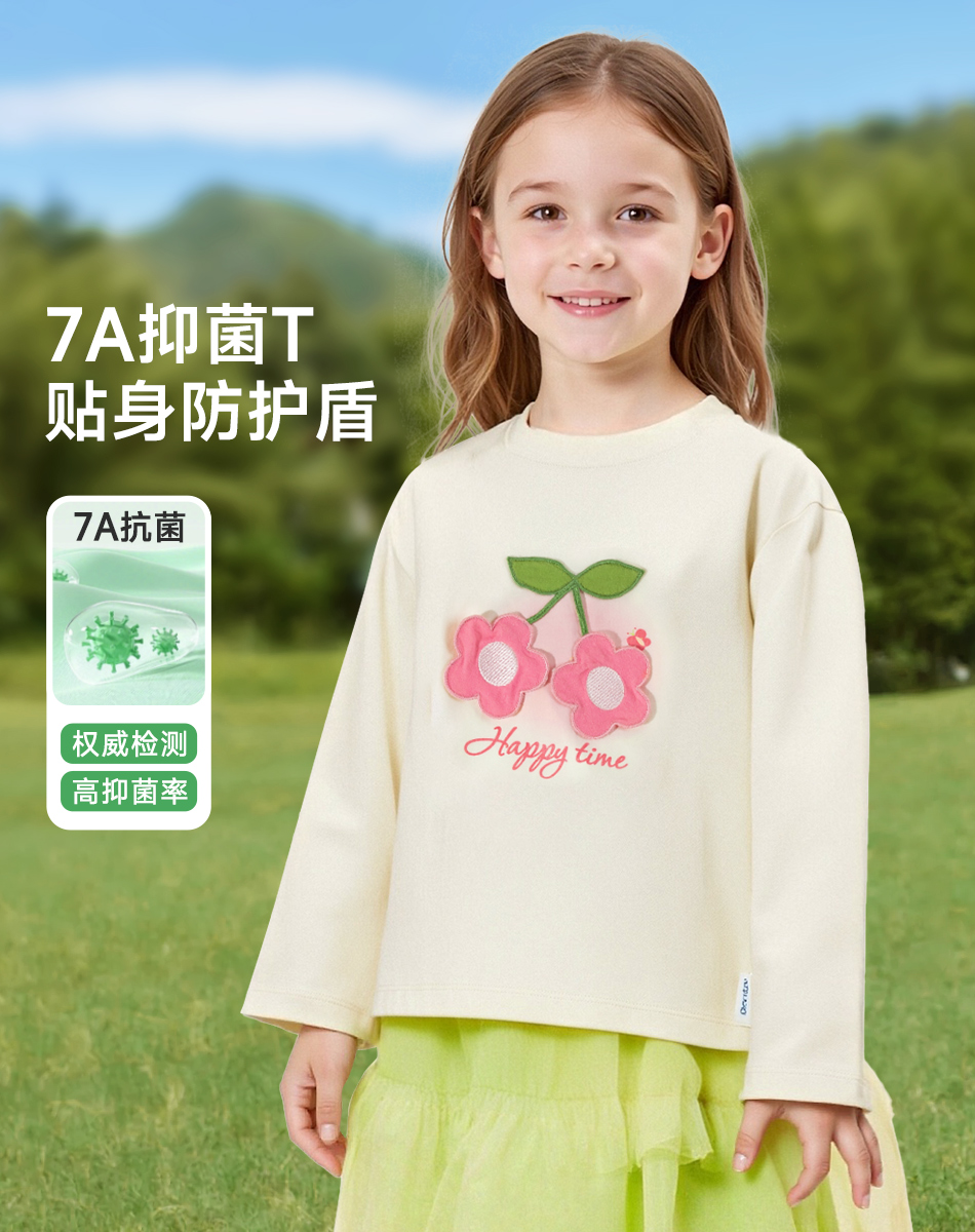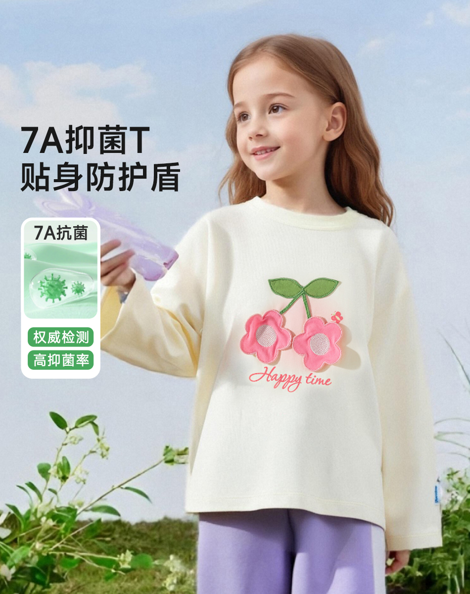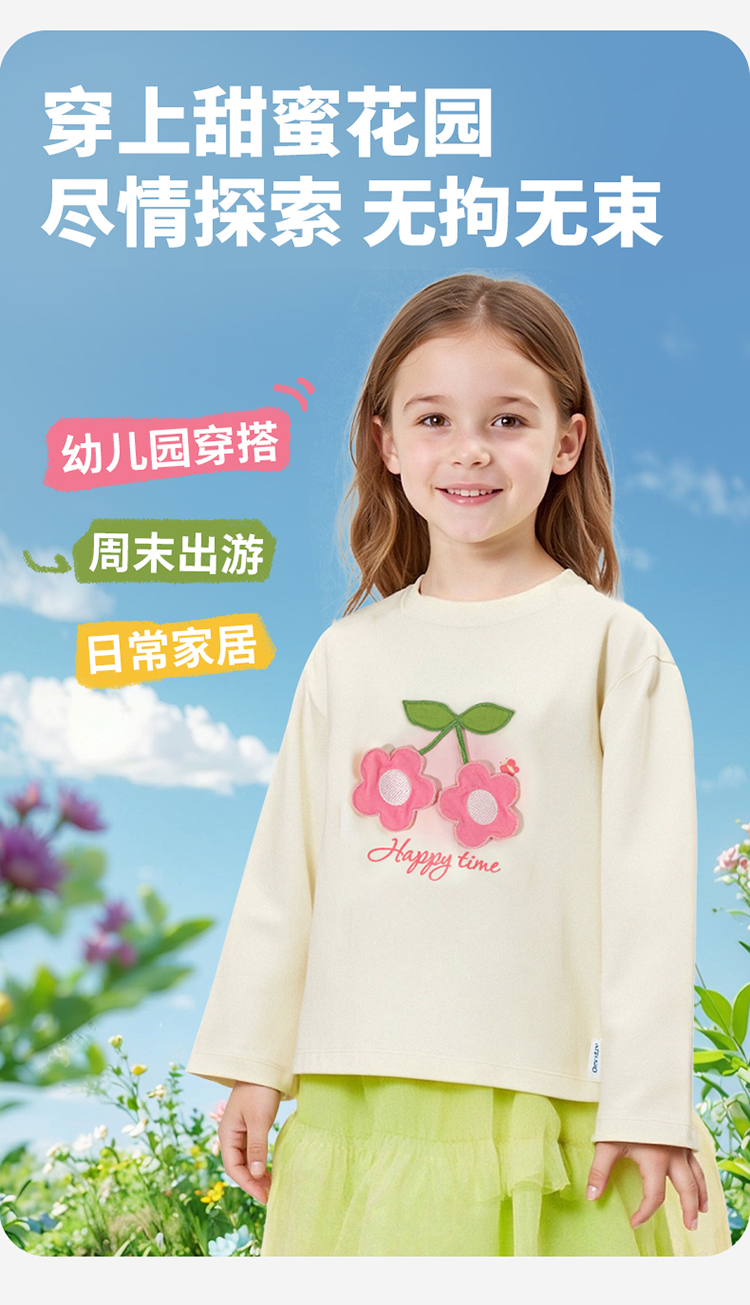 贝贝怡童装女童t恤长袖2025新款甜美中大童女宝宝上衣打底衫ZB3ES013