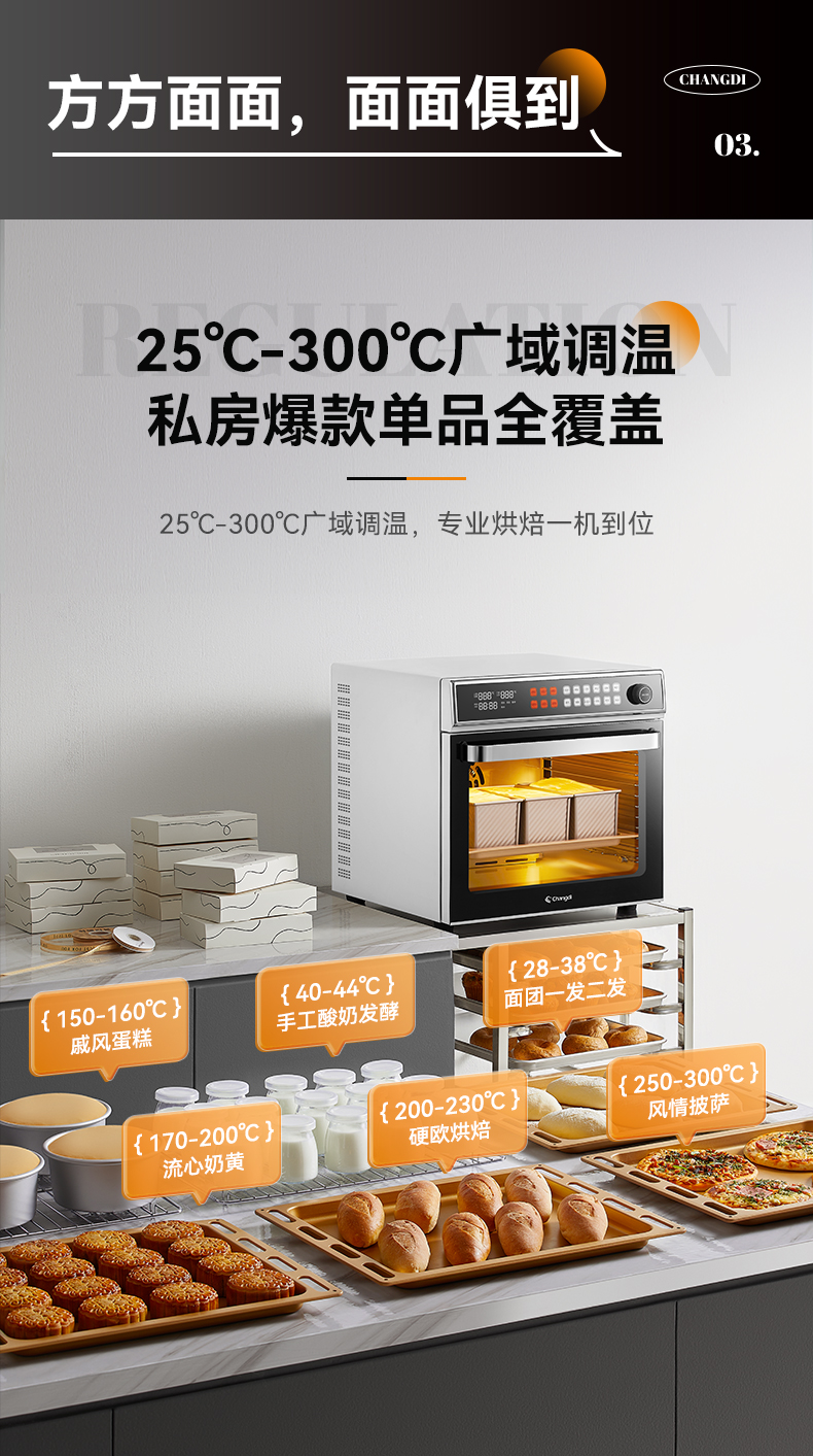 - 长帝,32年以来专业研发、生产制造电烤箱,深受消费者和烘焙爱好者喜爱!