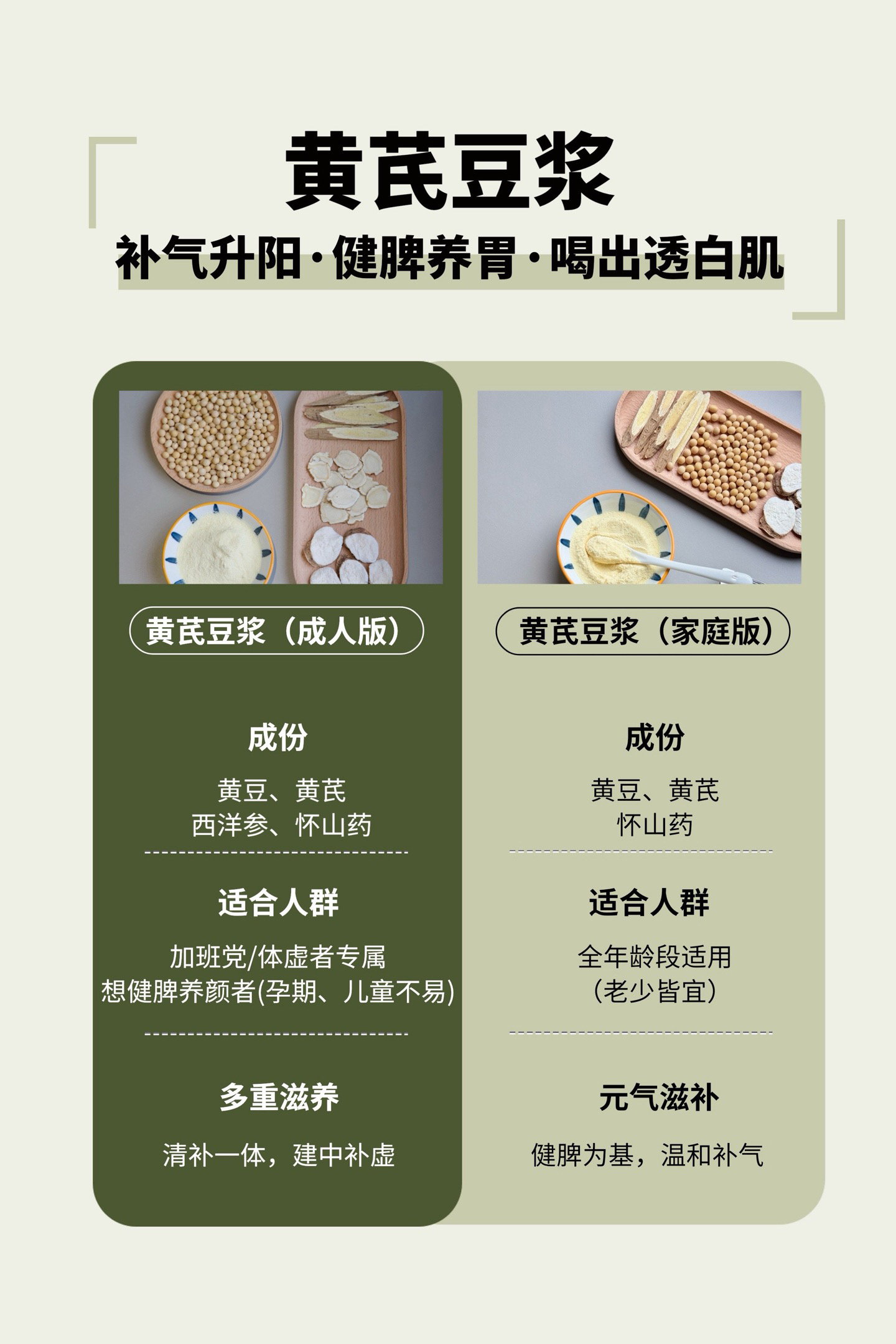 ⭕️成人版:黄豆、黄芪、西洋参山药(儿童、孕妇不宜)