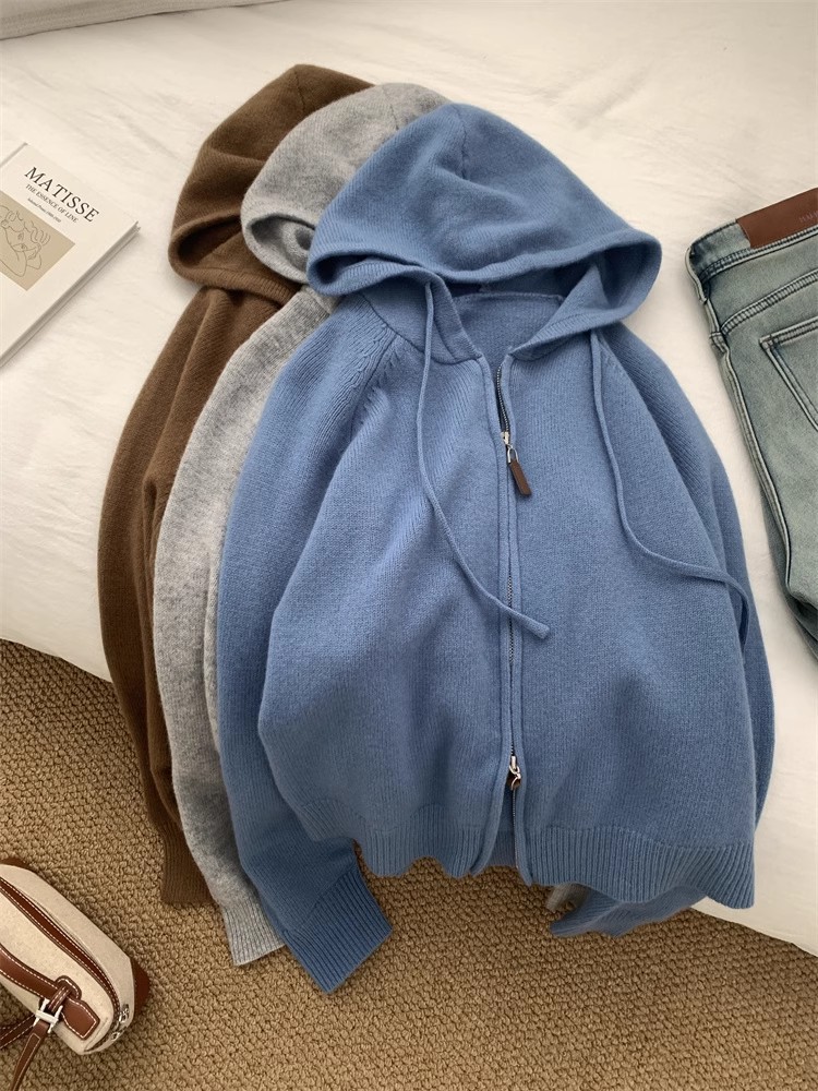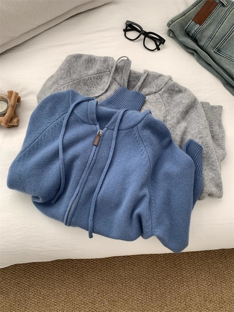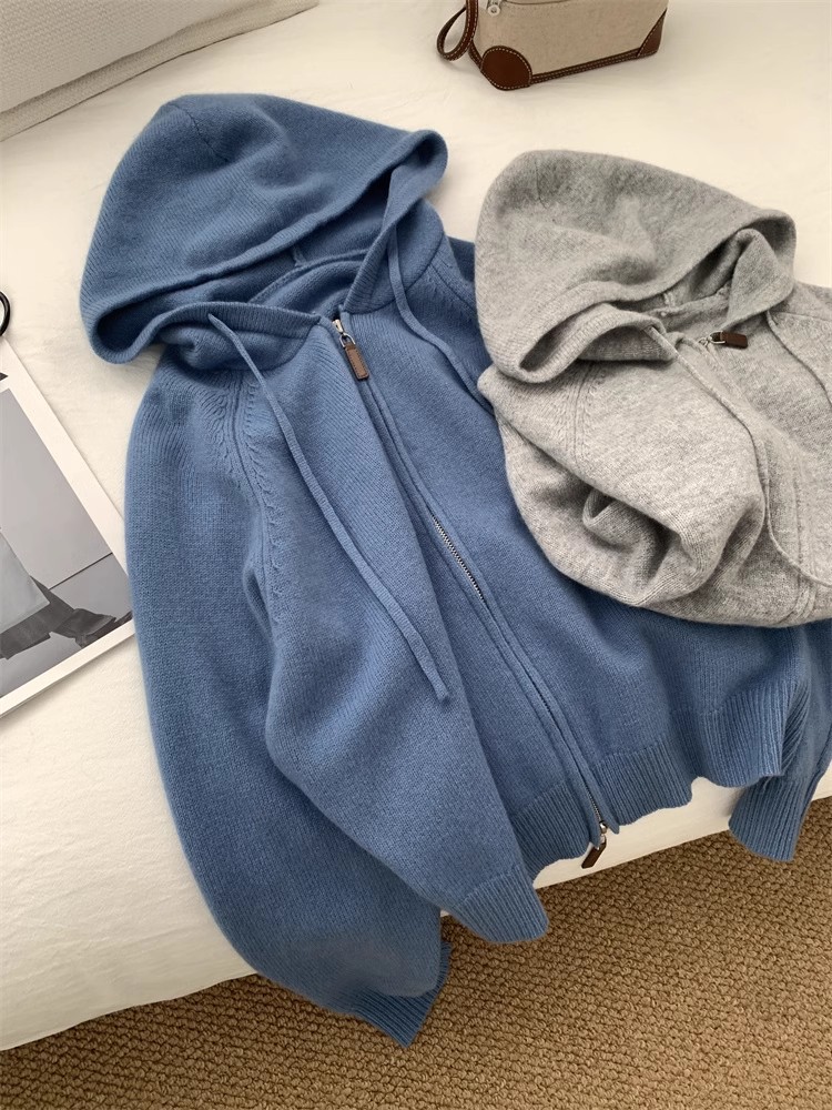 好品质不容错过!2025羊毛羊绒外套简约洋气百搭连帽针织衫开衫拉链衫!