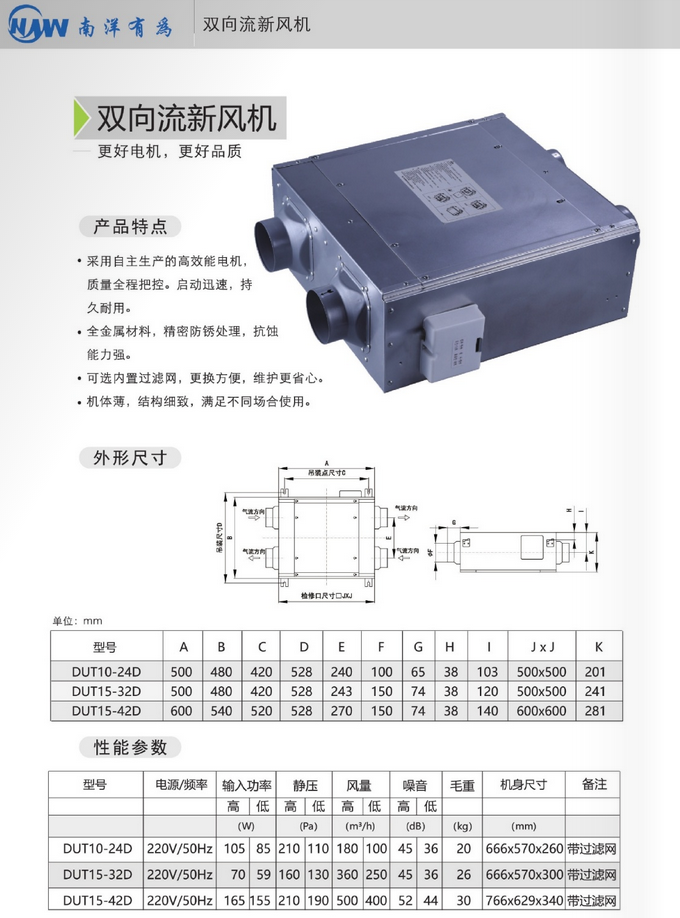DUT15-42D南洋有为双向流新风机 带滤网 商品代码82003