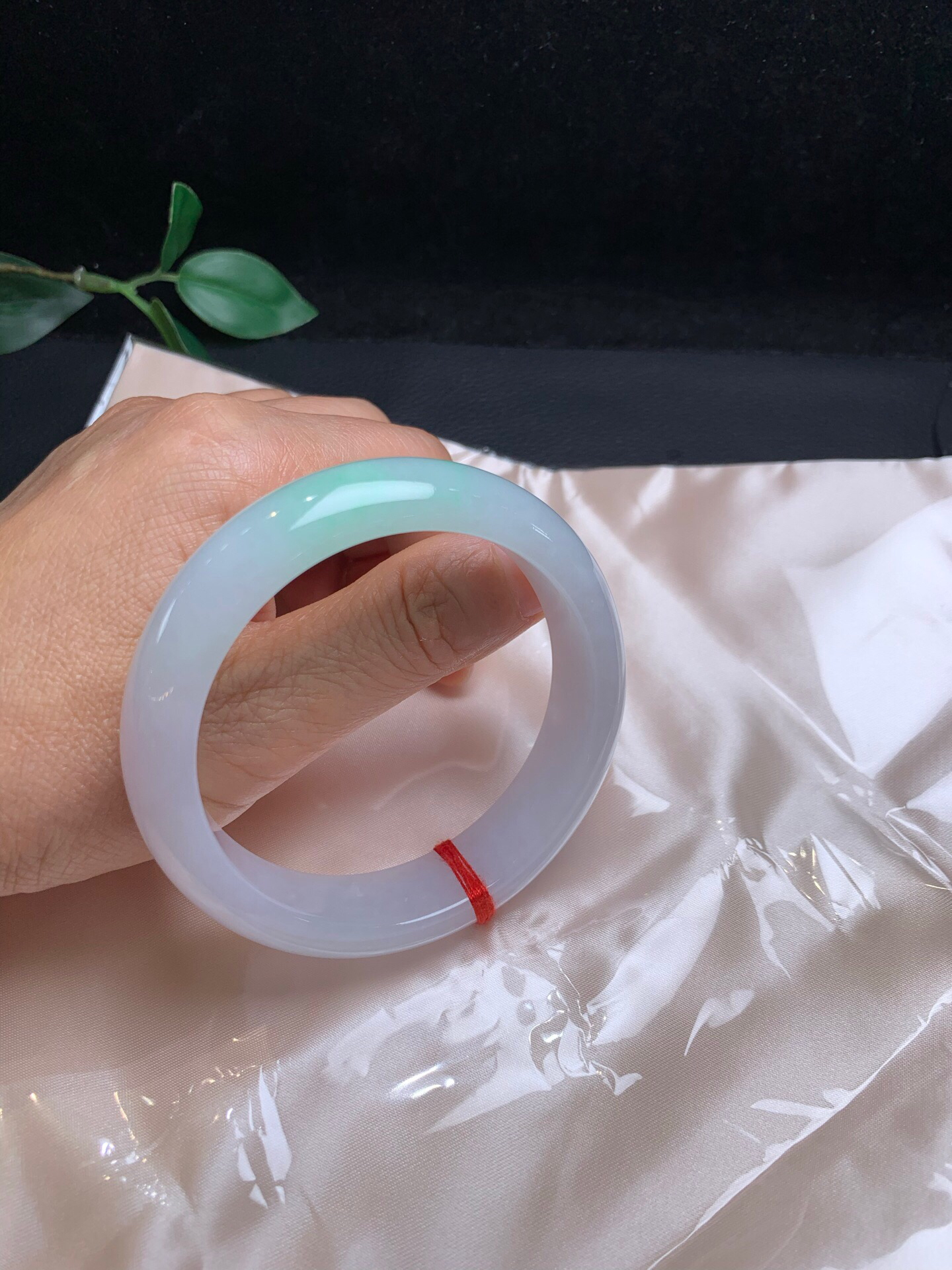 620284,57 飘绿宽版手镯,版型好 底妆很细腻 一截绿底色、干净秀气