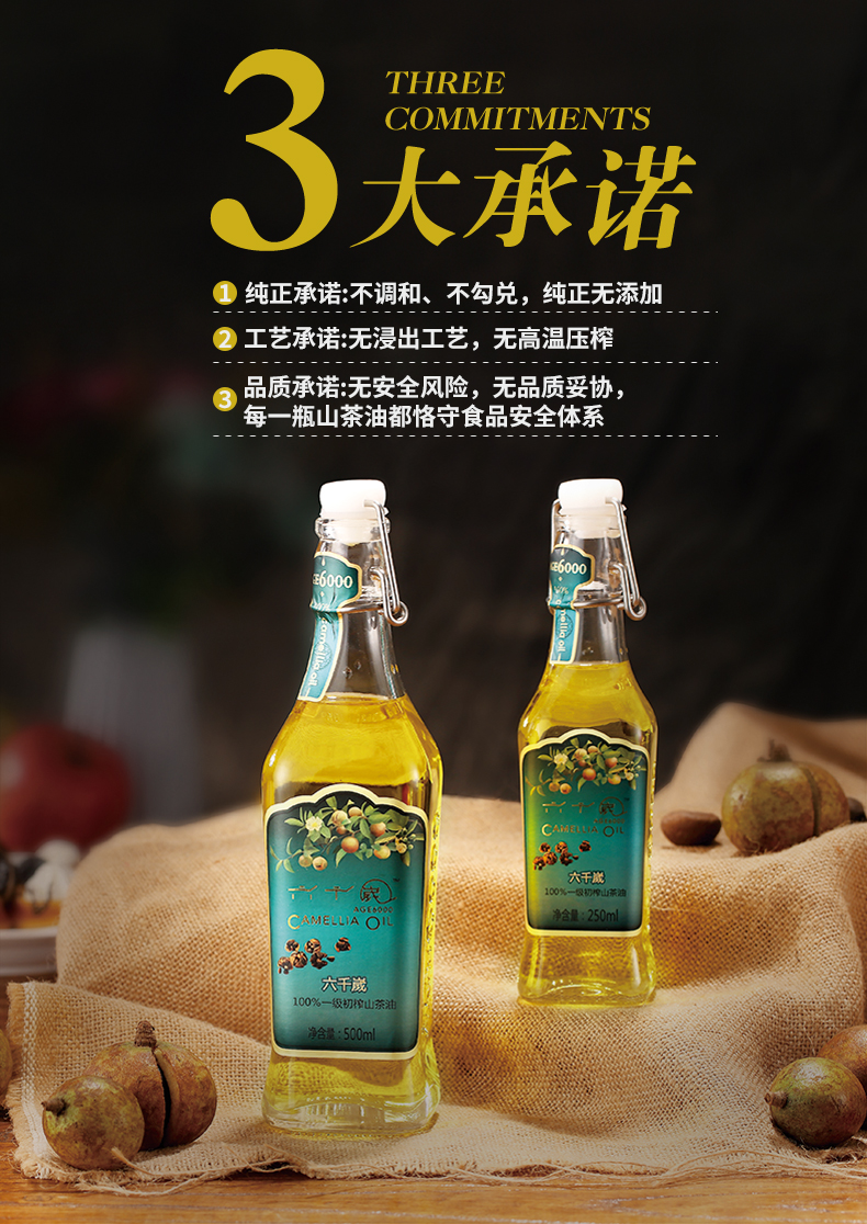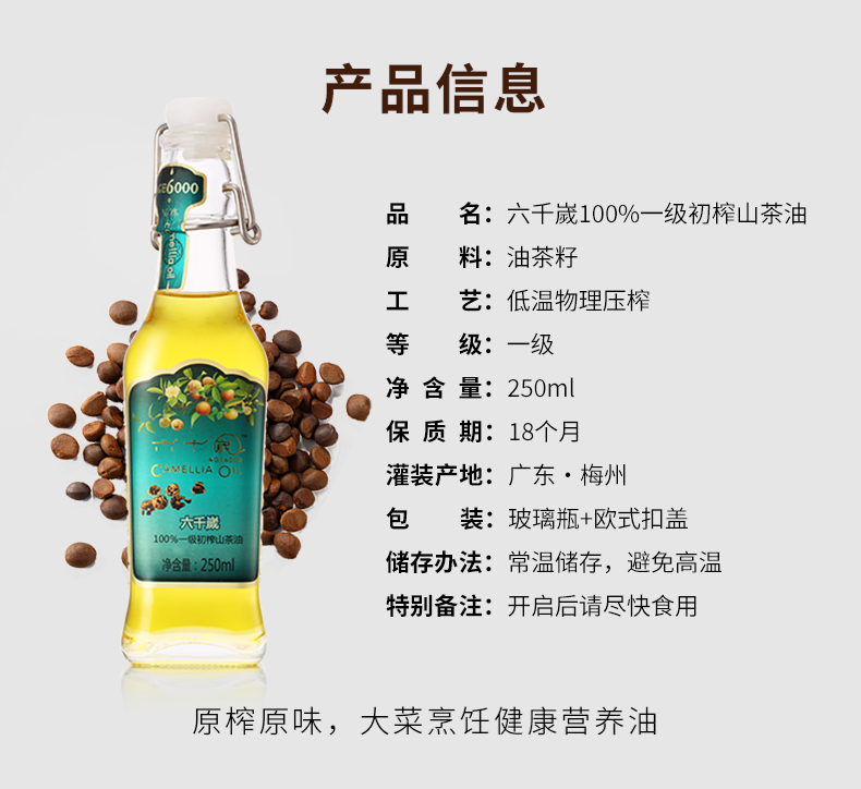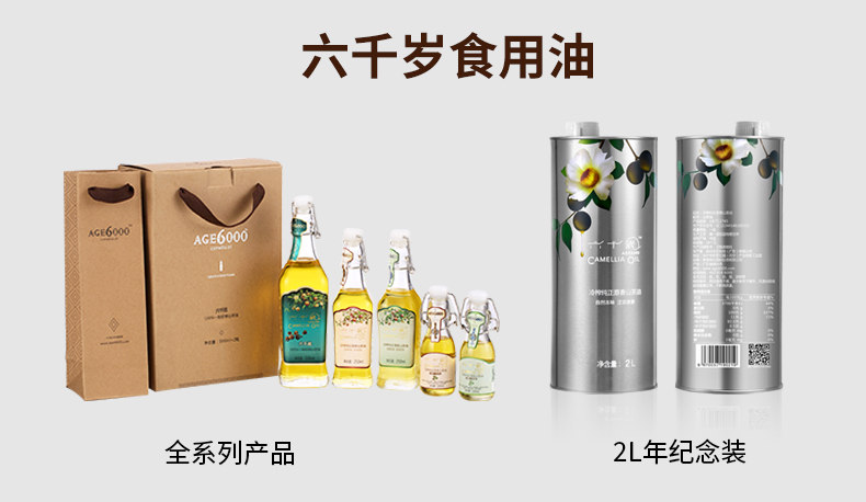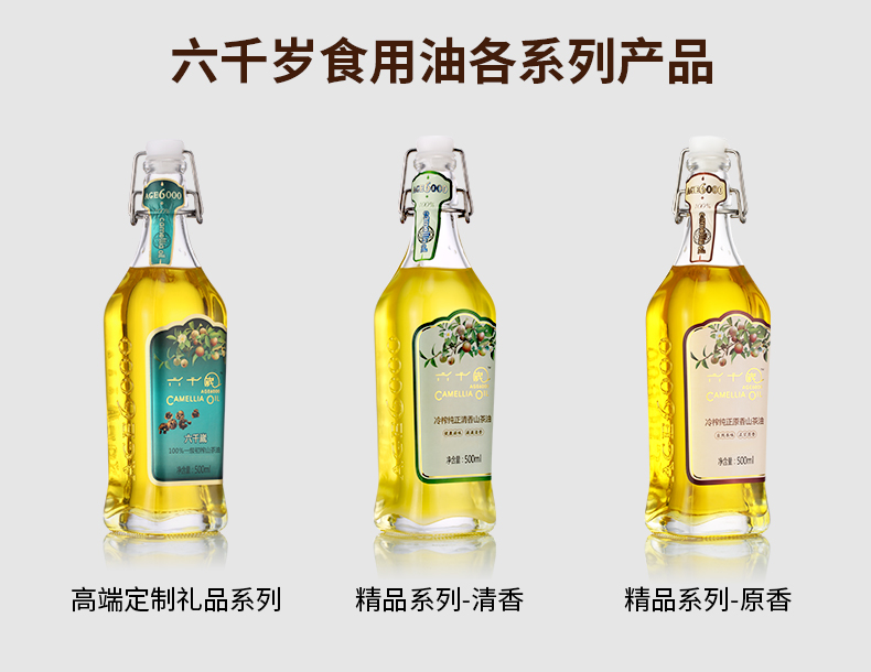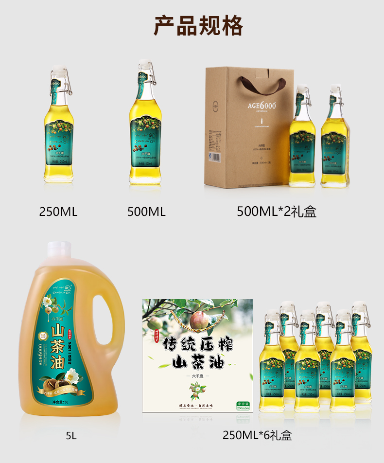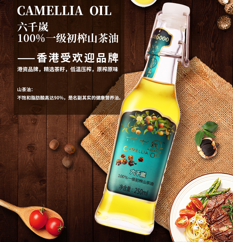 香港最受欢迎品牌 送礼佳品-健康营养油 六千嵗传统压榨山茶油 礼盒装250ml*6