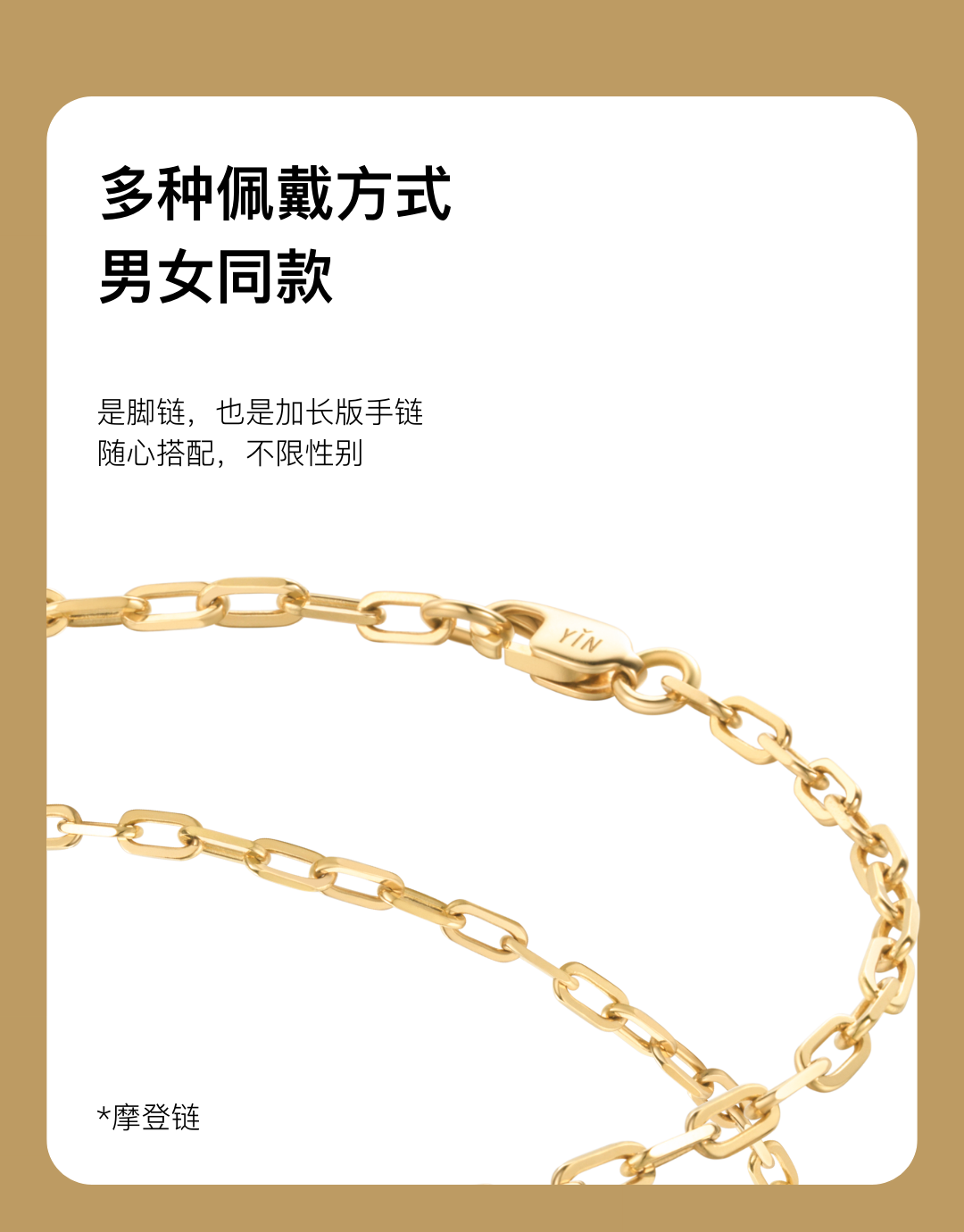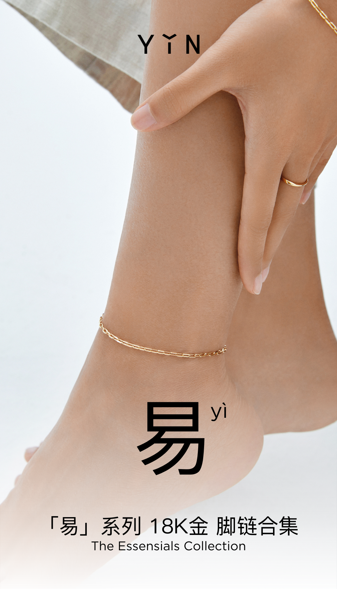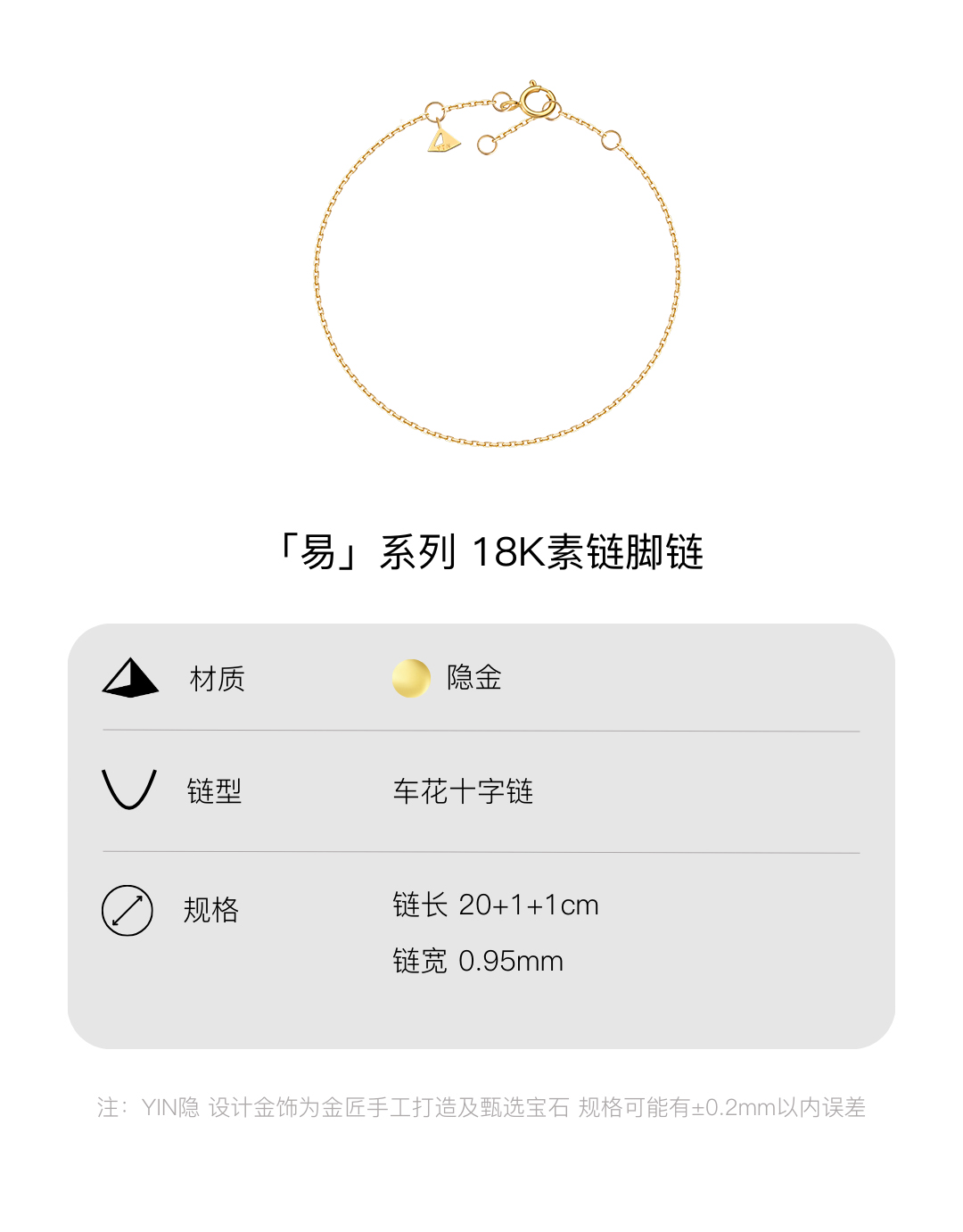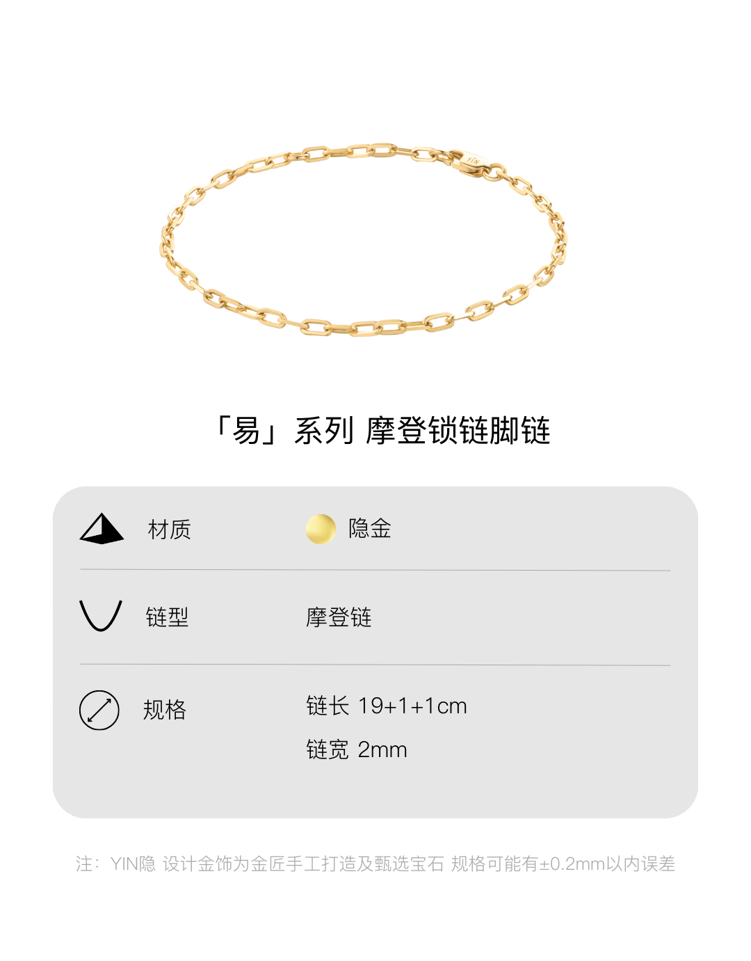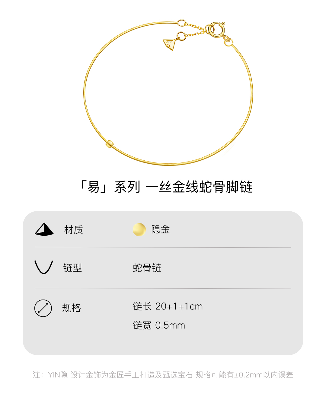 YIN隐「易」系列18K金脚链男士手链素金简约O型链素链足链脚链