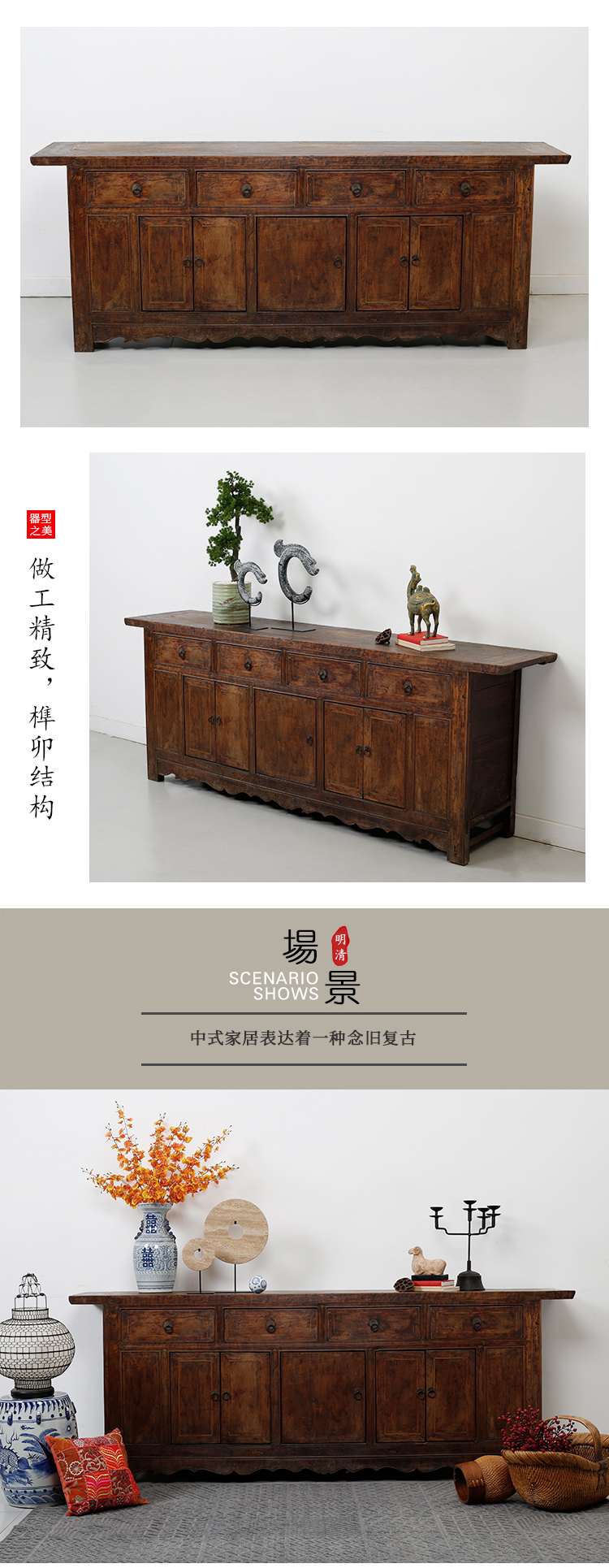 中式复古客厅餐边柜实木玄关储物柜收纳置物柜装饰柜古旧家具